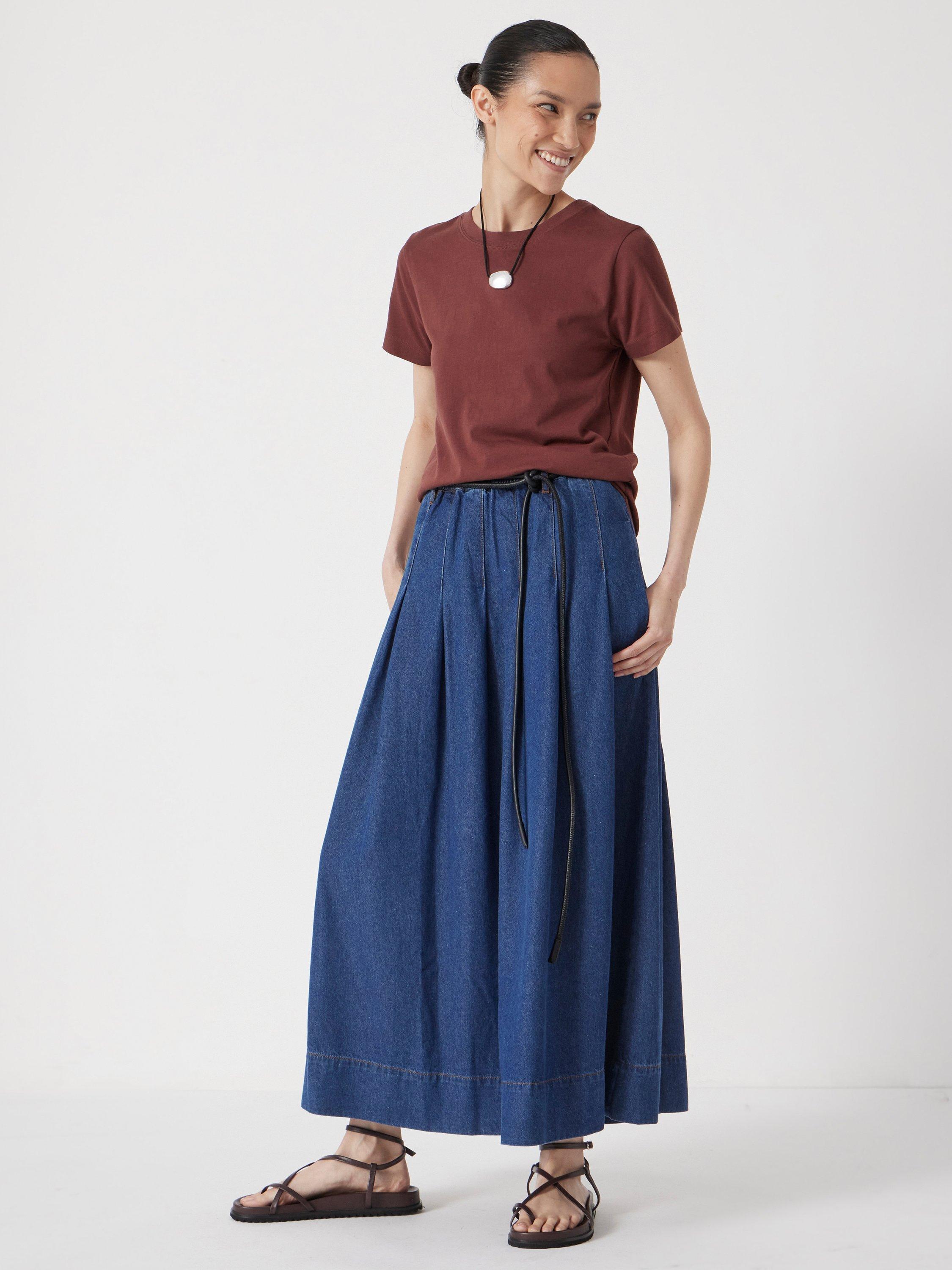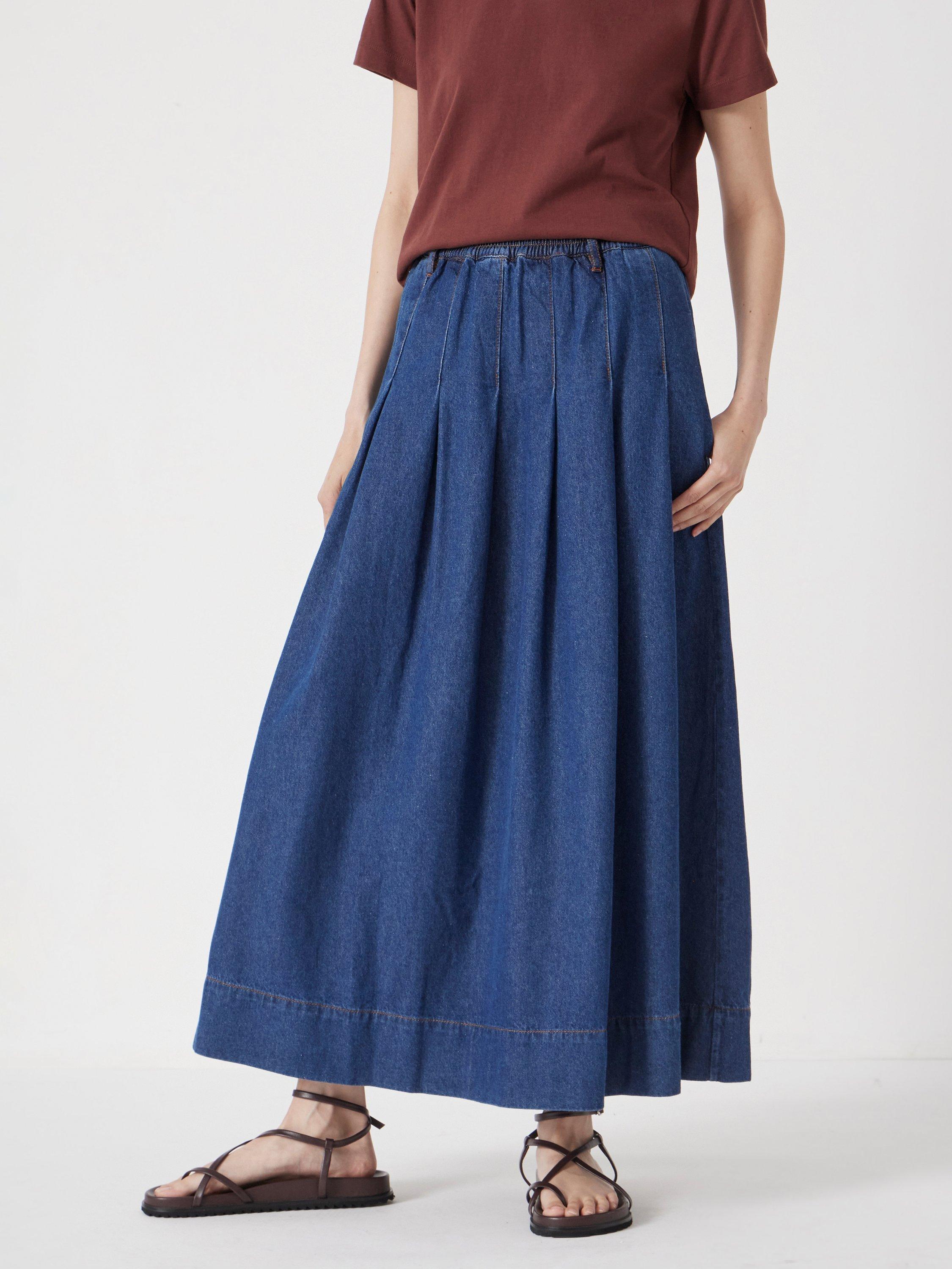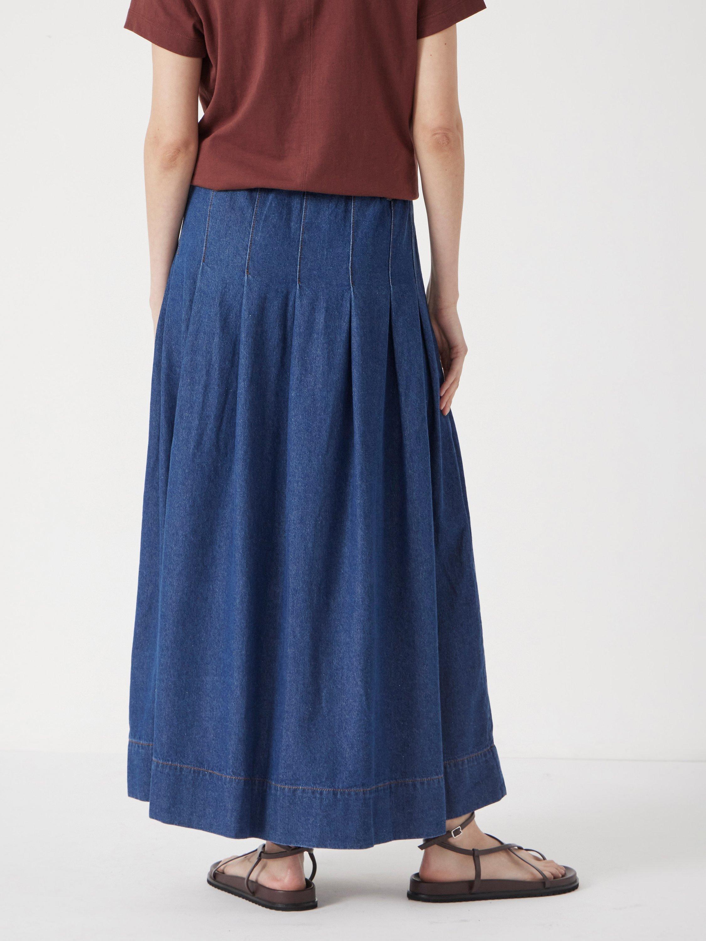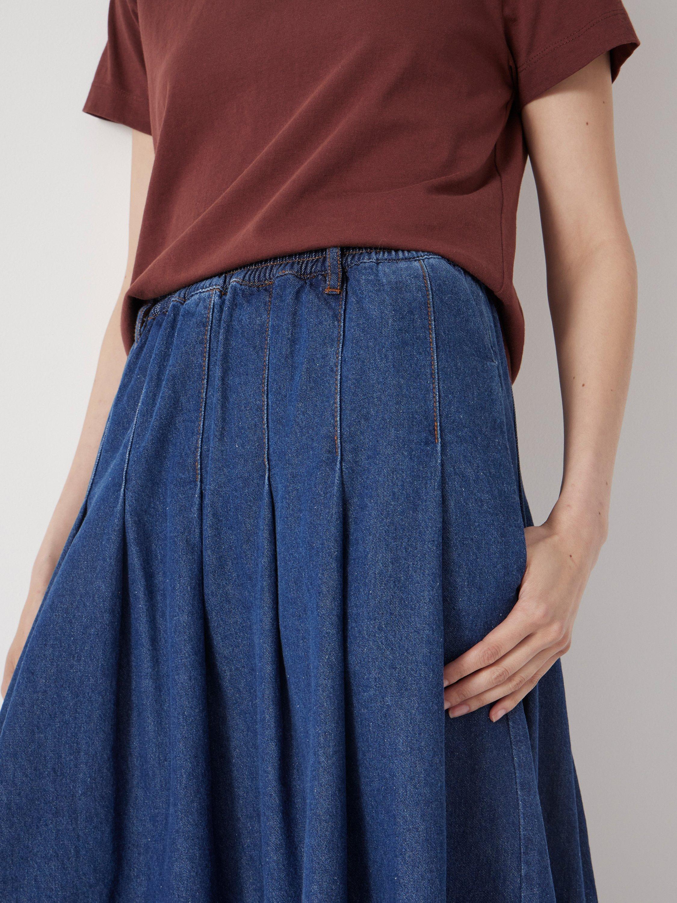The Air Flow midi skirt is designed for a variety of occasions this season, from late summer BBQs and brunch gatherings to the daily school run. It features wide pleats at the waist, expertly crafted to create flattering volume. Additionally, functional pockets have been integrated, ensuring the skirt is as practical as it is stylish. Crafted from the unique Air Flow fabric, the skirt offers a fluid, breathable, and lightweight feel, contributing to its elegant, drapey quality. Its distinctive rippled texture is a deliberate design element that not only enhances its appeal but also means it requires no ironing.