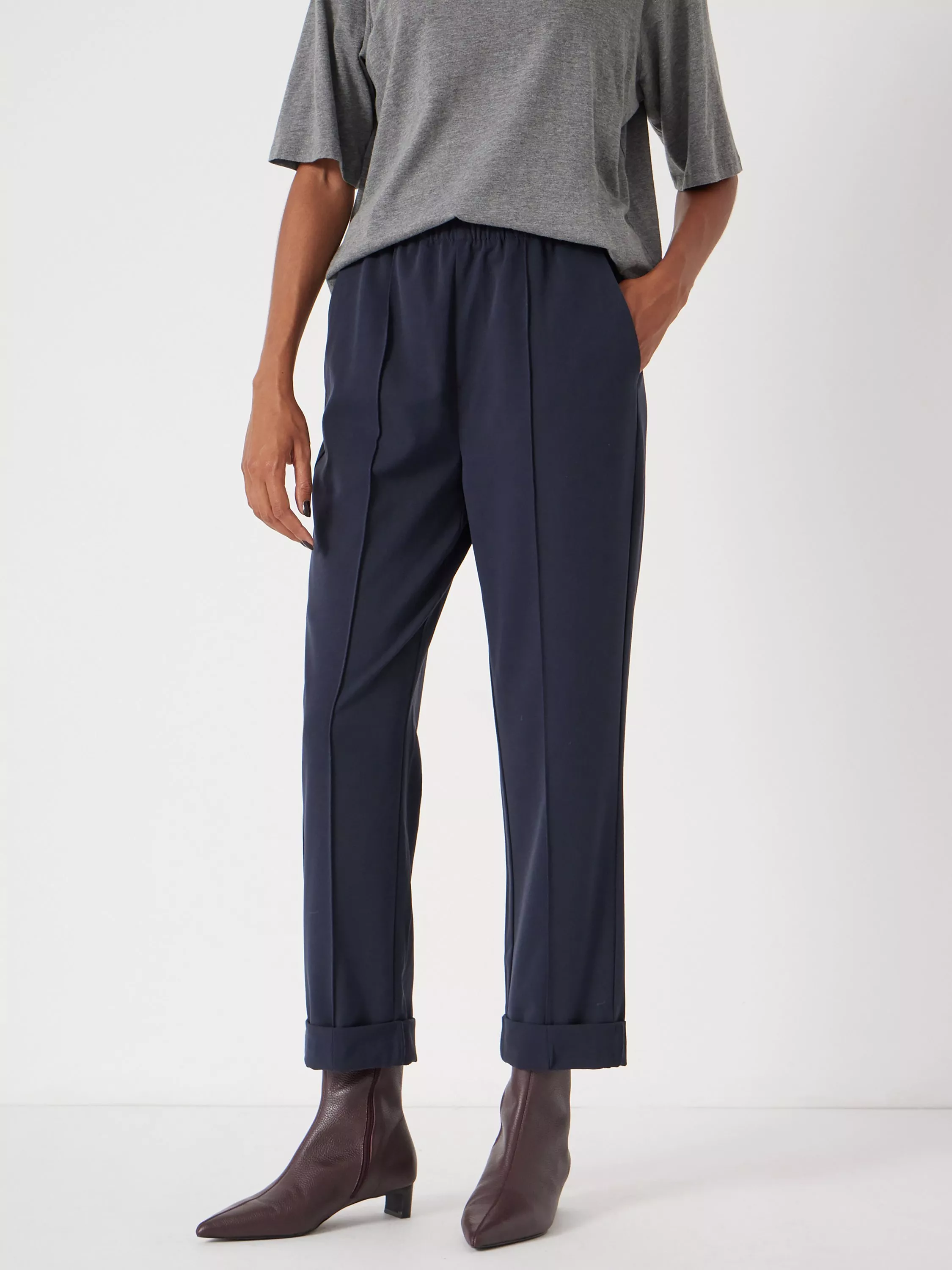 A pair of modern, slim-fit trousers from HUSH. This pull-on style is cut to sit mid rise with hems that are cropped.