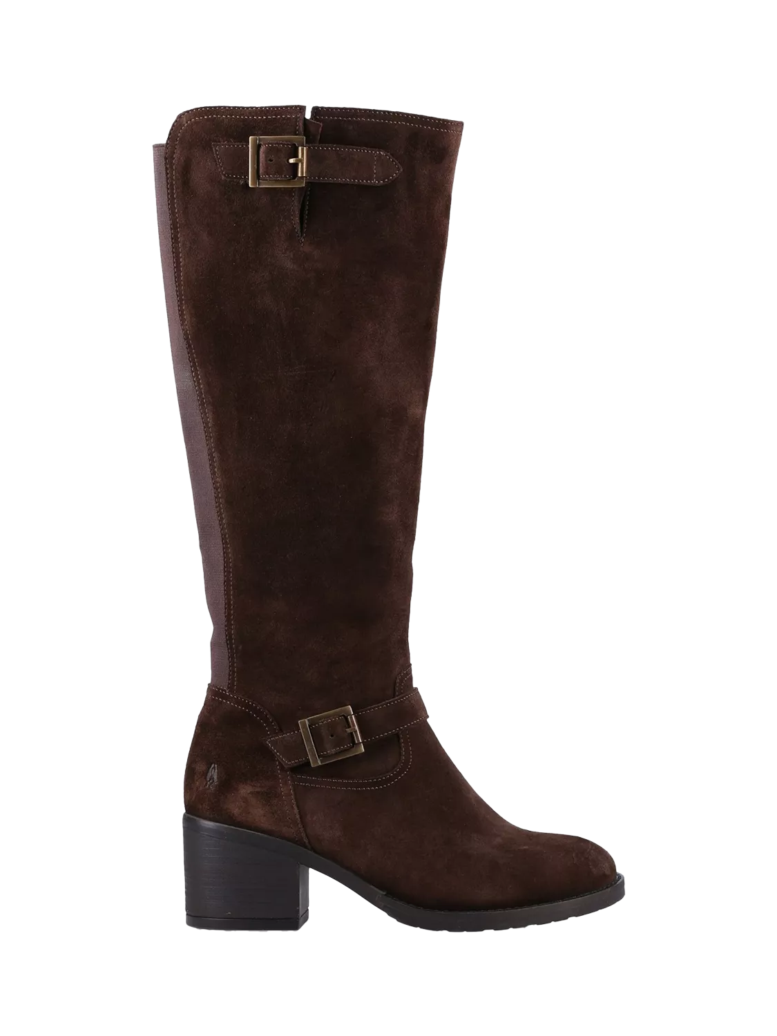 A great find for when temperatures begin to cool, this pair of elegant knee-high boots from Hush Puppies is made from suede with a comfy textile lining - perfect for cooler days on the go. Resting on a block heel with a cushioned memory foam interior, they are rounded off at the toe and feature subtle elastic back panels for calf adjustability.
