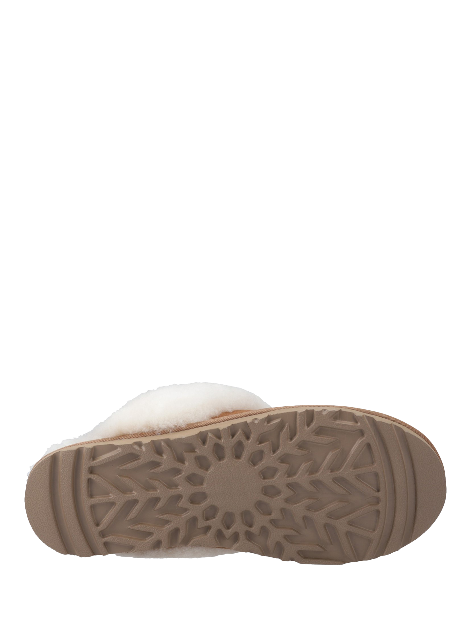 Made with soft suede, a flexible sole and super fluffy sheepskin lining the Samantha Mule Slipper is seriously comfy for the colder months. Featuring a real suede upper and a super cosy real sheepskin collar, lining and sock with a Memory Foam Comfort insole and a lightweight EVA outsole.