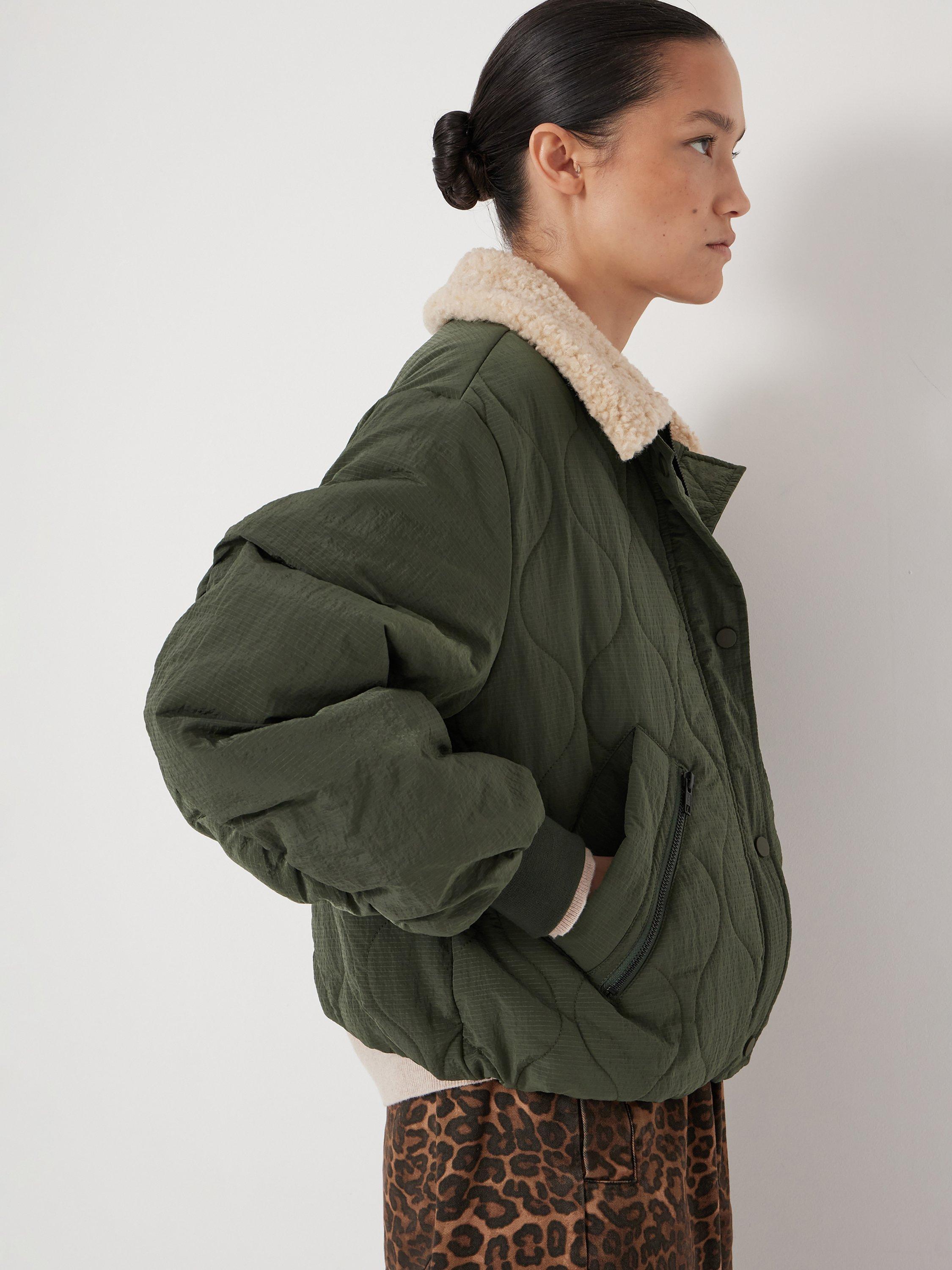 This quilted teddy bomber jacket from HUSH combines practical comfort with sharp design, keeping you comfortable and confident through busy days. Multiple fastening options and a classic collar add versatility for your on-the-go lifestyle.