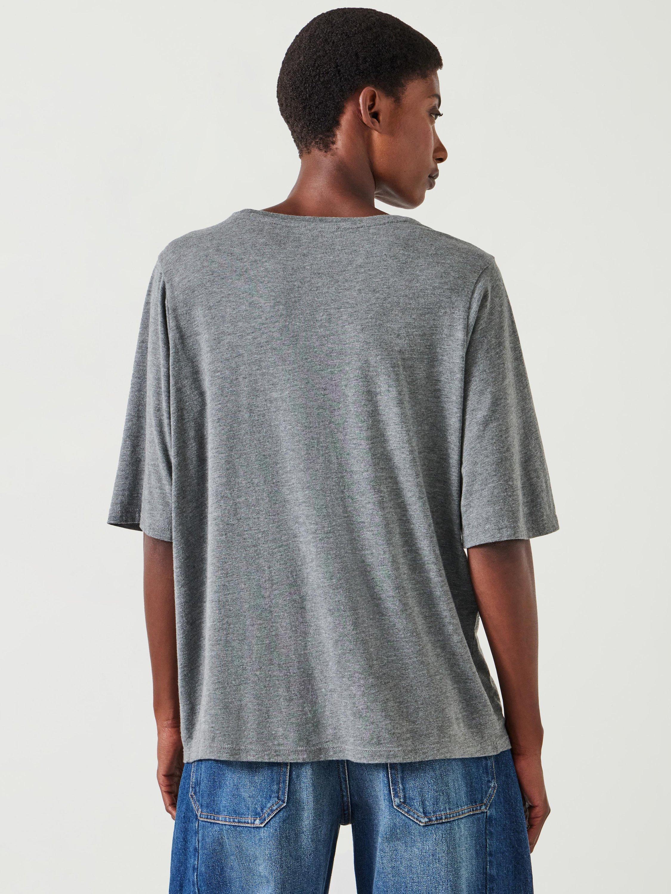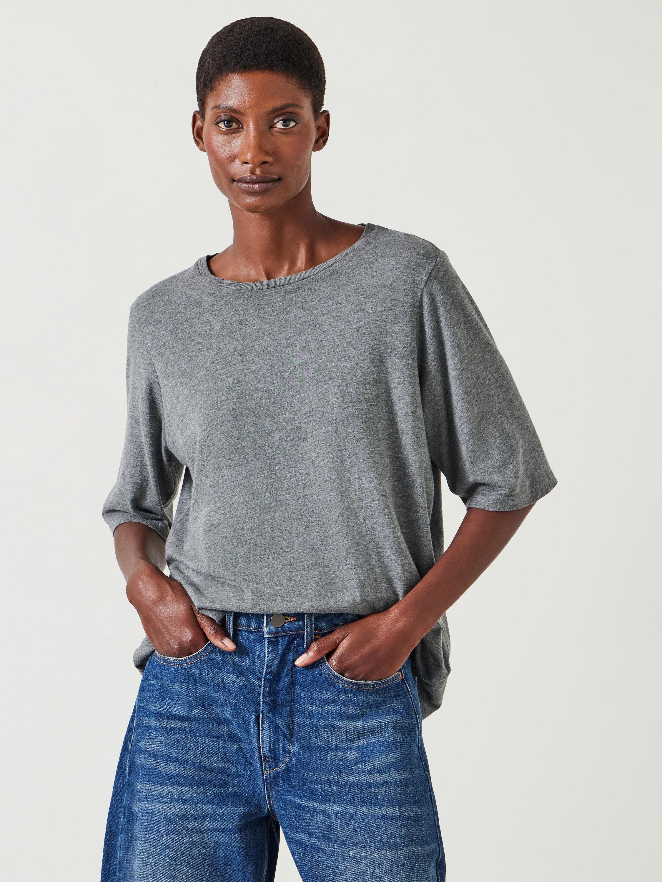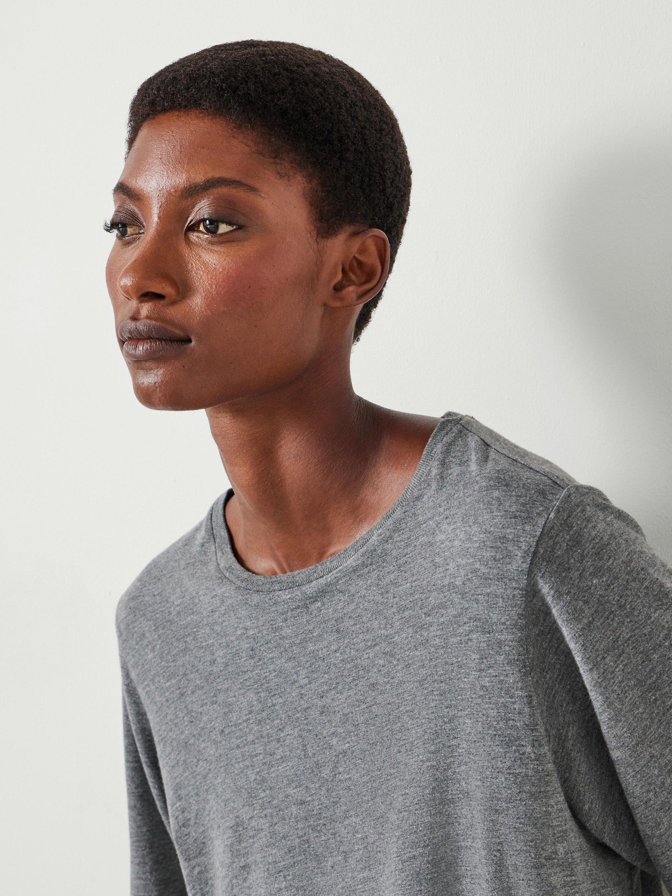 This is our Reece T-shirt. Looks like a regular everyday tee - but it's not. There are no throw-away design decisions here. Every detail is purposeful, like the roomy sleeves which stop at the elbow for a more laid-back feel and the relaxed fit. Then there's the extra-soft viscose fabric, chosen because of the way it drapes effortlessly. We've done all of the overthinking, so you don't have to.