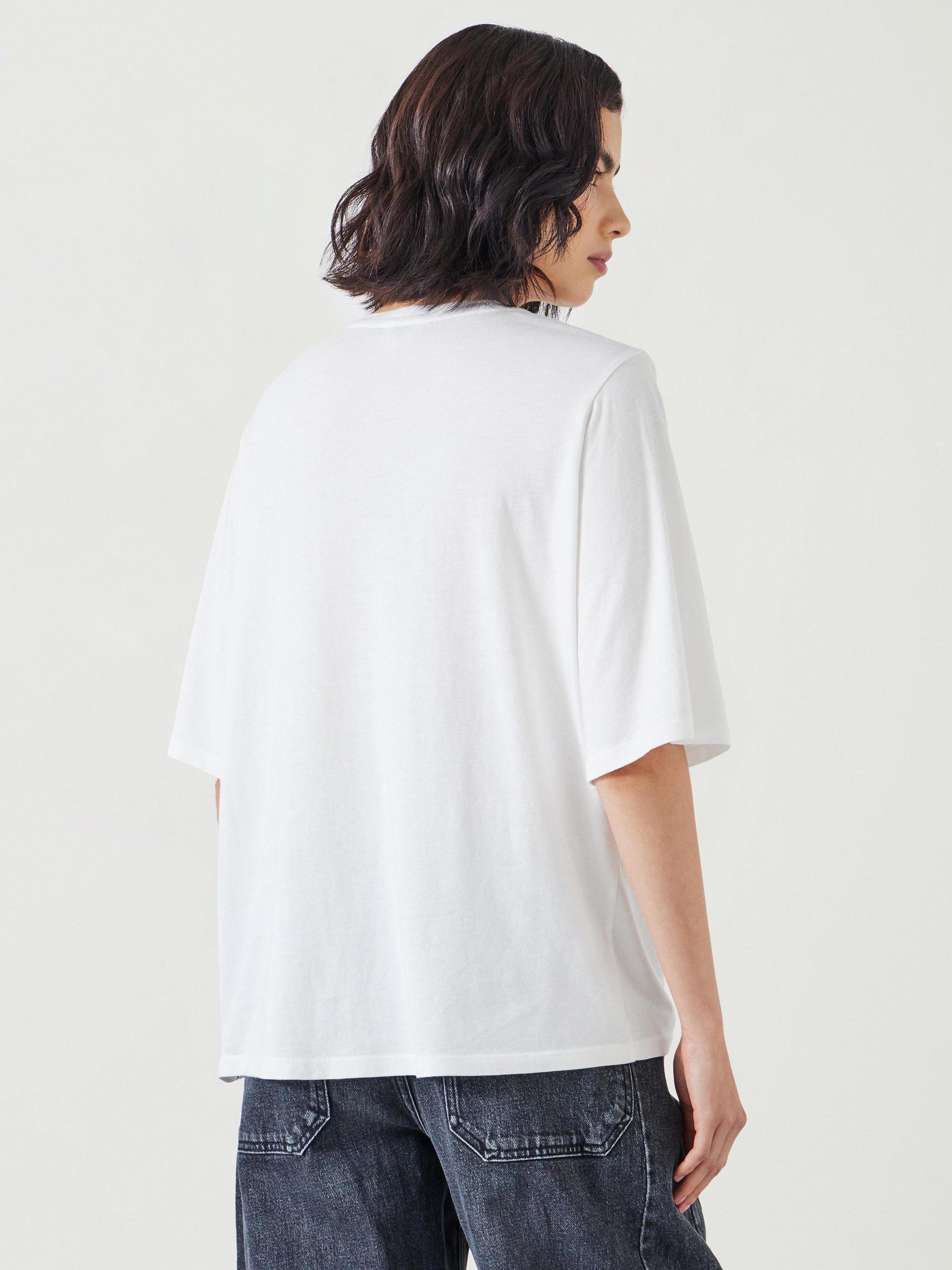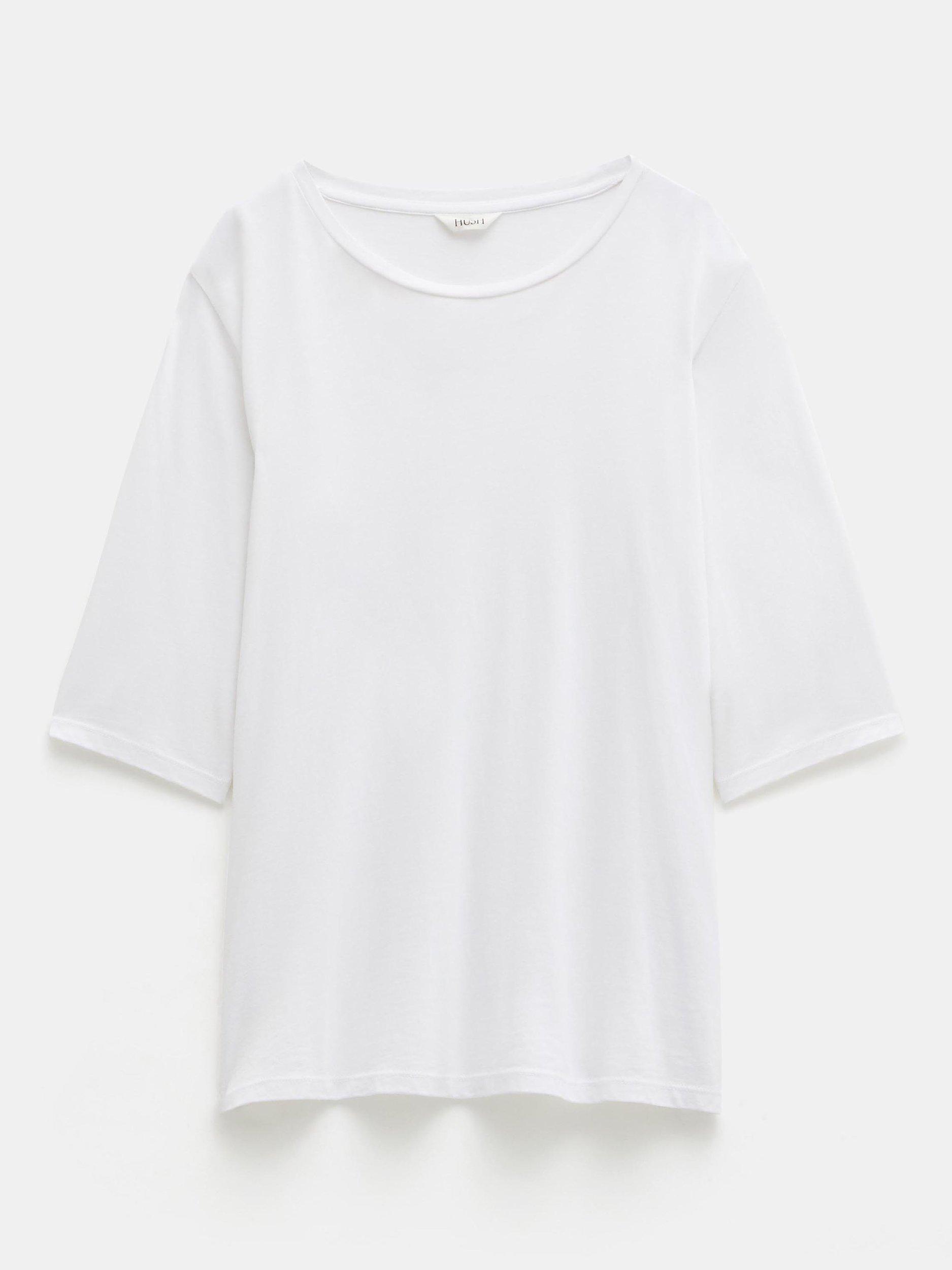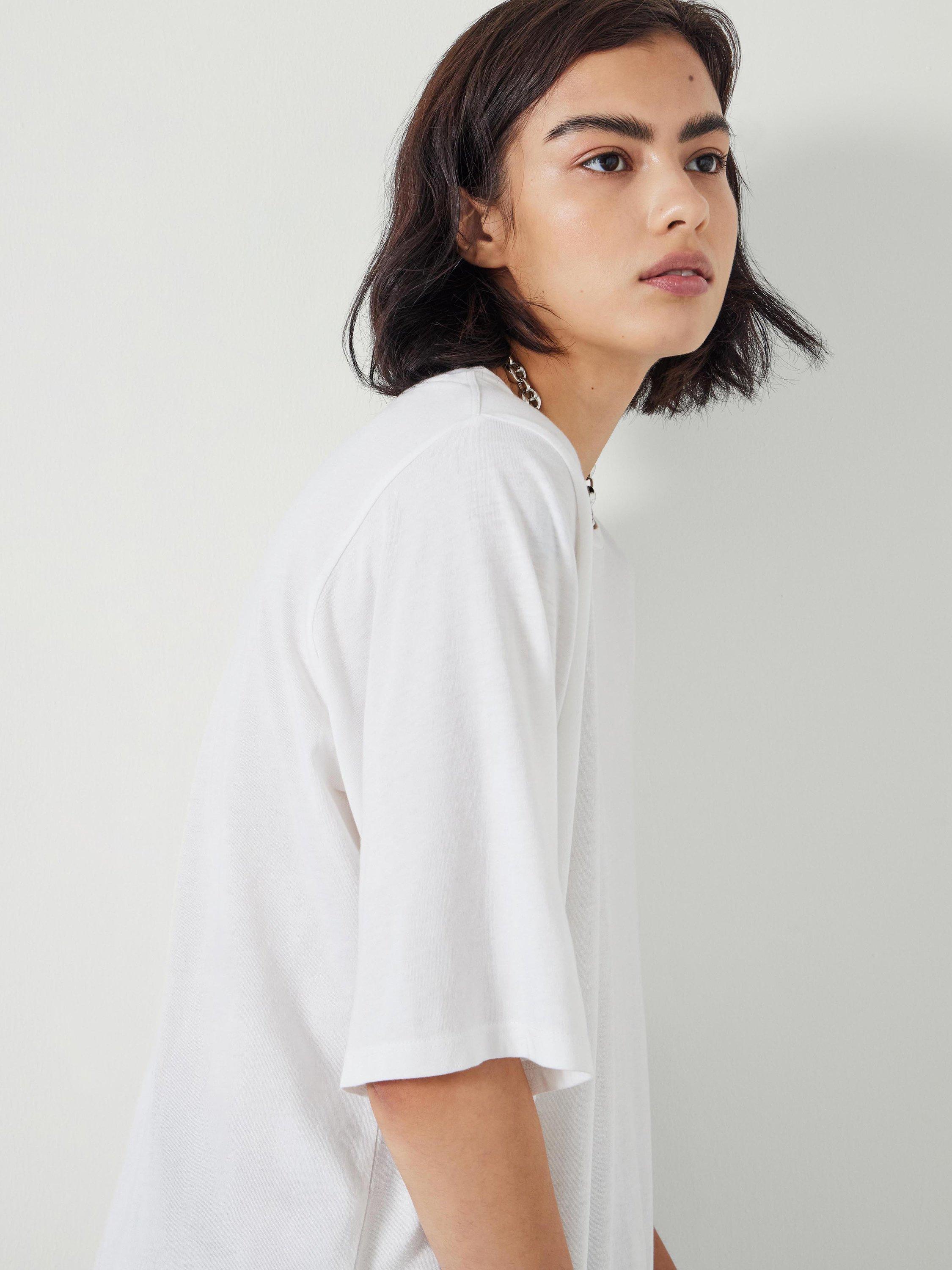 This is our Reece T-shirt. Looks like a regular everyday tee - but it's not. There are no throw-away design decisions here. Every detail is purposeful, like the roomy sleeves which stop at the elbow for a more laid-back feel and the relaxed fit. Then there's the extra-soft viscose fabric, chosen because of the way it drapes effortlessly. We've done all of the overthinking, so you don't have to.