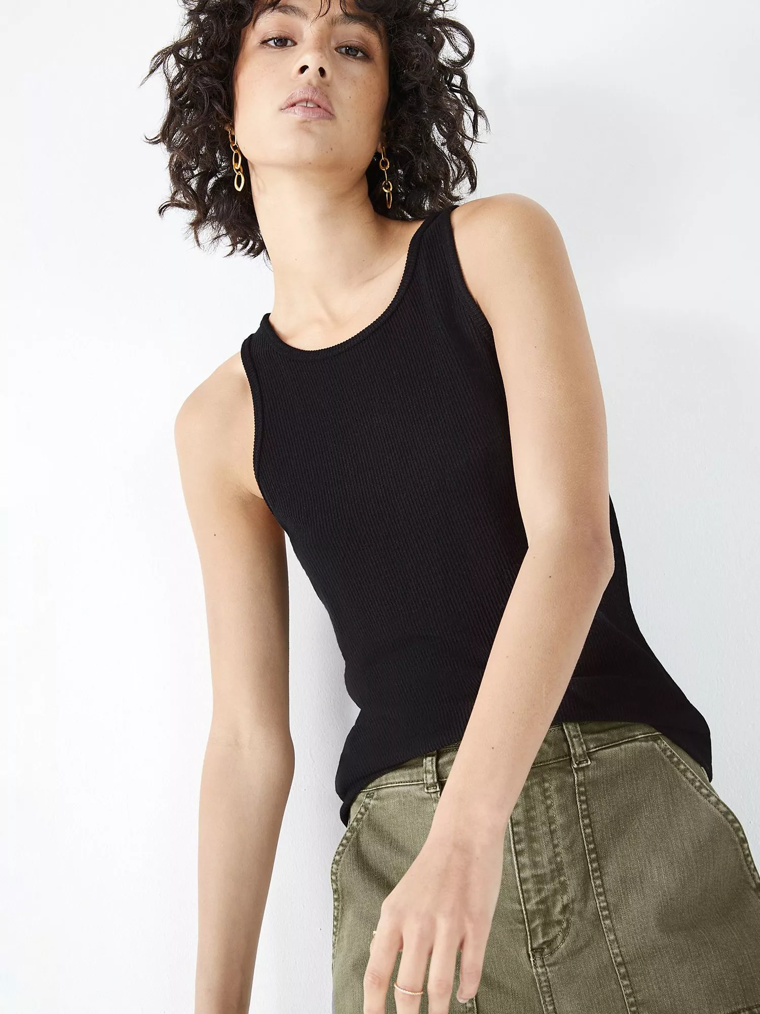 Simple and versatile, this vest top from HUSH is made from soft lightweight jersey with allover ribbing for a stretchy fit. With a flattering scoop neckline, it has a straight, slim straight making it perfect for layering or a solo piece to wear with shorts, skinny jeans or culottes.
