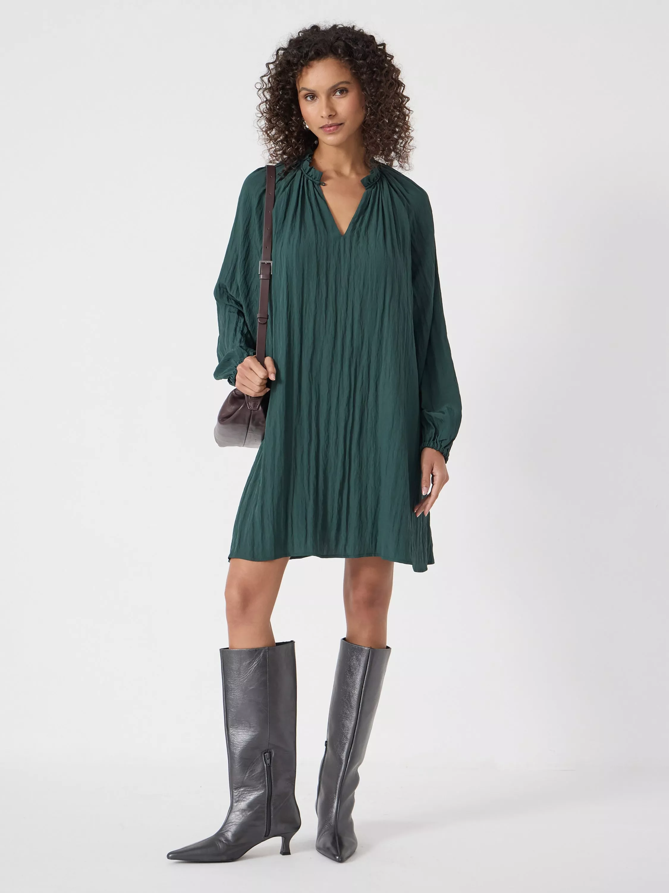 A pleated mini dress from HUSH. The V-neck and long sleeves create a sharp silhouette, while soft fabric ensures comfort for any day. Finished in ruffles, it's designed for you to move and feel completely yourself.
