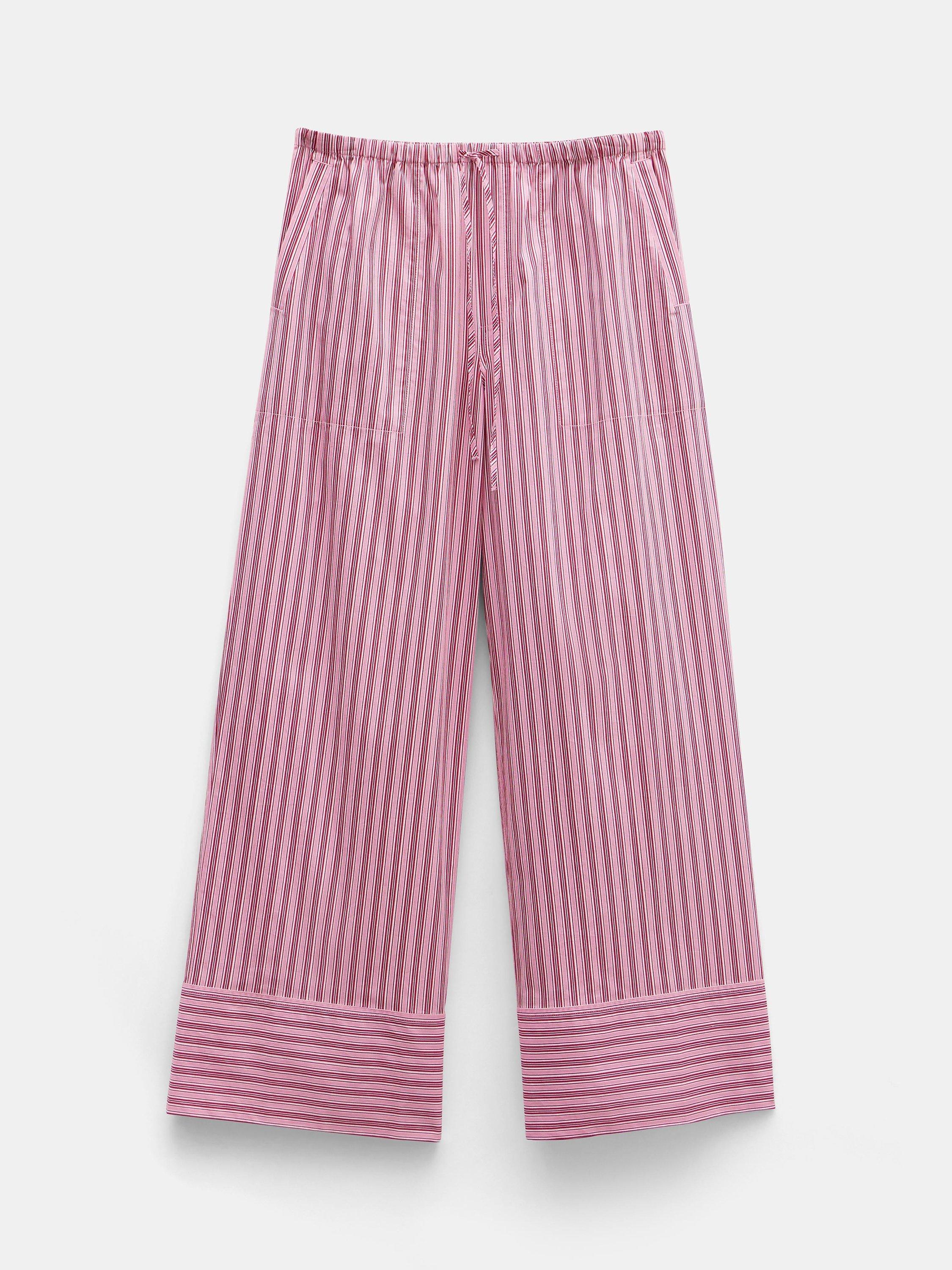 Designed in a wide-leg fit in breezy cotton, they come in a fine stripe design that's easy to mix and match with basic tops and tanks.