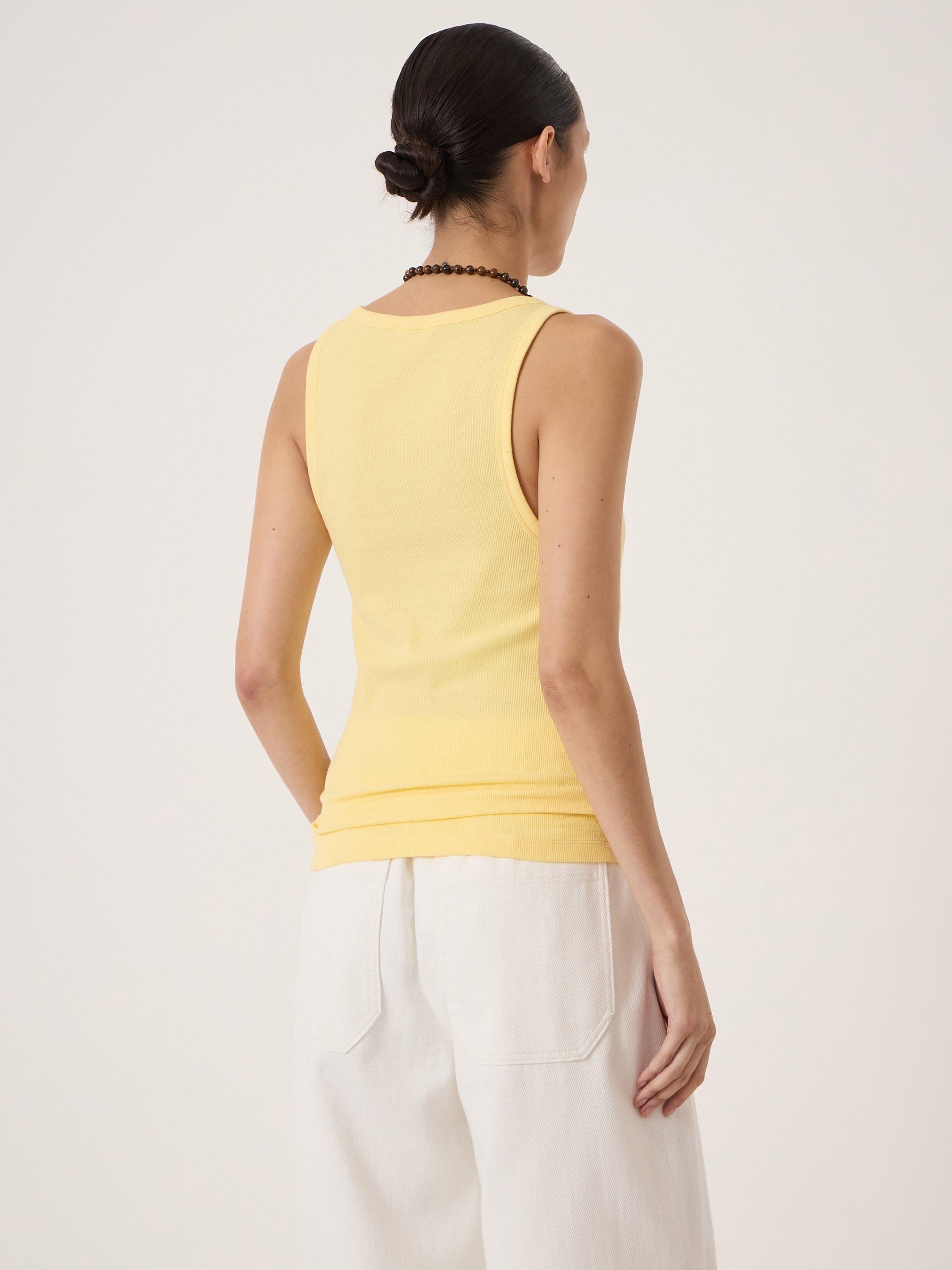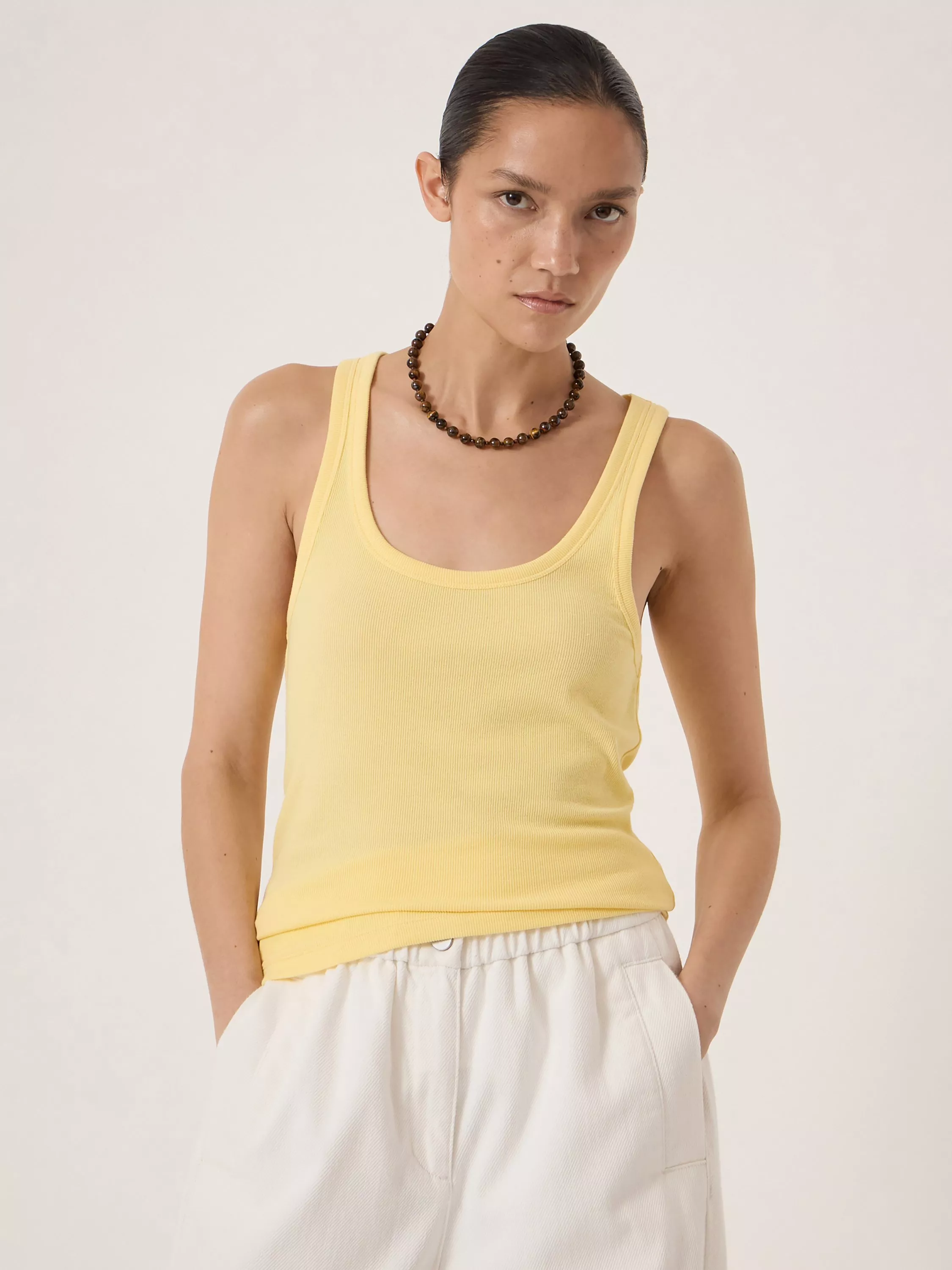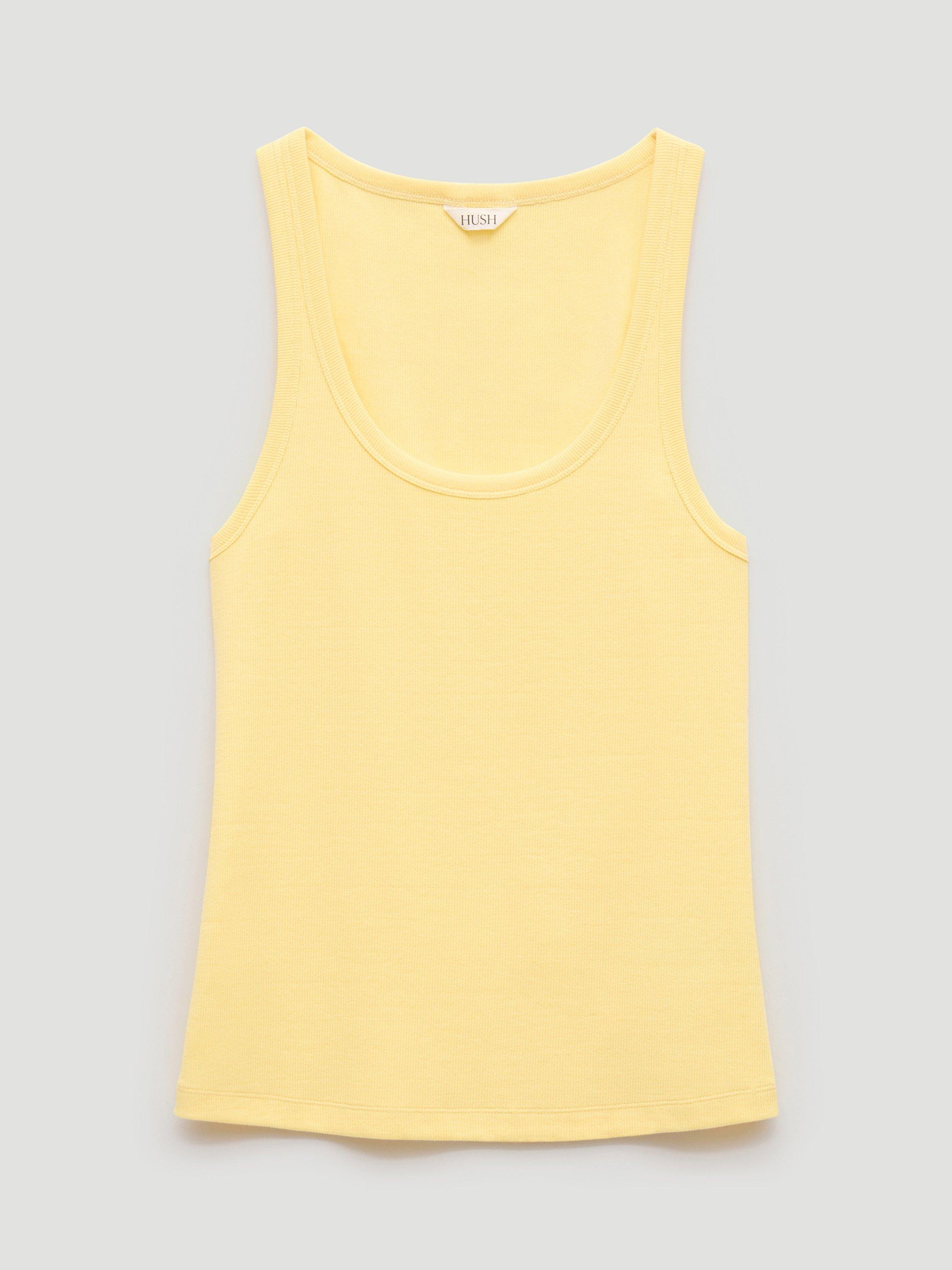 A ribbed vest top by HUSH, made from a comfortable cotton-rich fabric. With a scoop neck, the plain design means it goes with everything. Casual, cool, and perfect from morning on.