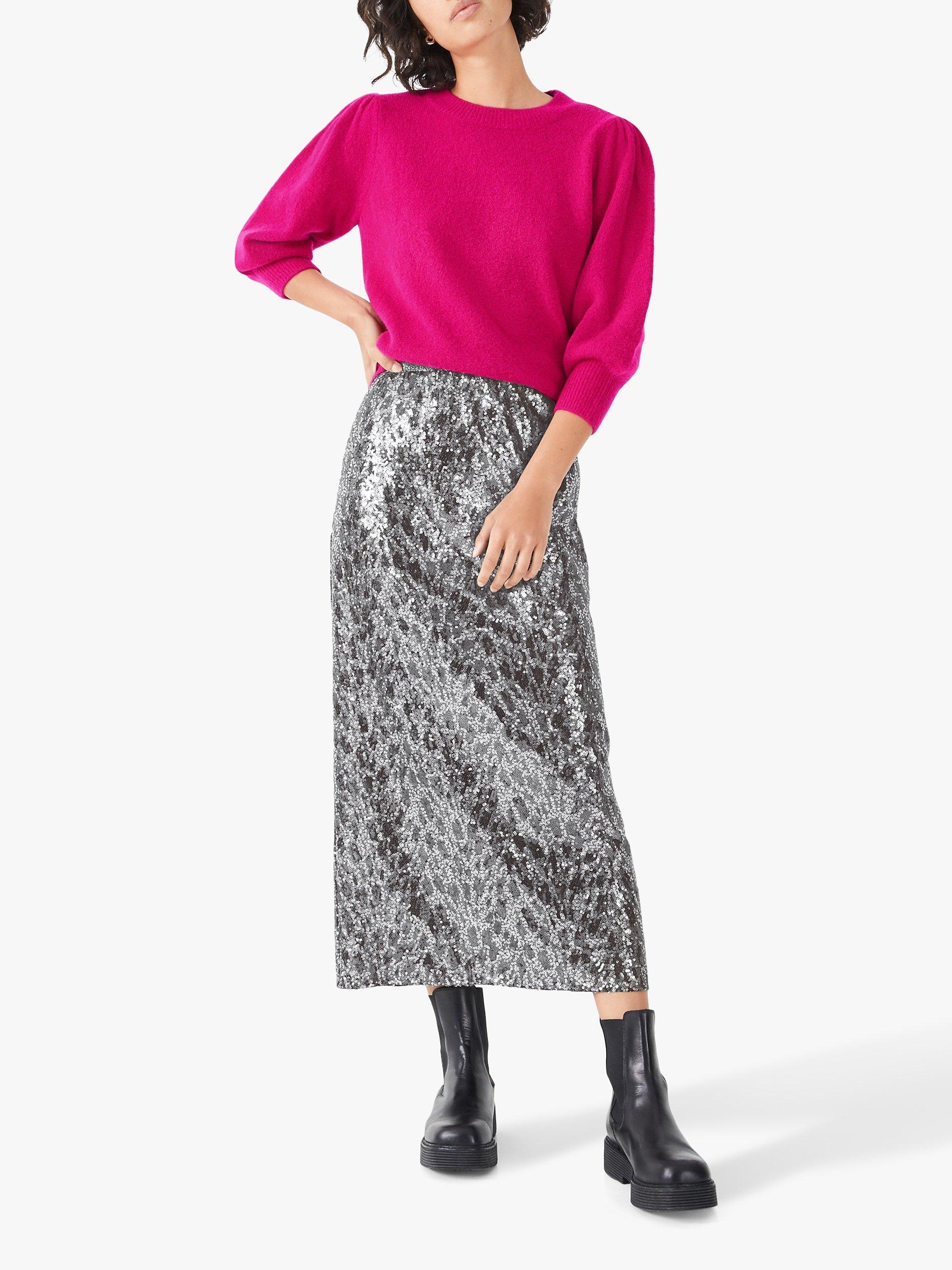 HUSHSequin Pencil Skirt, Silver
