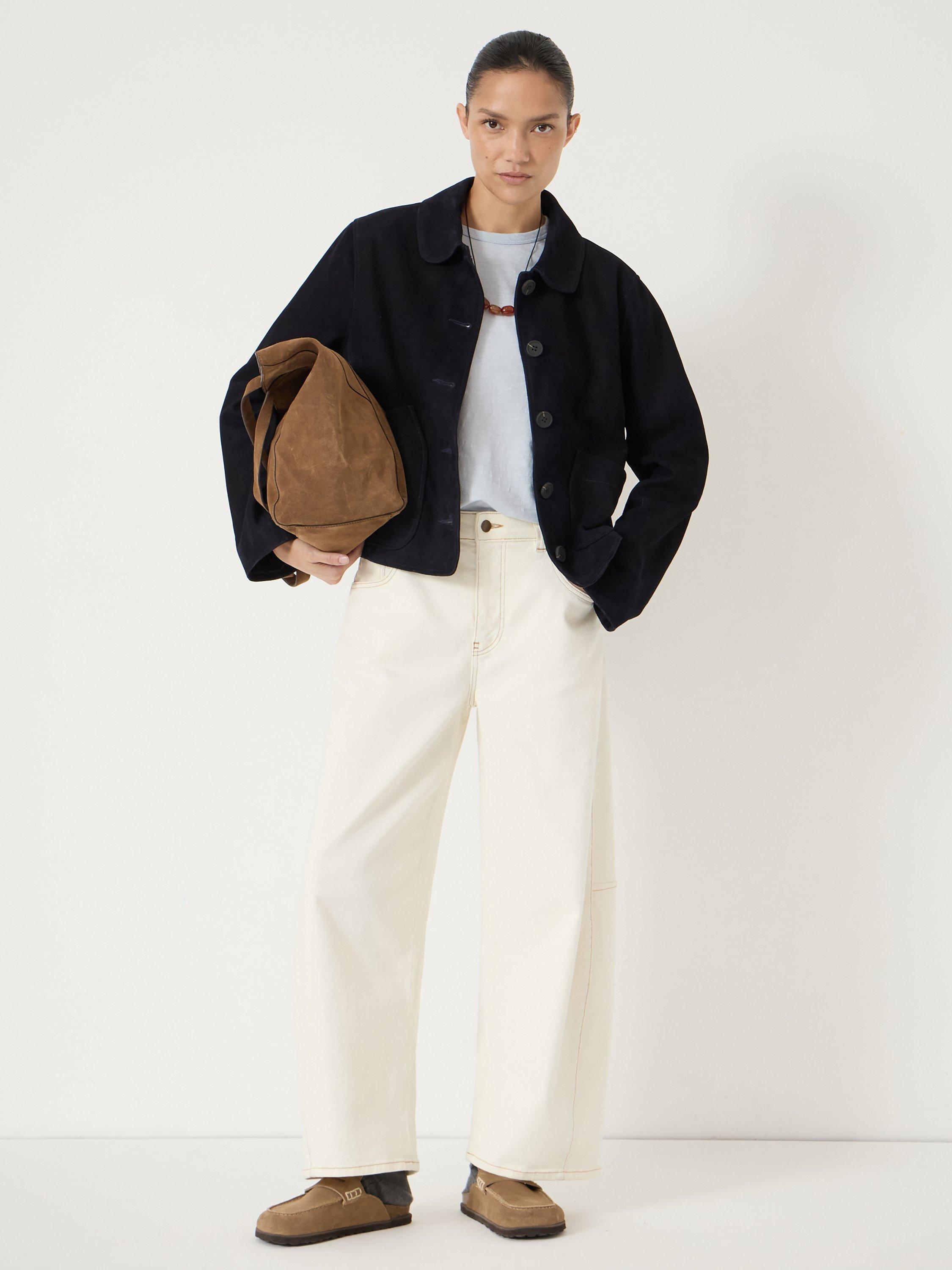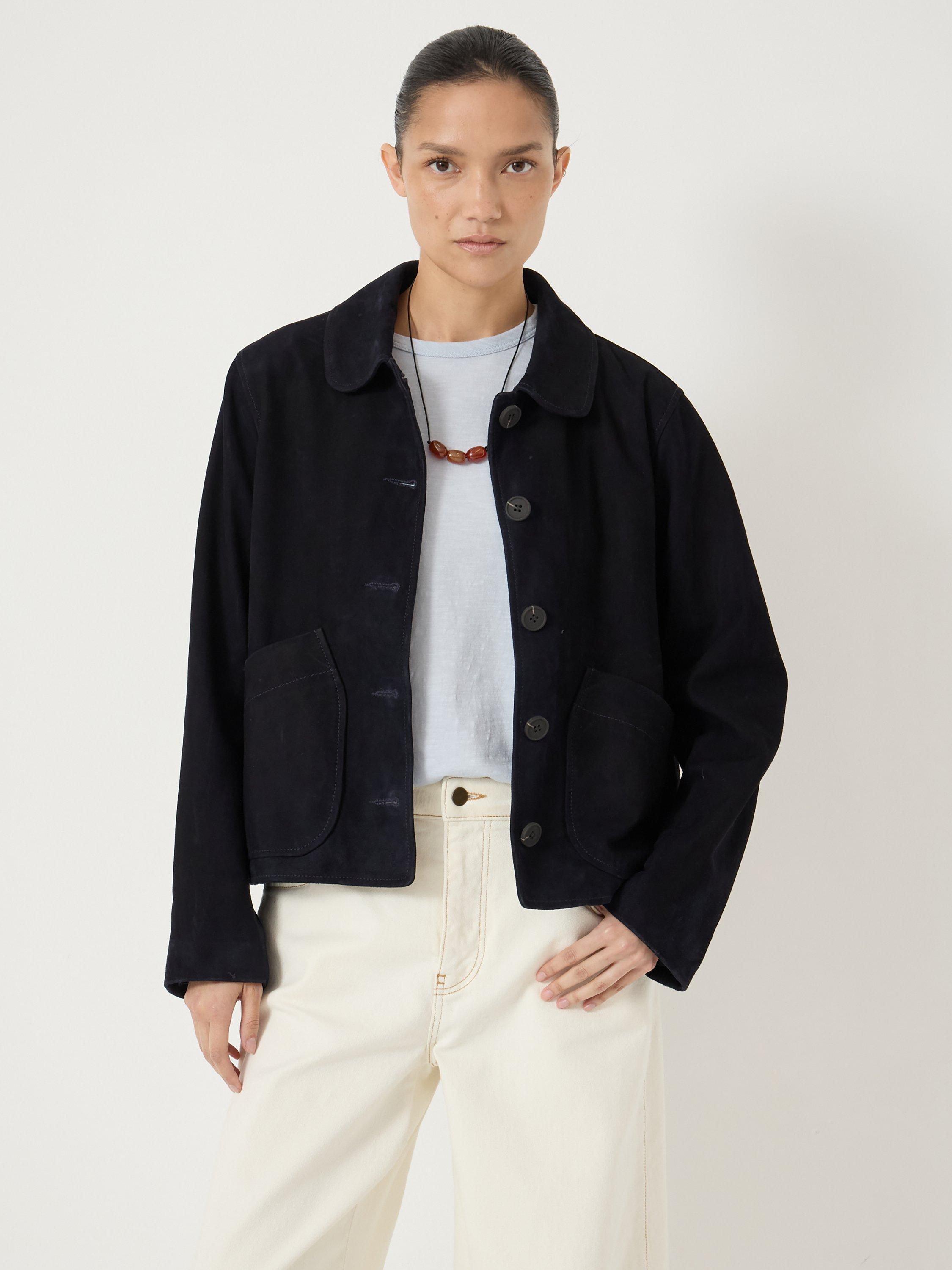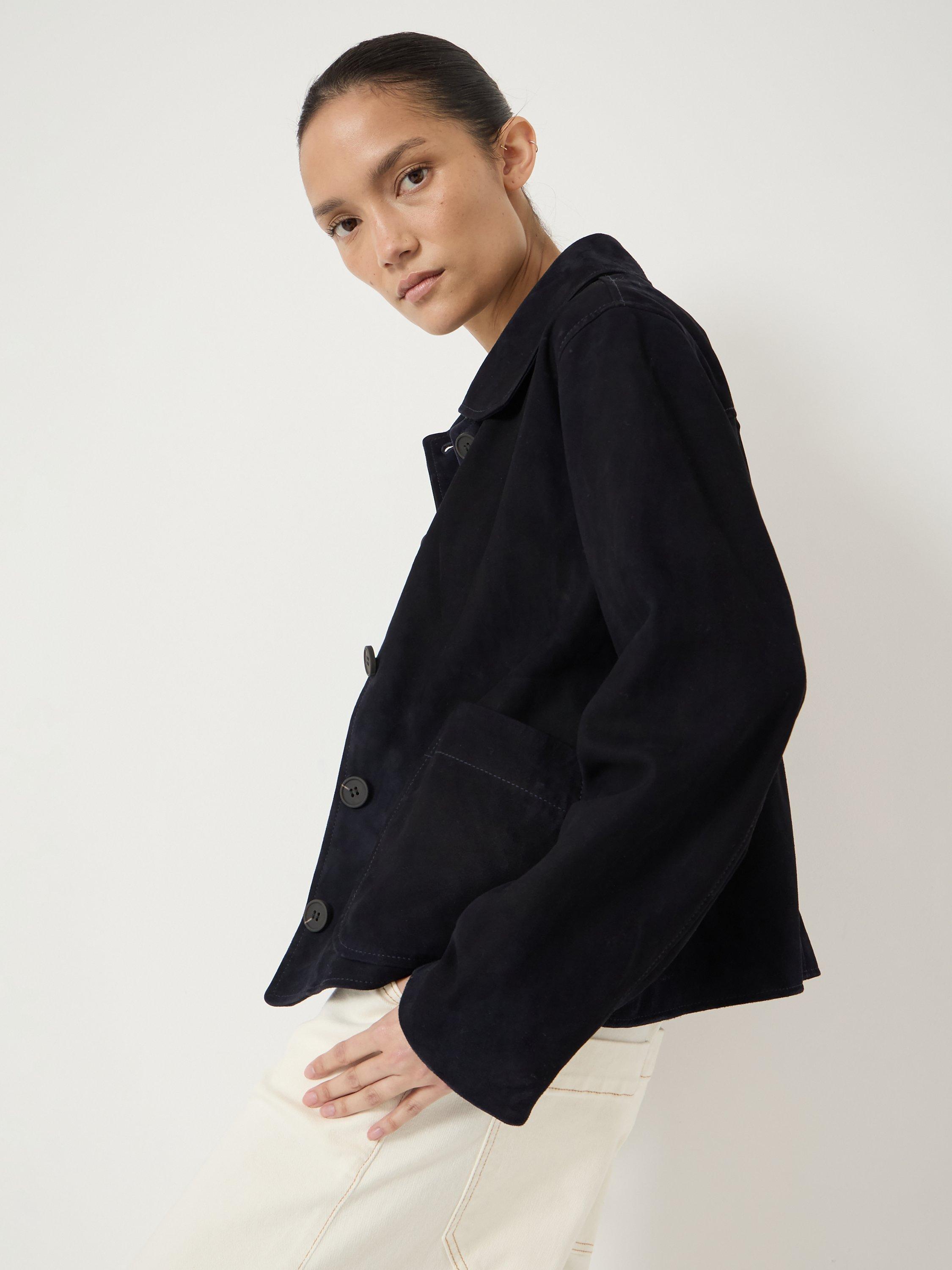 Reasons the Shaw suede jacket is the perfect mid-season layer? It's way lighter than the big duvet coats we've been wearing all winter, sure, but it still has that warmth to it thanks to the natural fabric which traps heat: win-win. HUSH have gone super pared-back for the shape and cut, with just two front pockets and a curved collar, making it a really effortless piece we can throw on over anything.