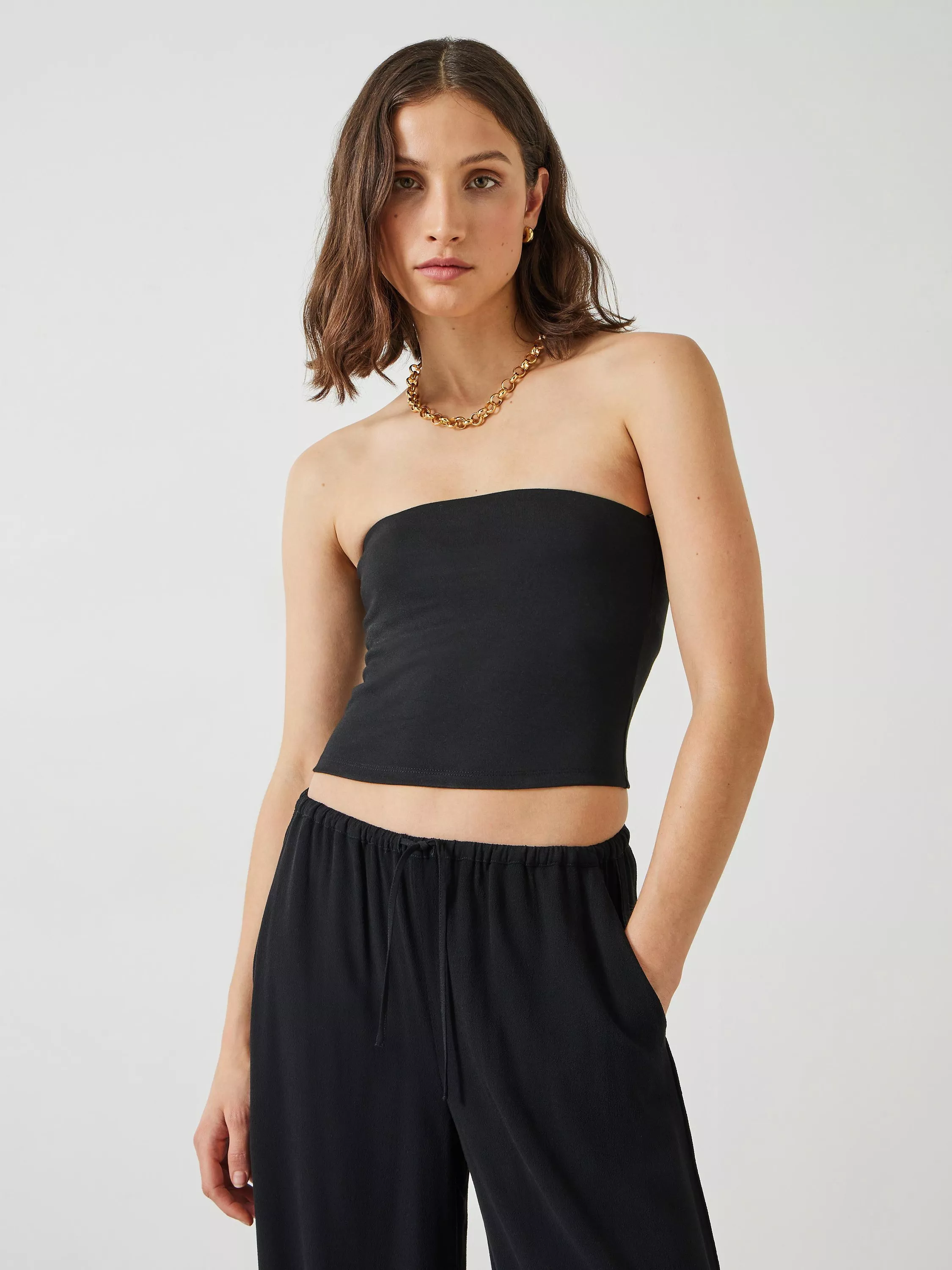 We can't wait for bare shoulder weather, and we also cant wait to wear the Skylah bandeau top. Made from a soft cotton jersey with inner stay-tape detailing to keep it perfectly in place. Style it with denim now and beach trousers when on holiday - it's the kind of thing you can turn to whenever you want to feel a bit dressed up.