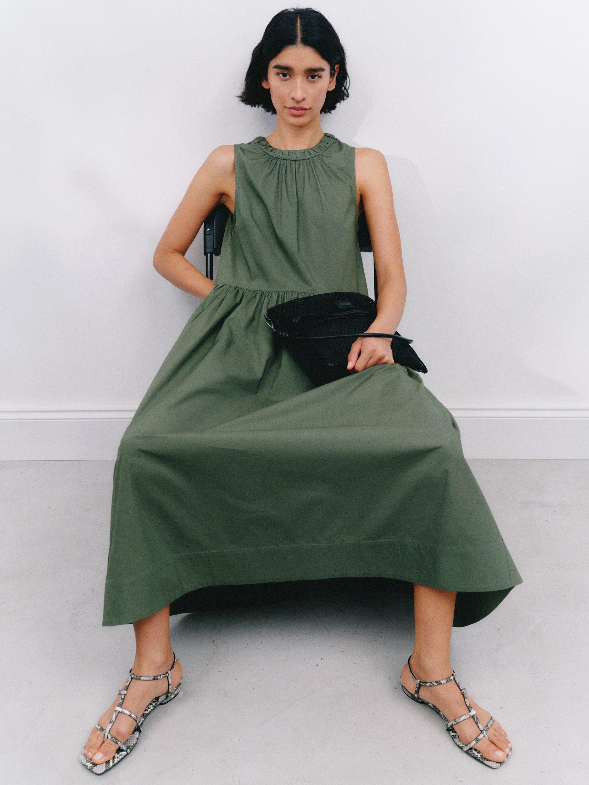 The vibe we're getting from this sleeveless maxi cotton dress? Easy elegance because that ruched neckline and dropped waist somehow turn it from an everyday basic into something much more stylish and put-together. Perfect for layering with cardigans on crisp mornings and catching rays in the park on lazy afternoons.