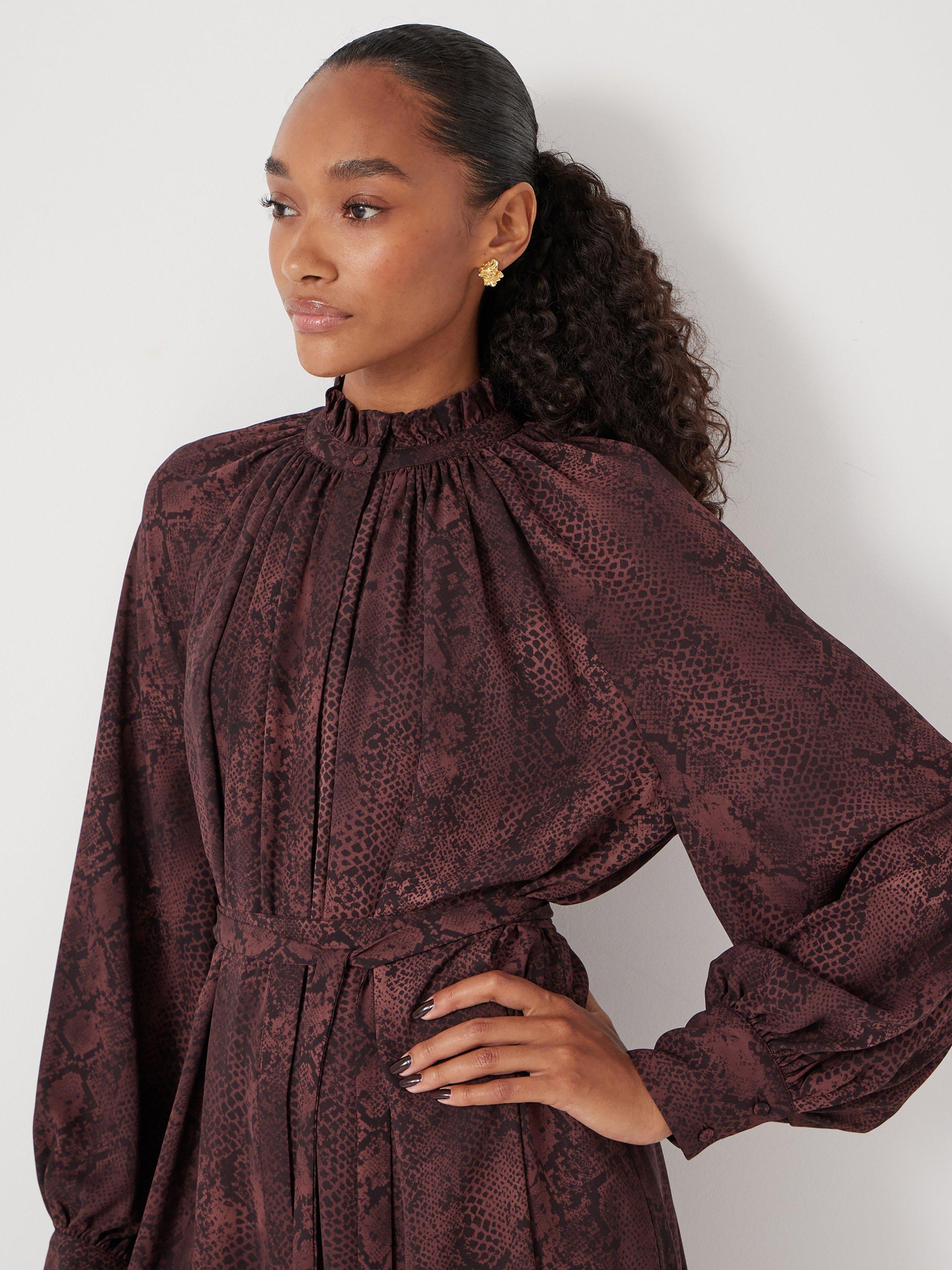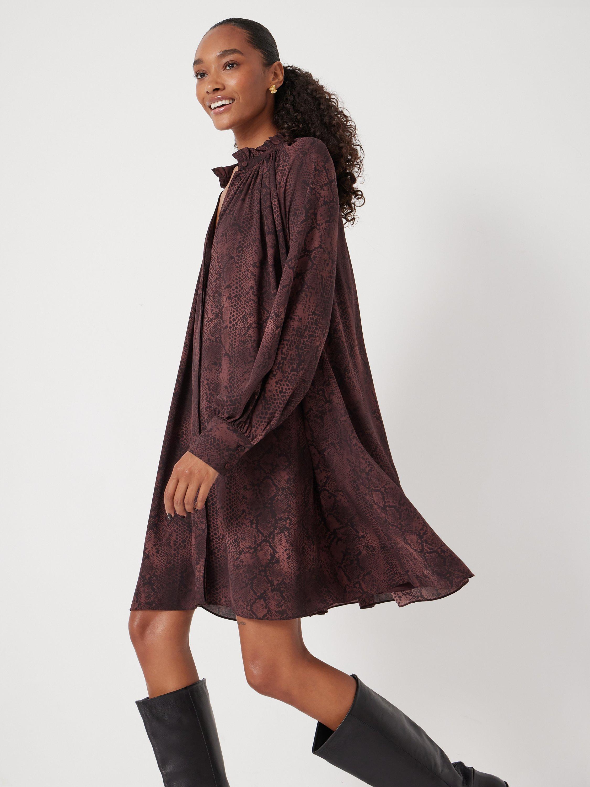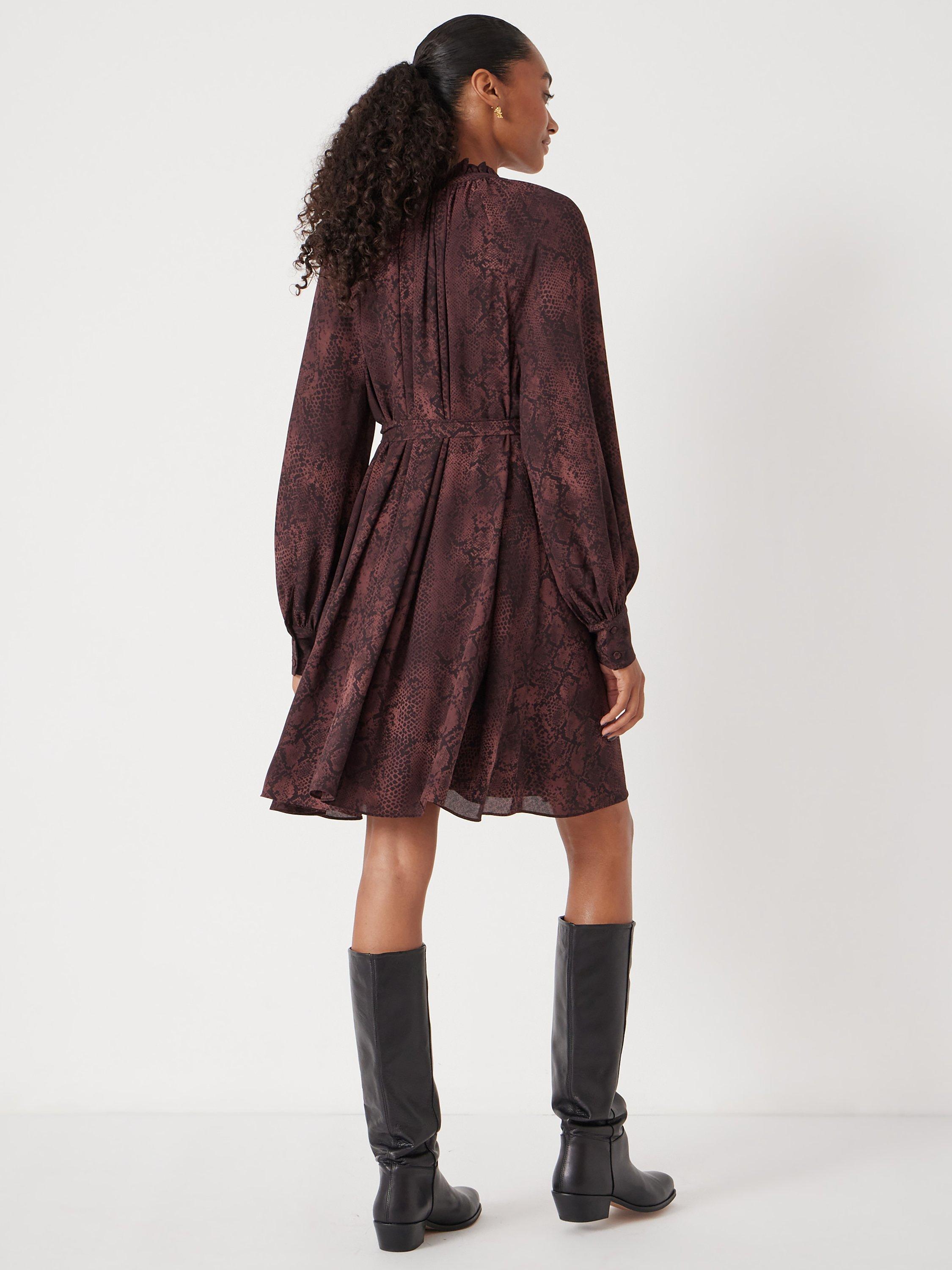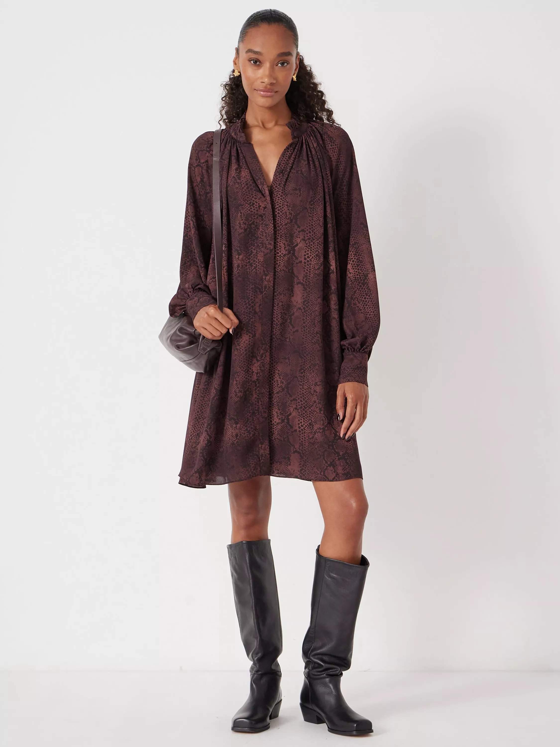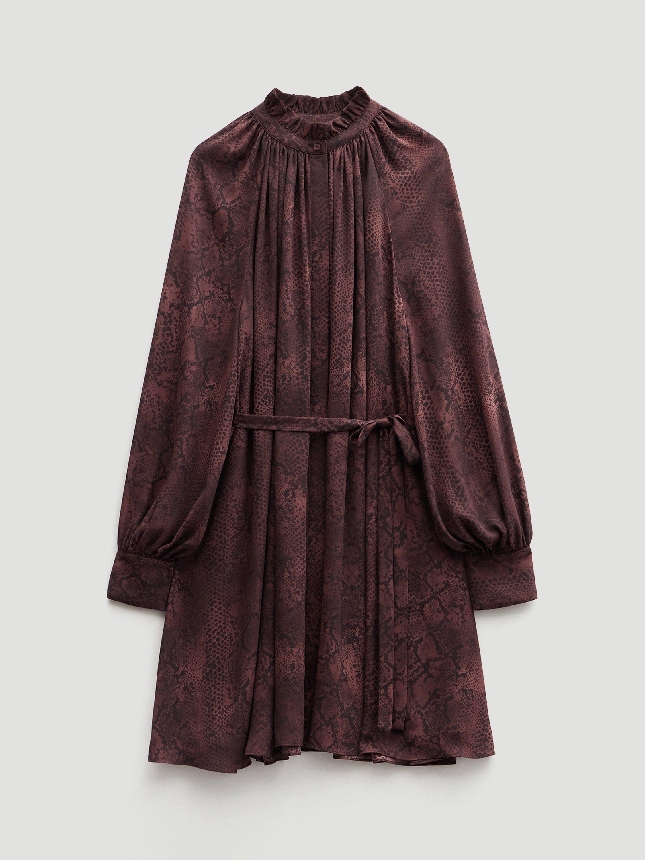 A chiffon mini dress from HUSH. Its high neck and snake pattern add playful flair, while long sleeves offer comfort. Designed for easy confidence wherever you go, it invites you to express your unique style.