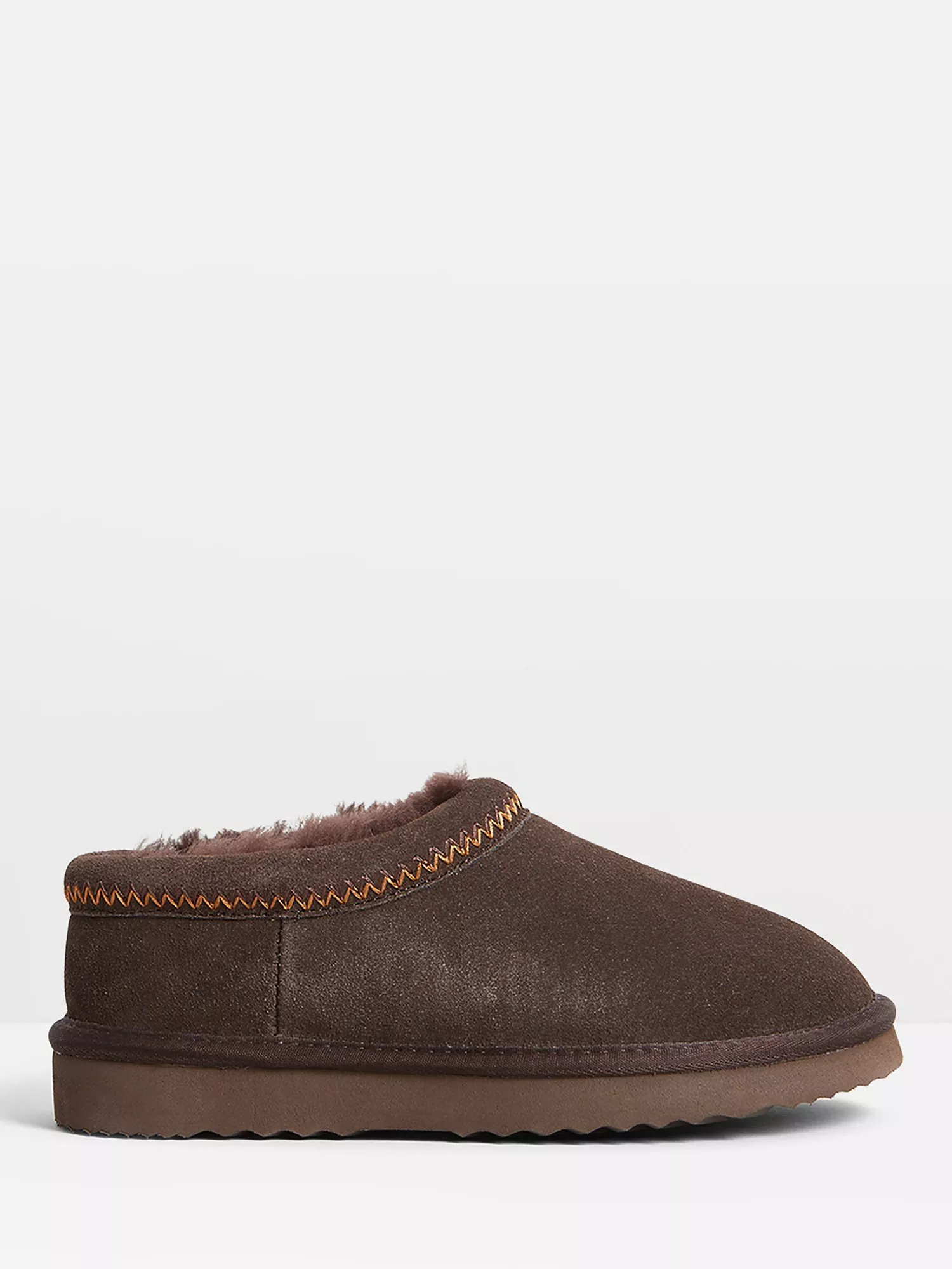 In a backless style that makes slipping into that bit easier, these slippers by HUSH are made from soft and warming sheepskin with a fluffy lining and a proper sole so you can wear them inside or outside.