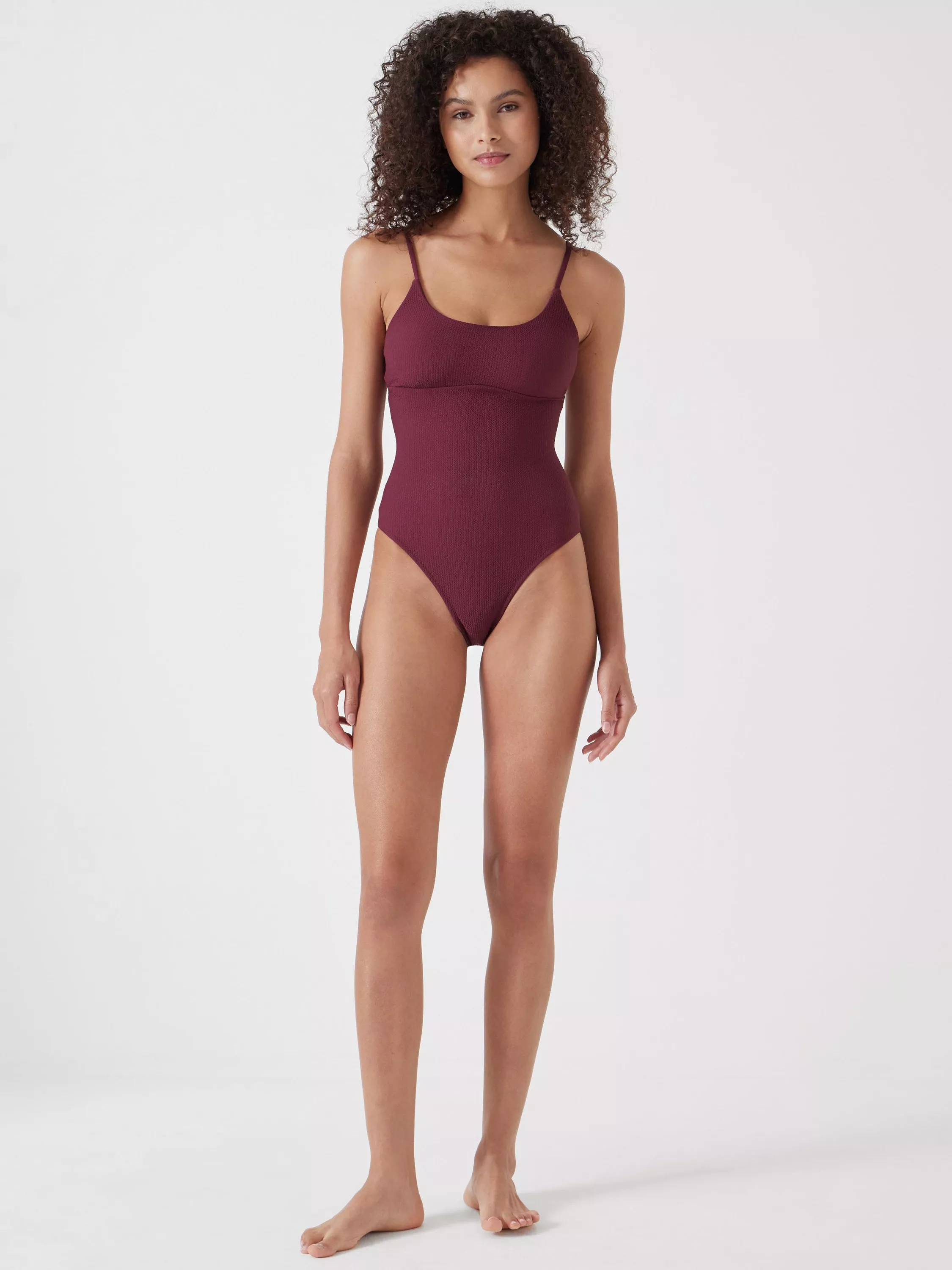 The most important thing to keep in mind when investing in new swimwear? It's all in the cut, like the flattering square neck shape of this textured swimsuit. HUSH has made the cups removable and the straps adjustable to get the fit just how you like it, and the cut-out detail at the back gives it an on-trend finish.