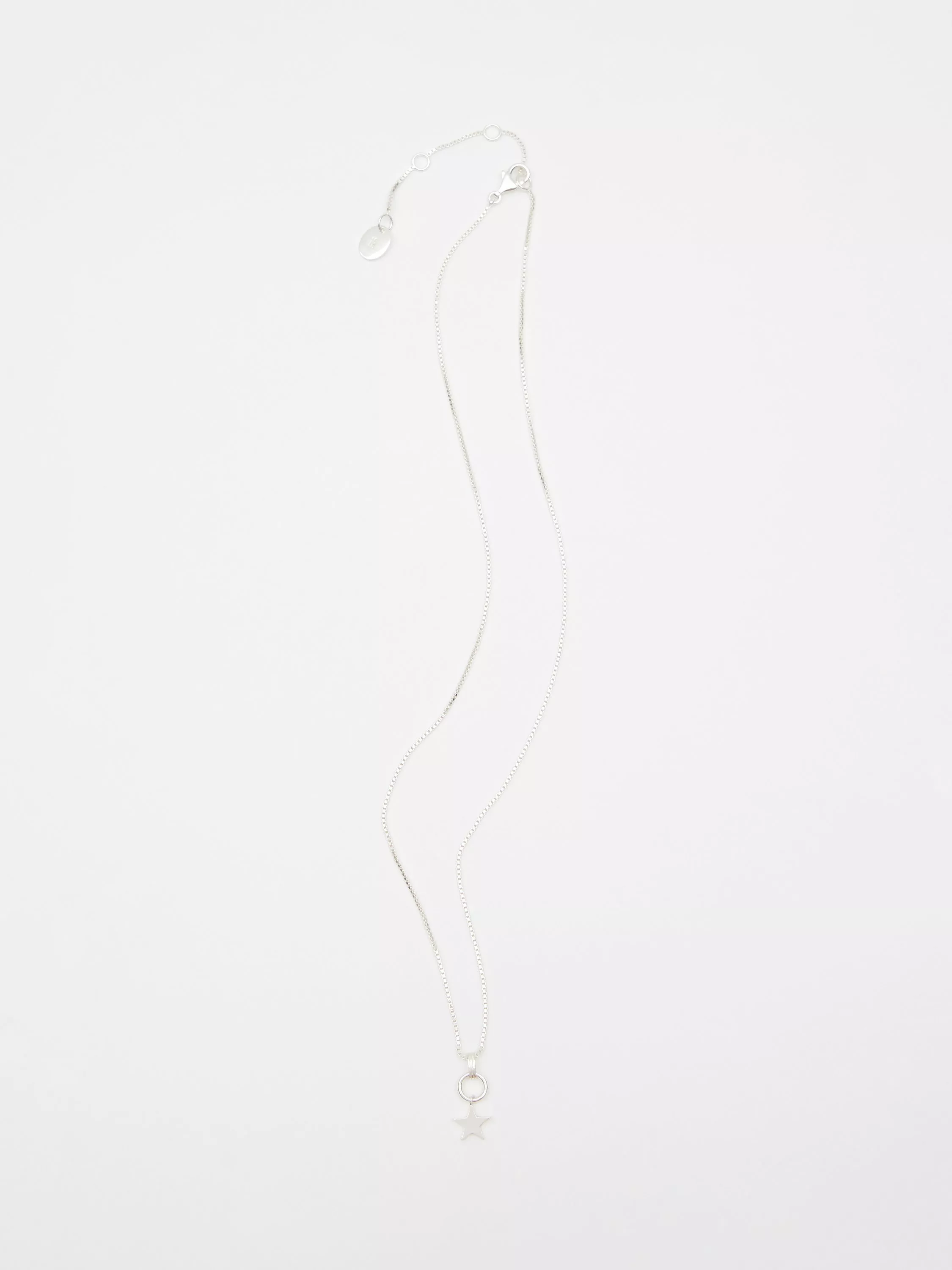 Suspending from the neck, this box chain pendant necklace from HUSH makes a unique addition to jewellery collections.