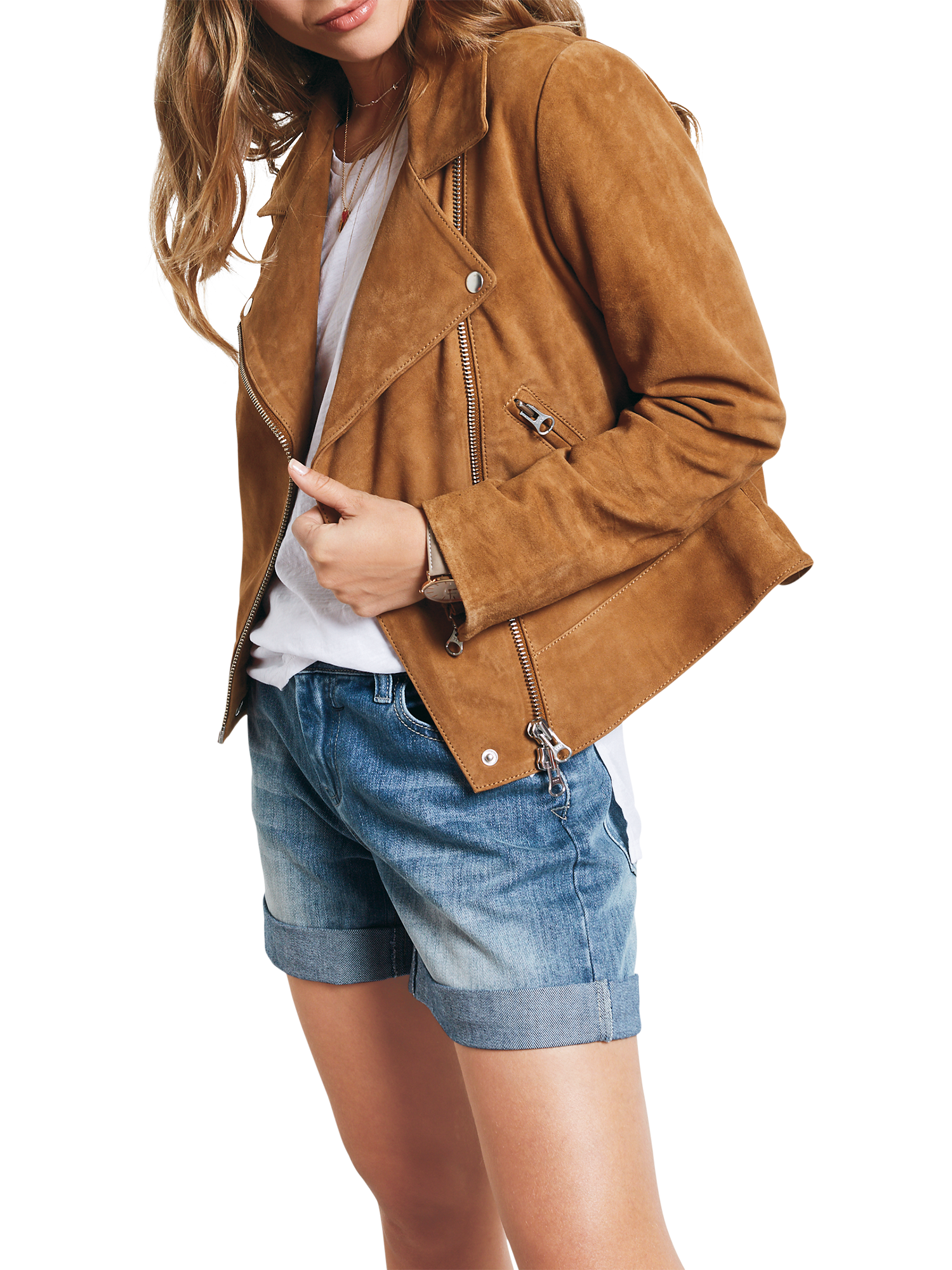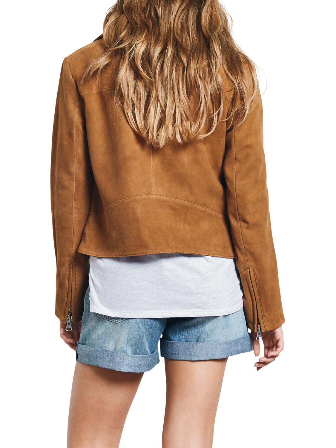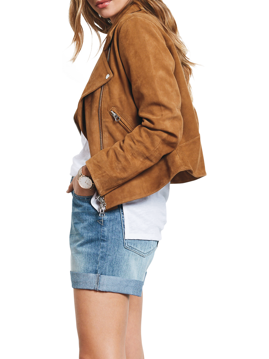 Finely crafted with a soft leather suede, this timeless piece will transcend the seasons. It's cut in a classic biker silhouette with notched lapels, an asymmetric zip fastening and back panelling for a refined fit.
