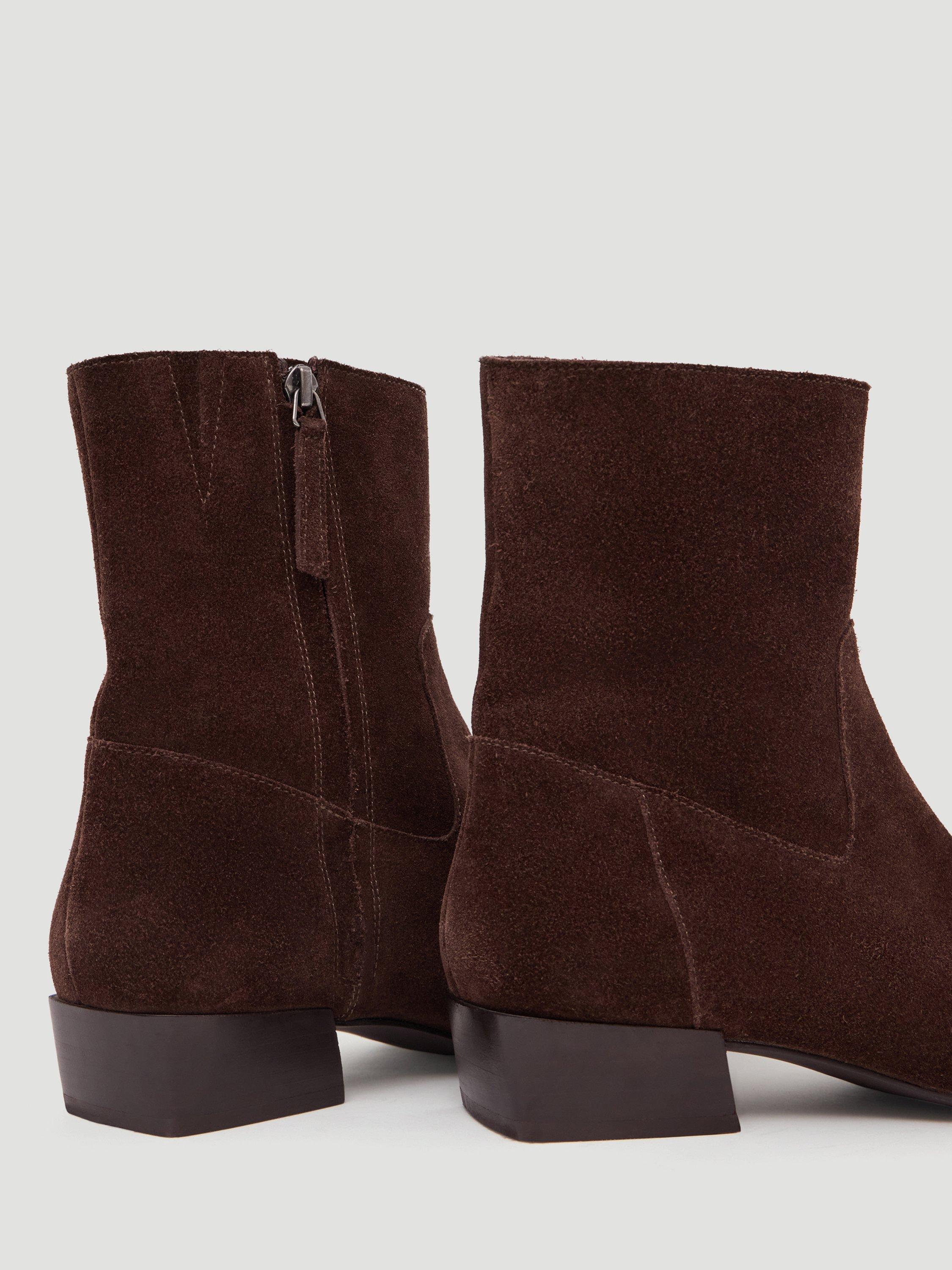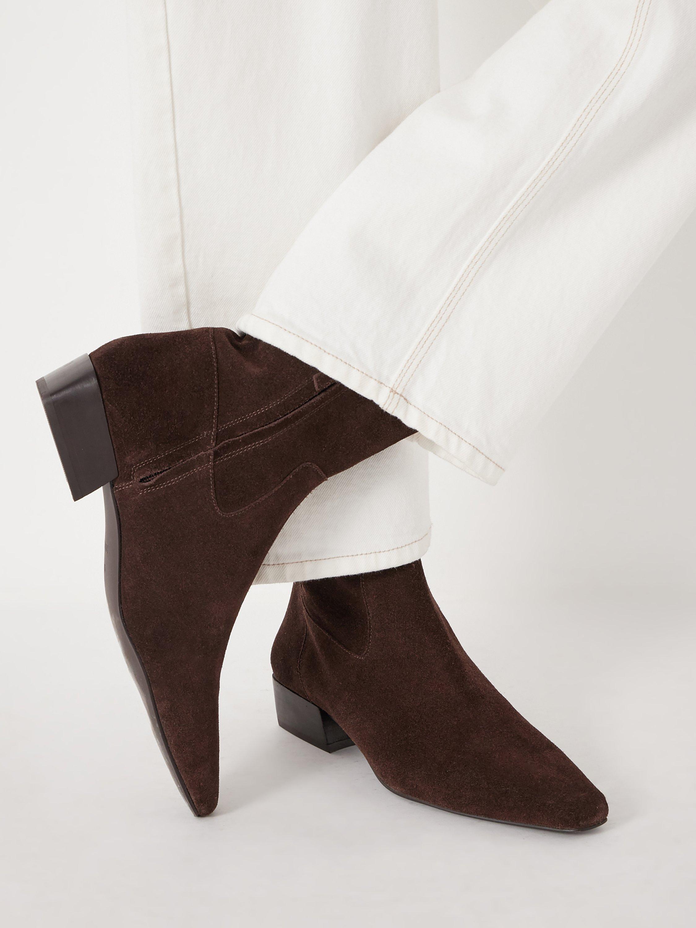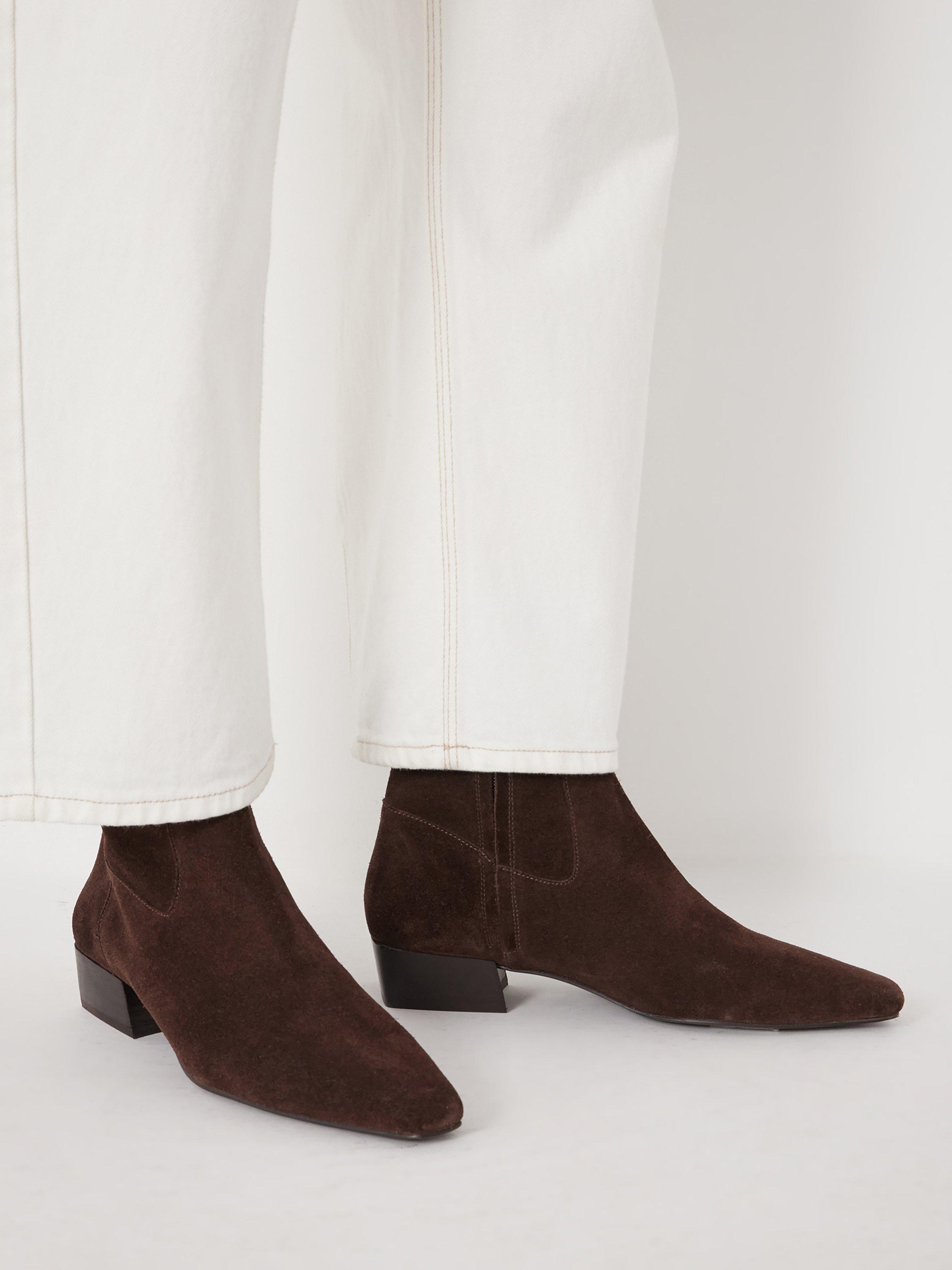 Made from suede with a block heel and squared toes, these ankle boots can be worn with just about anything.