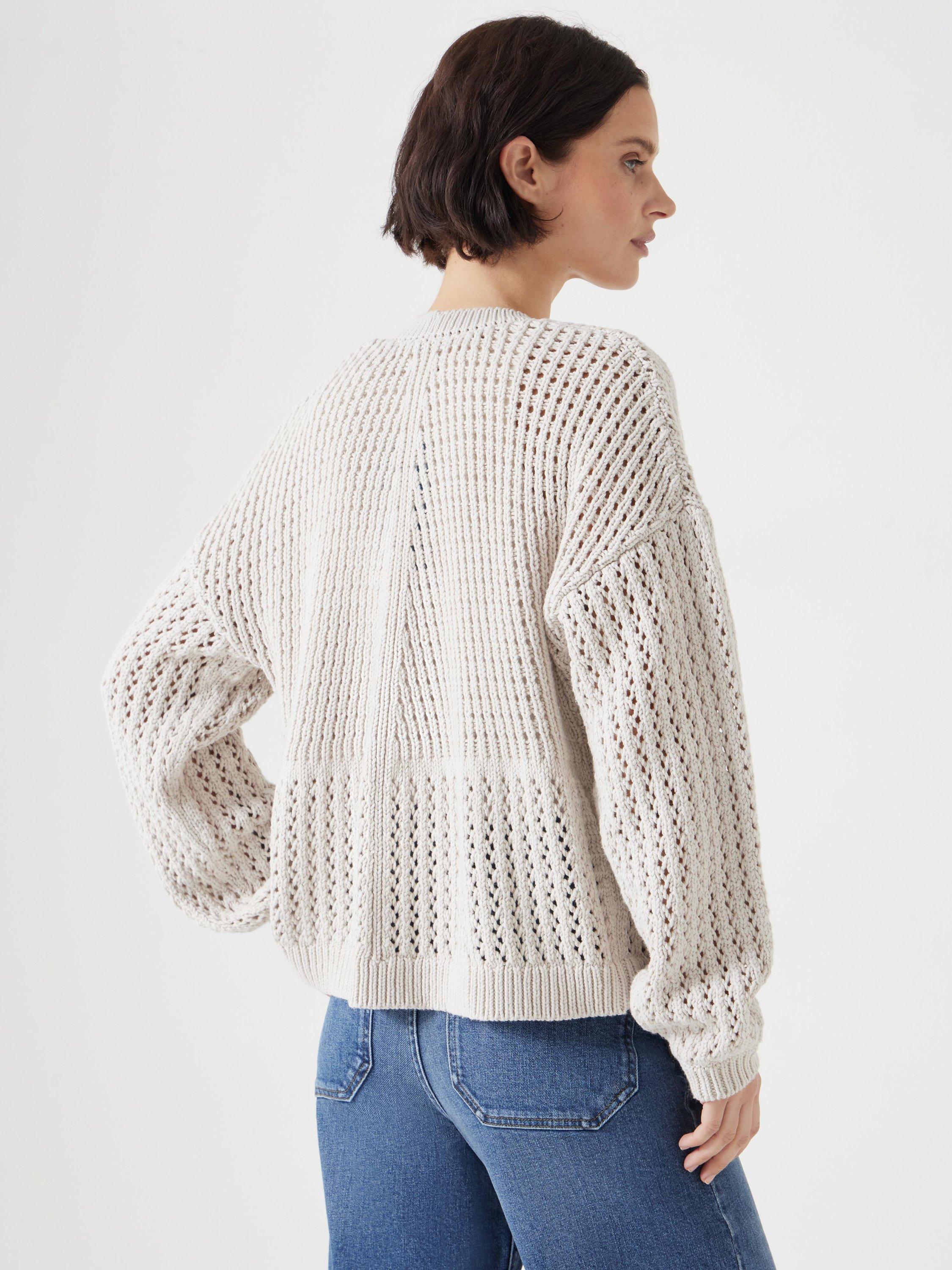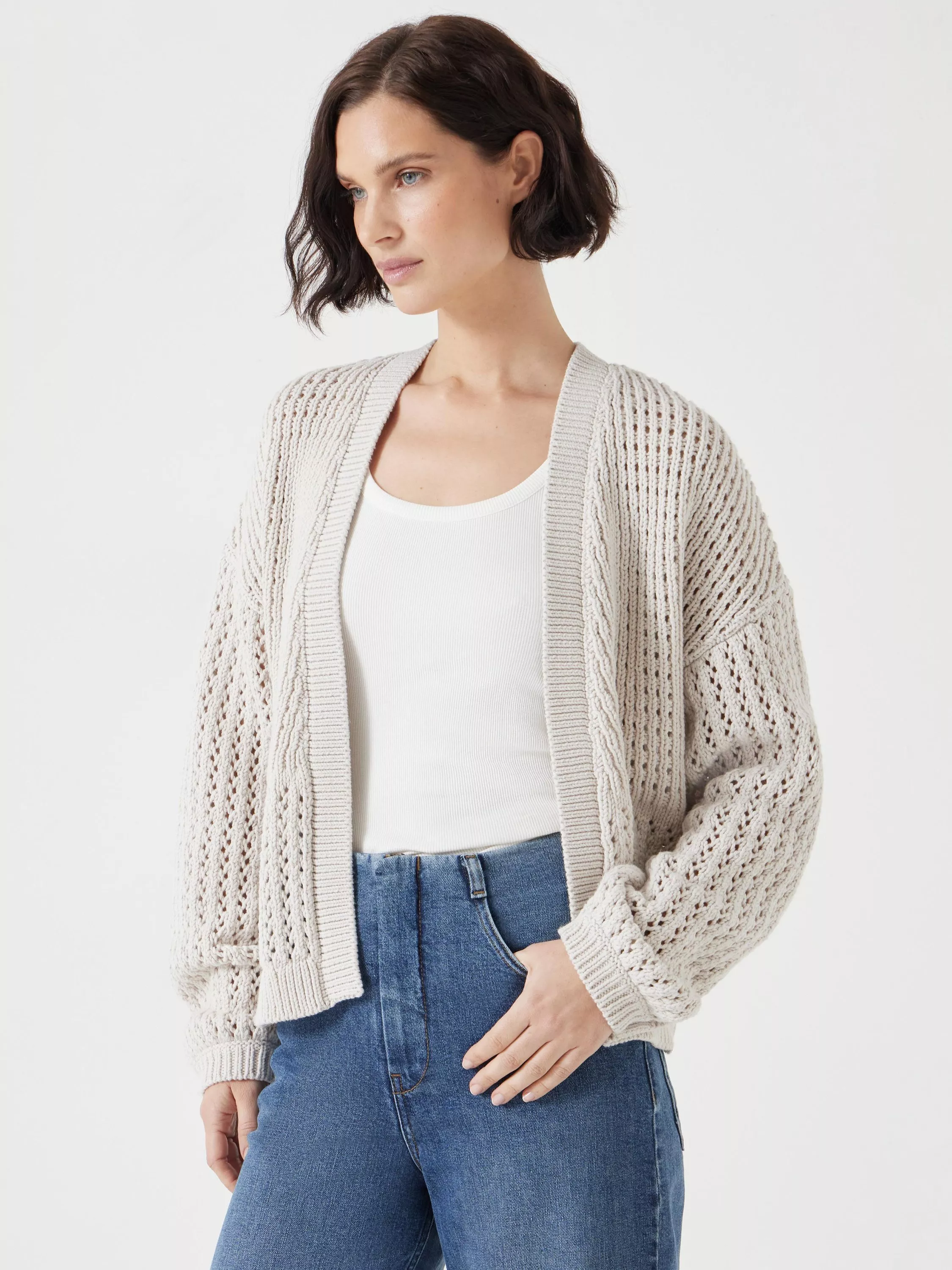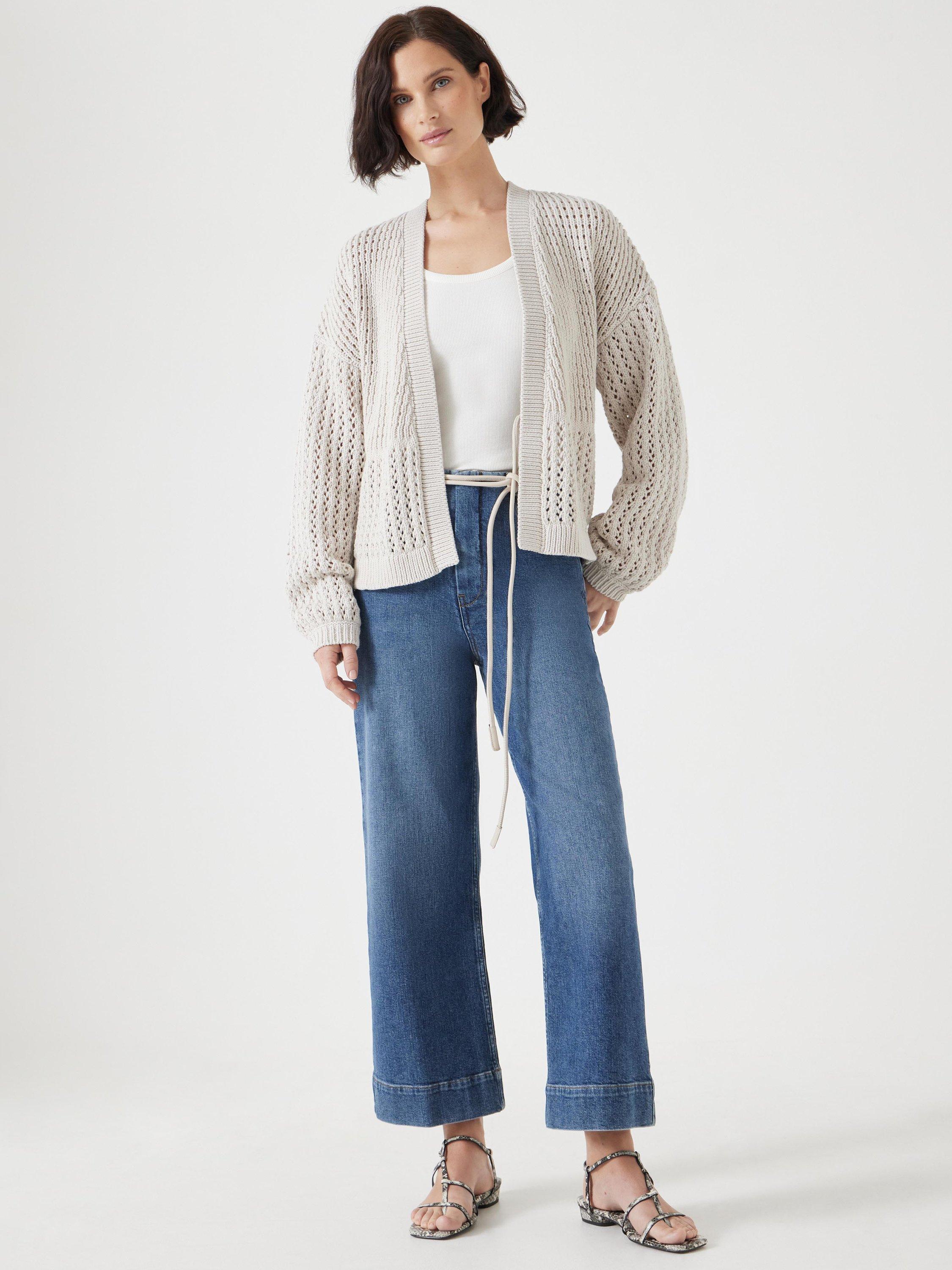 Love wearing cosy layers but still want to feel like you made a little effort? This cotton-blend cardigan is what we'll be reaching for on chilly spring days to keep us warm and stylish. Edge-to-edge stitching is combined with an open-weave knit pattern on the body and sleeves for a cool textured look, and the dropped shoulders give it that laid-back vibe we can't get enough of.