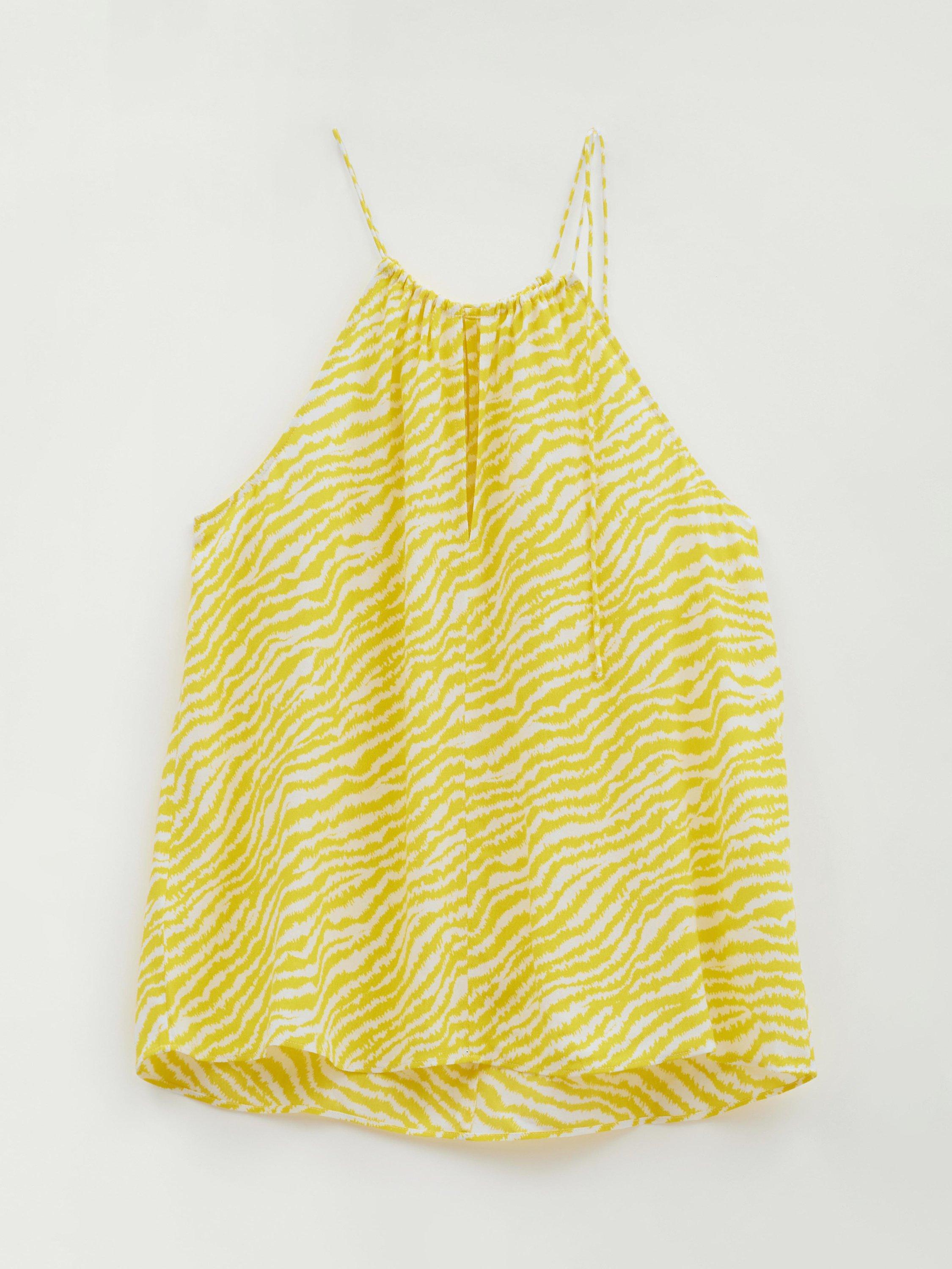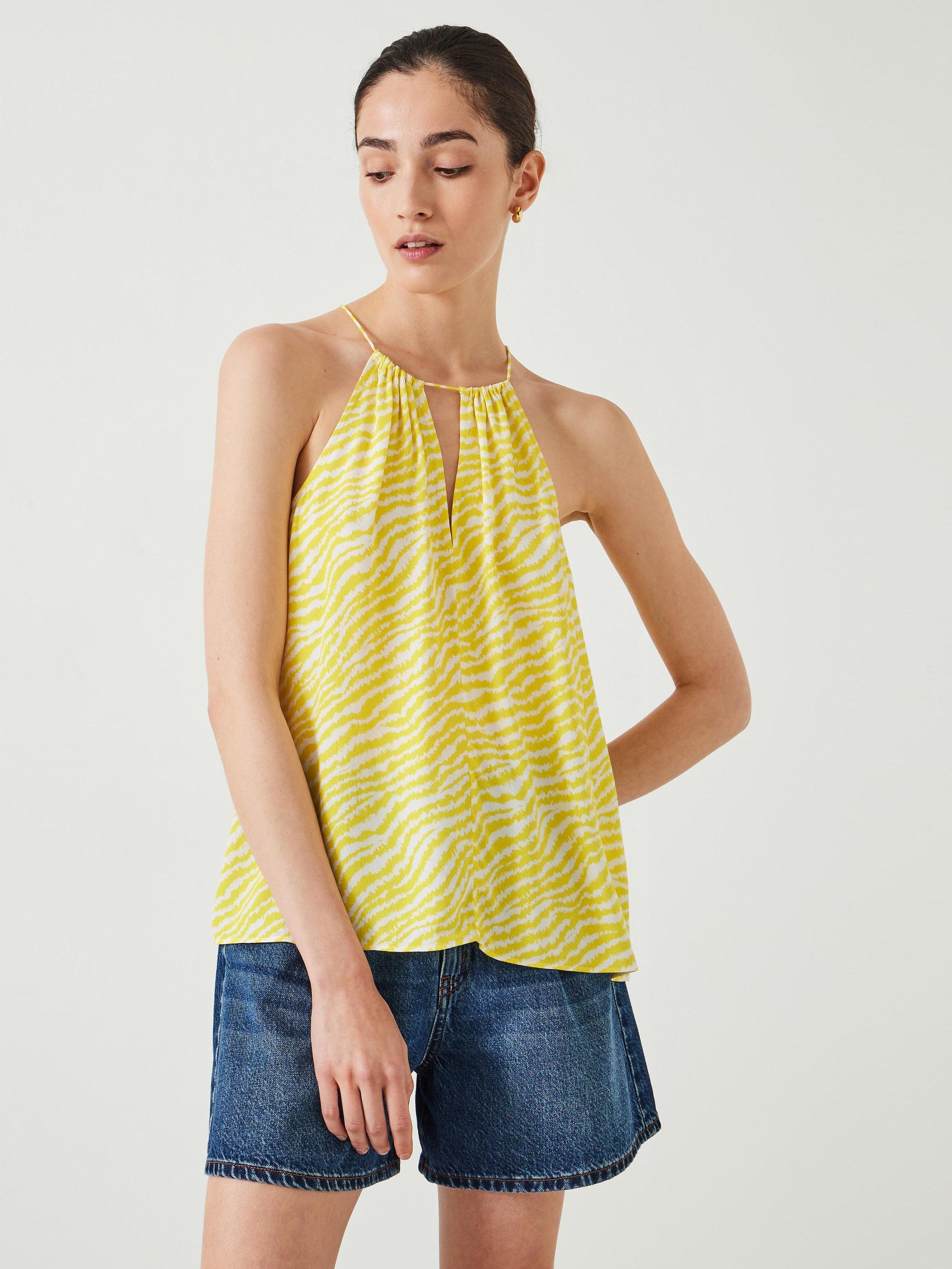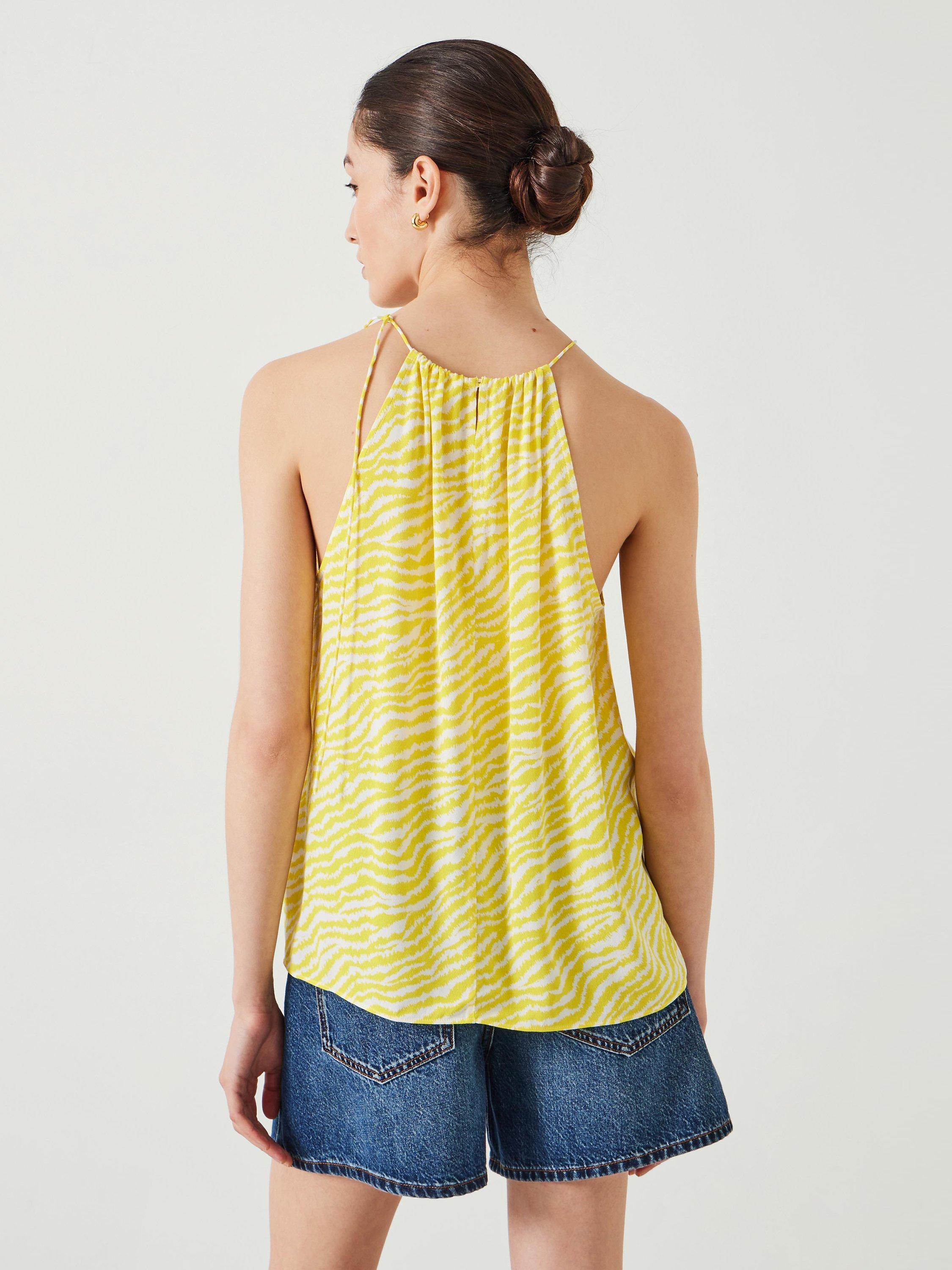 HUSH's Tina halter top is perfect for pairing with denim shorts this season, but there are plenty of other ways to style it: with loose linen trousers, silky midi skirts and (of course) your favourite jeans. The all-over animal print is a great way to bring a pop of colour to our look, but it still feels really fresh thanks to the unexpected shade of yellow.