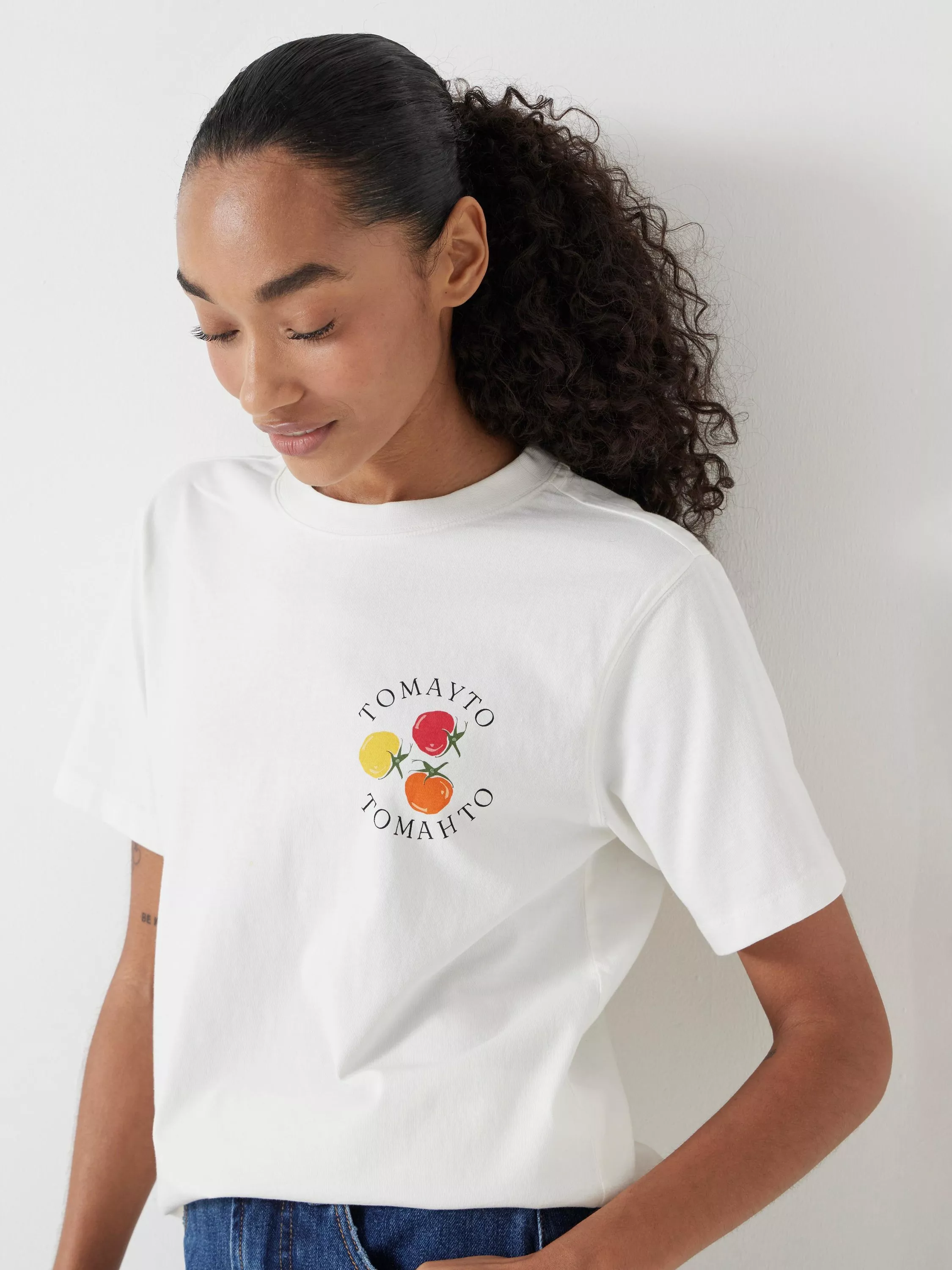 How do you say it - tomayto or tomahto? Either way, we'll be adding this short-sleeved graphic tee into our wardrobes this season to wear on casual days, when our only plans involve grabbing something cold from the ice cream van. It's made from pure cotton for a premium feel, and we love that the print features on the front and back so it's visible from all angles.