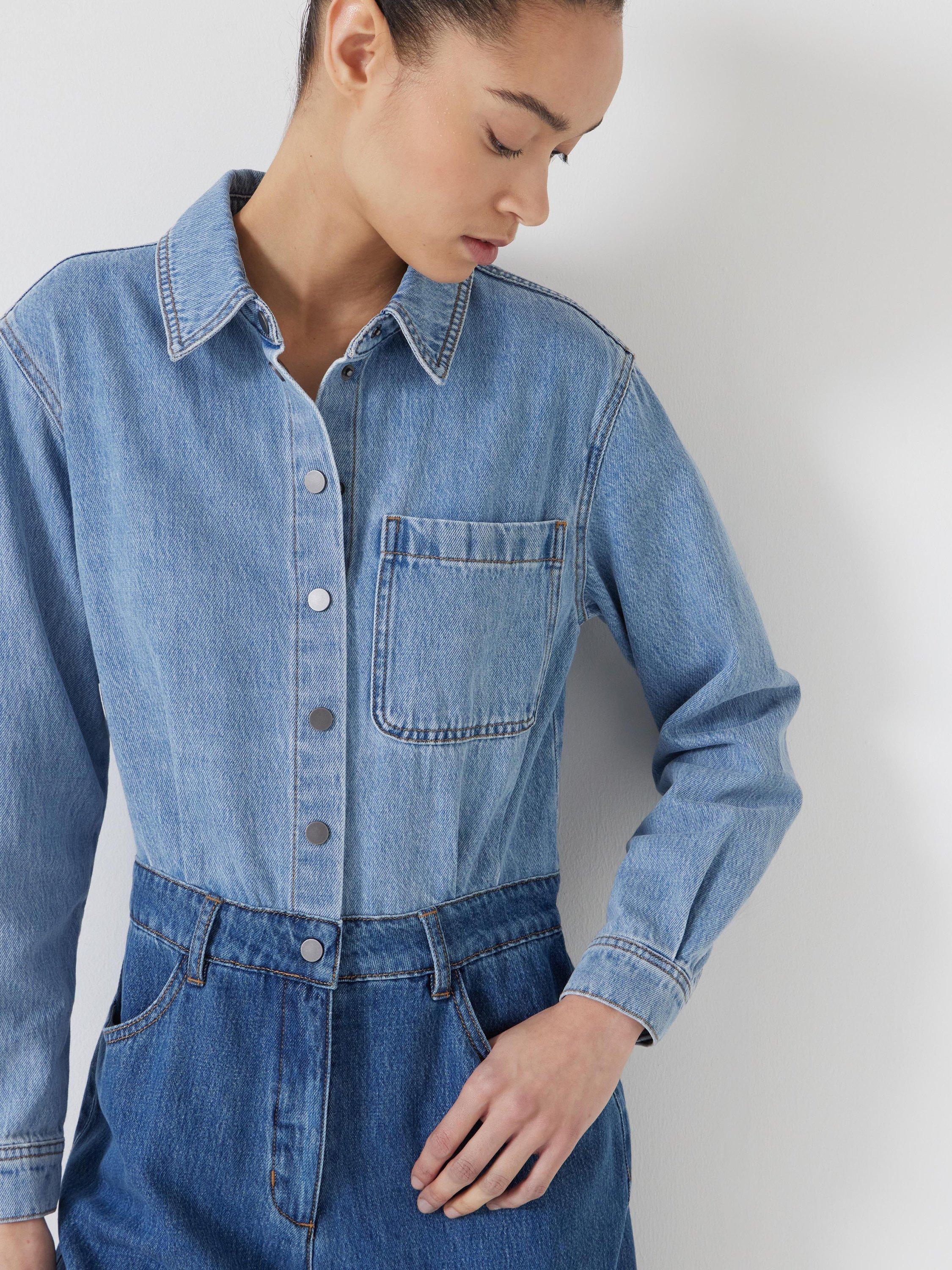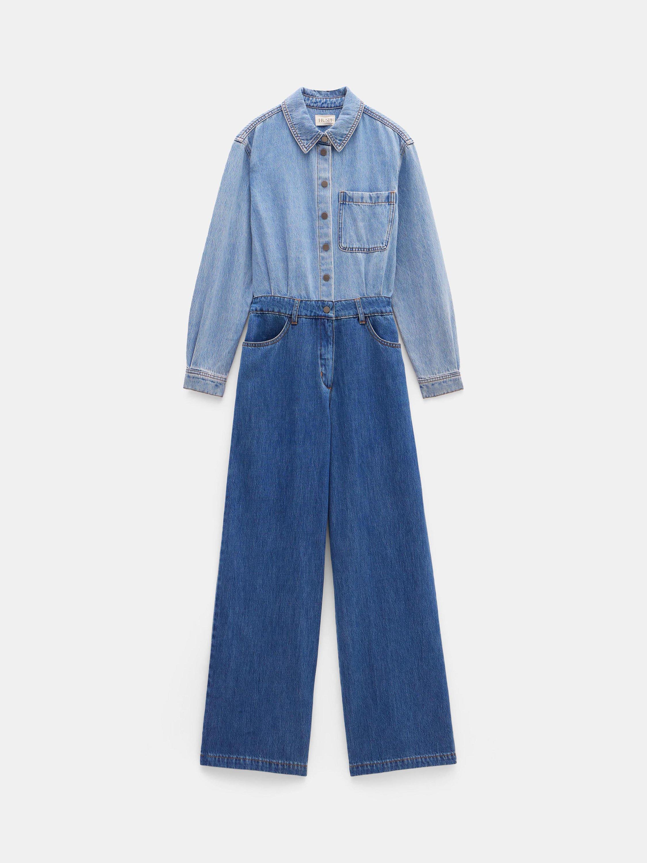 HUSHTwo Tone Denim Jumpsuit, Blue Denim