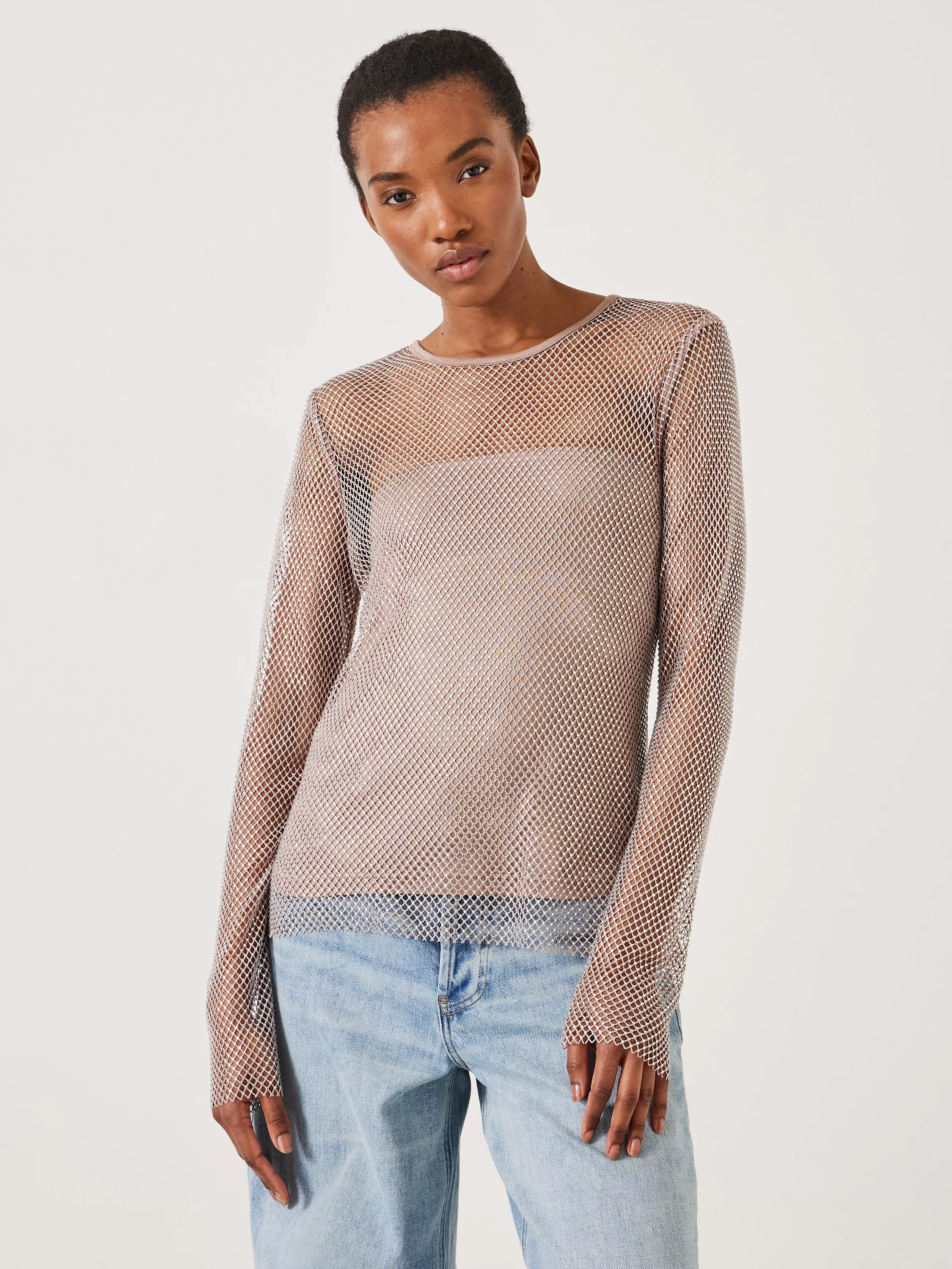 Sparkles for summer? You heard us right. Una is actually a 2-in-1 piece, with a strapless bandeau underneath a long-sleeved mesh top that we've encrusted with twinkling crystals. We'll be dressing ours down with casual denim and ballet pumps.