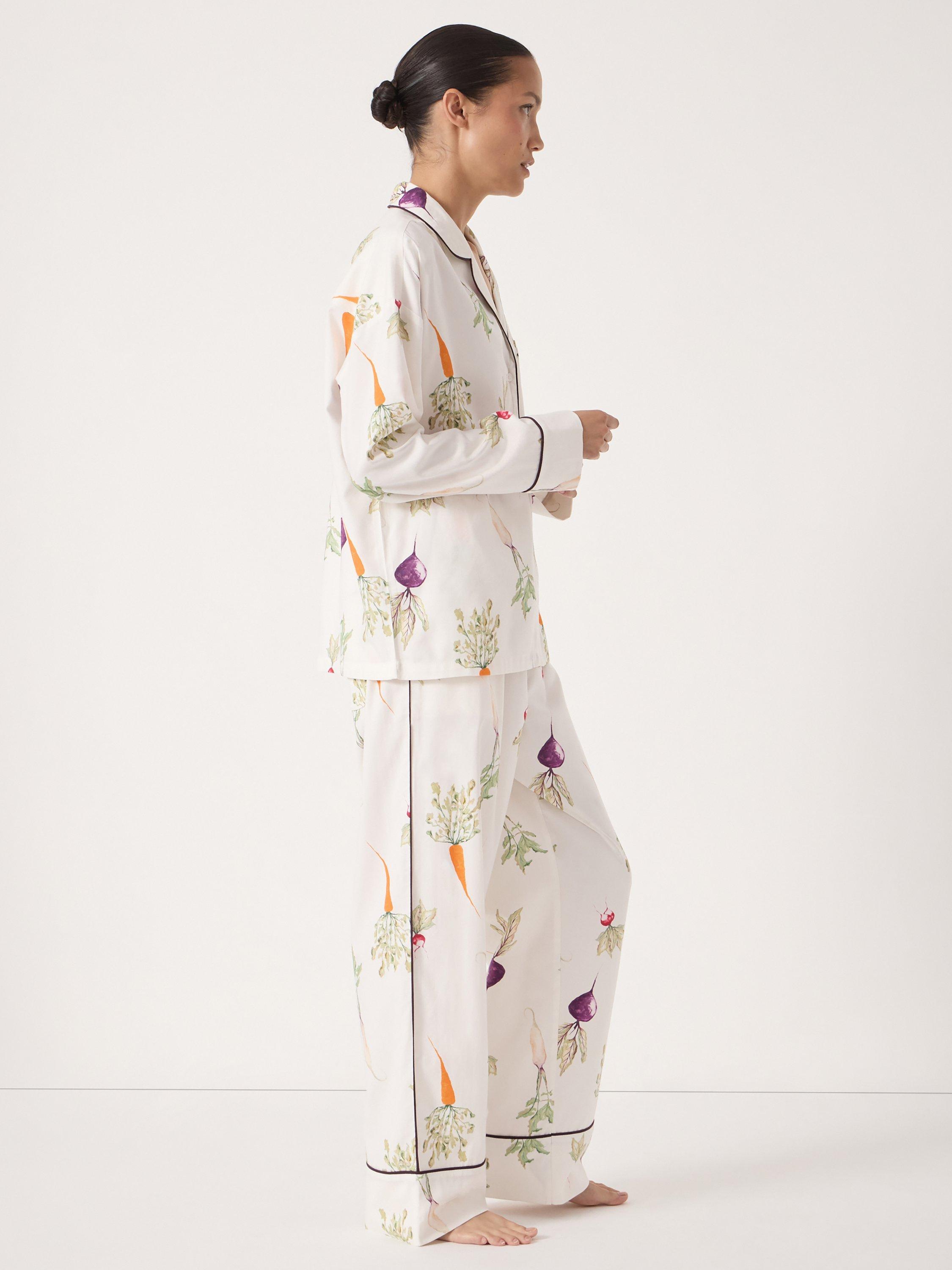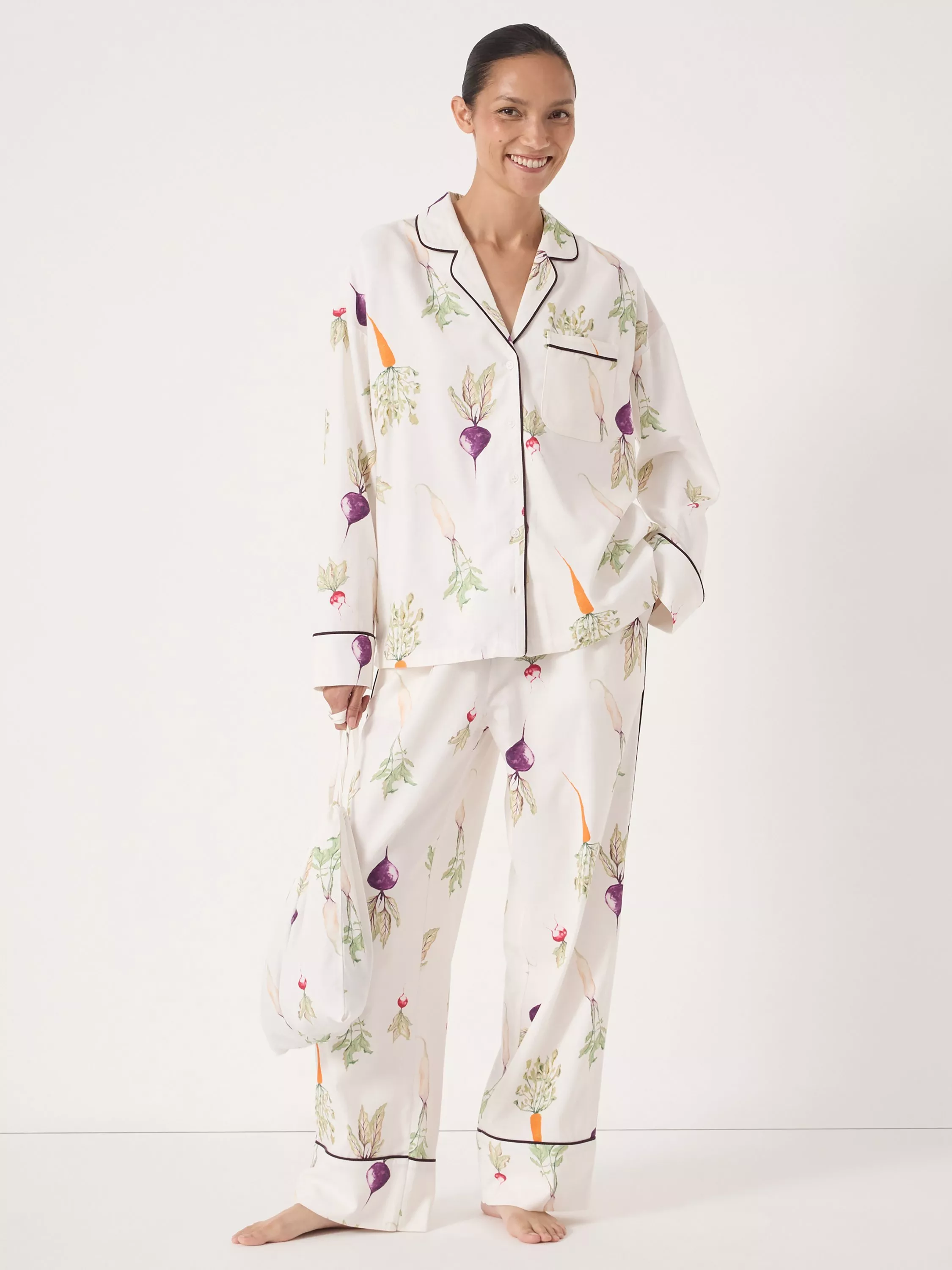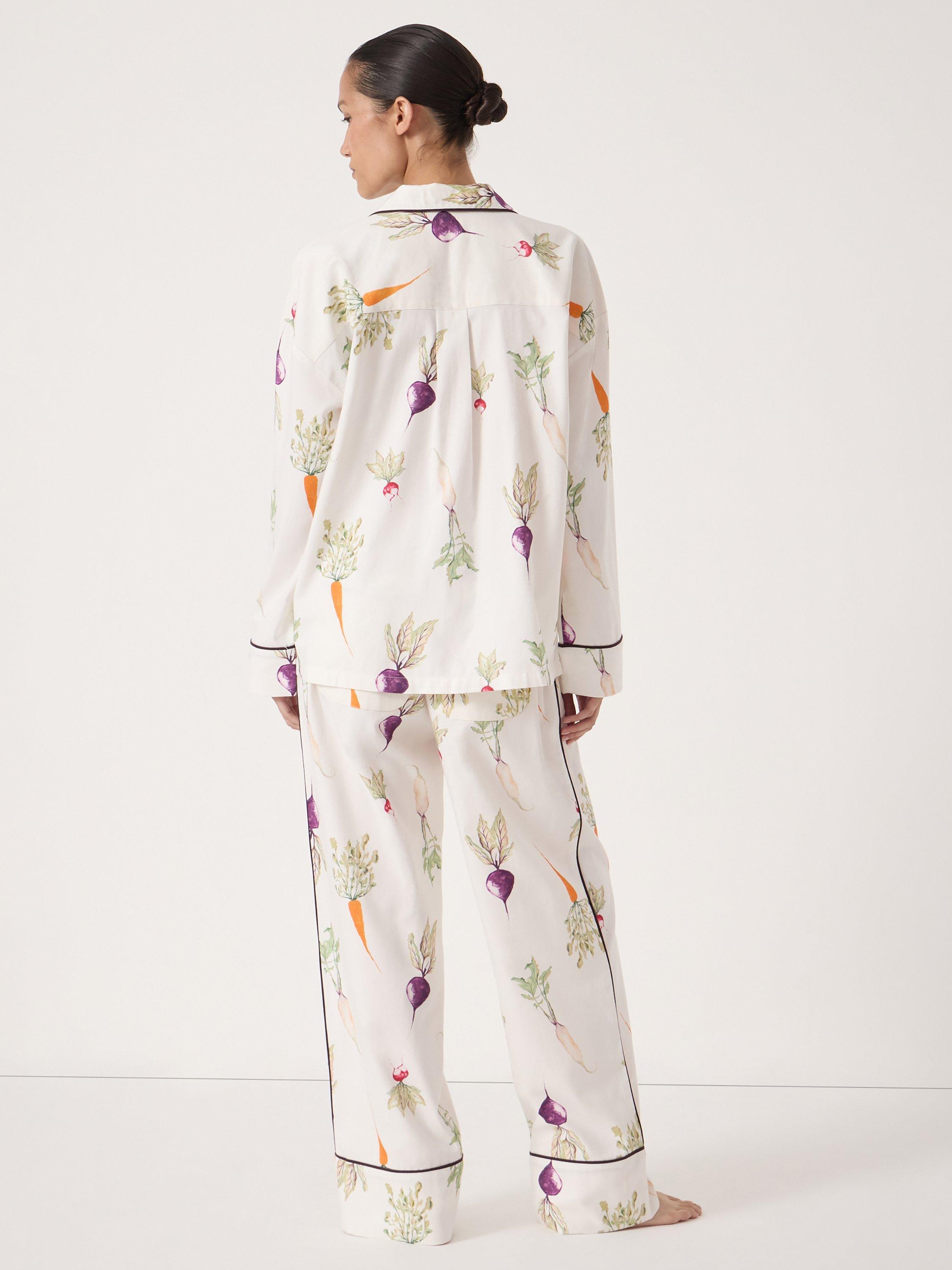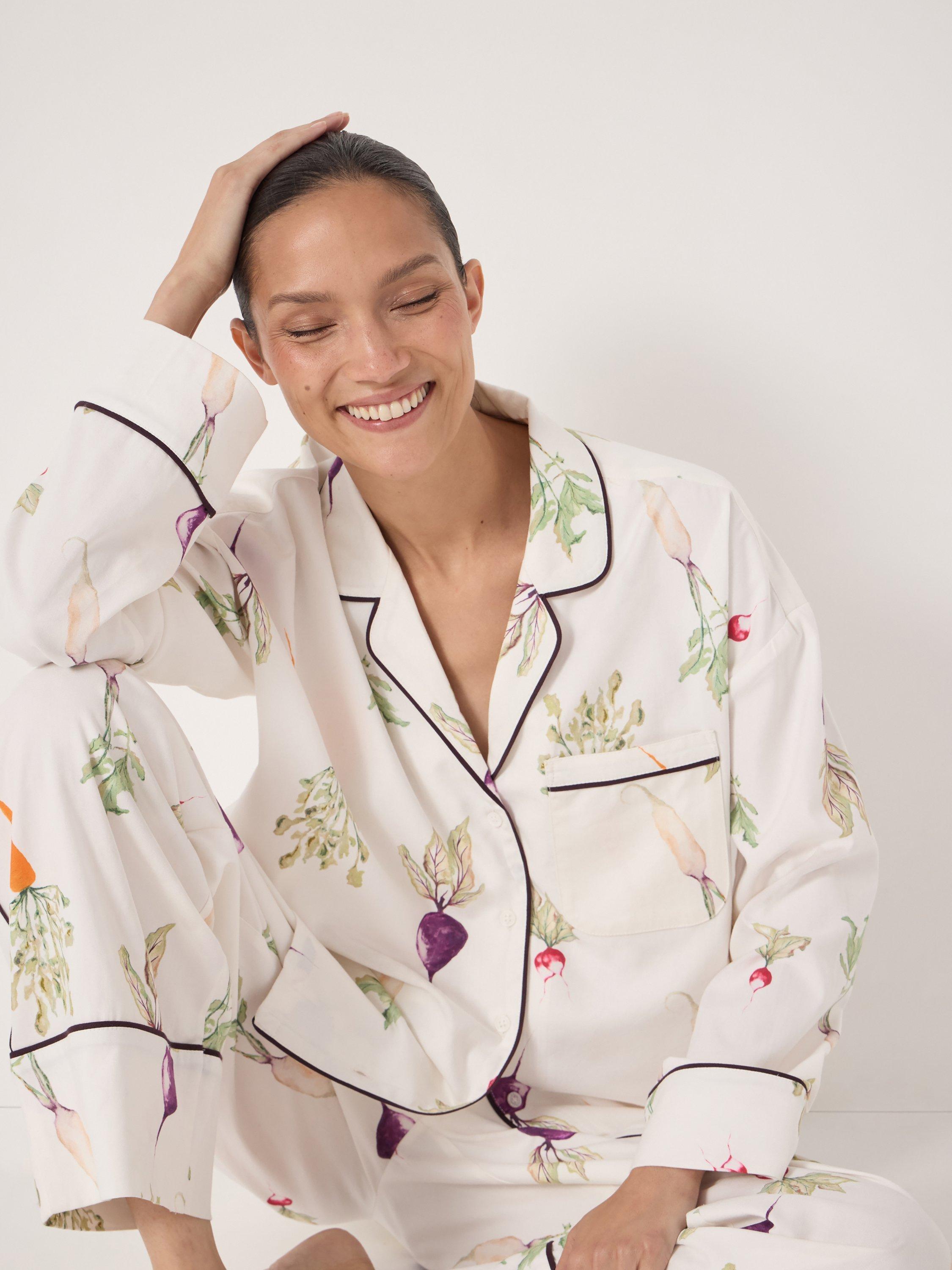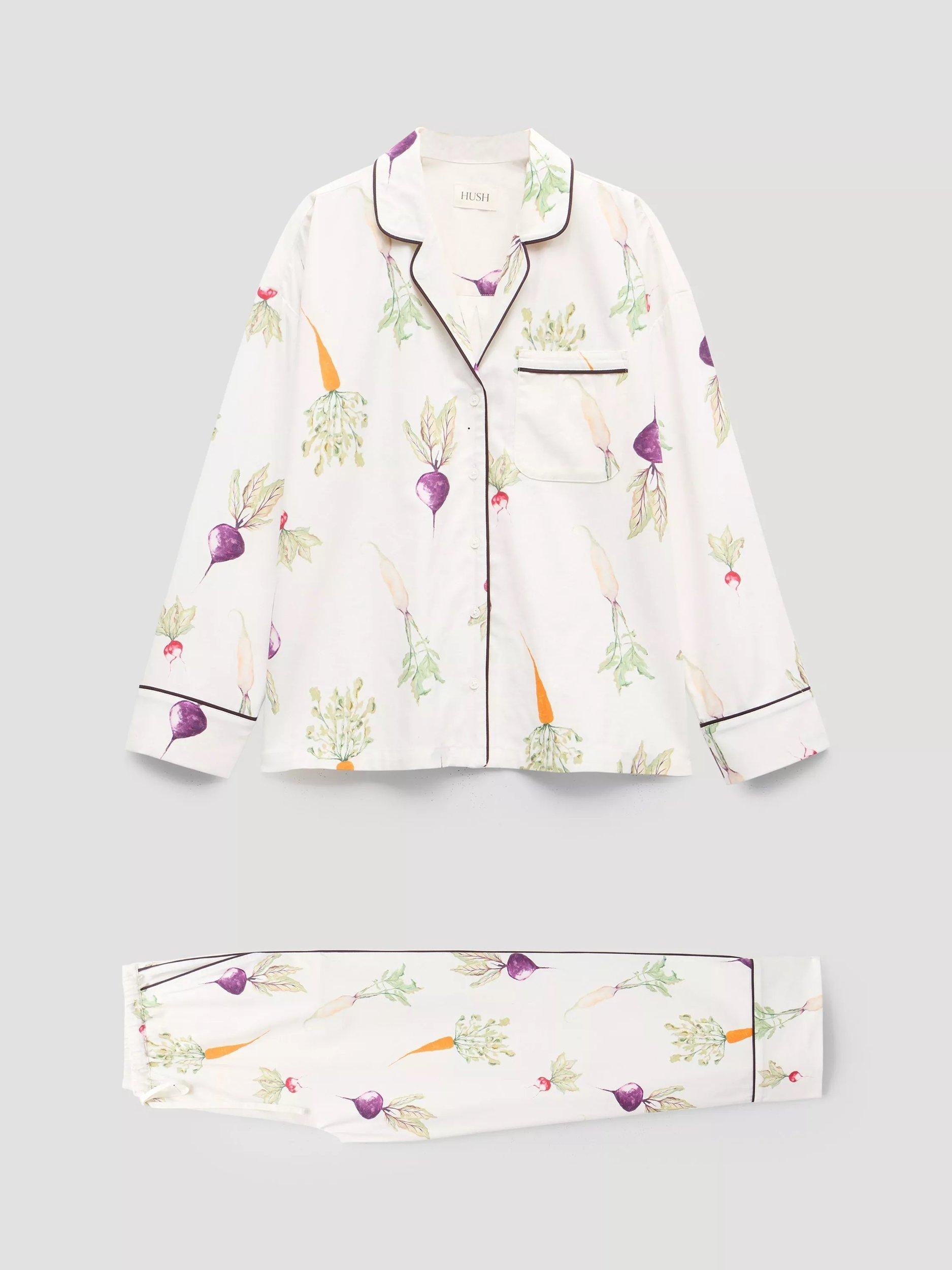 Covered in your favourite veg, this button-through pyjama set by HUSH ensures optimum comfort with its soft cotton blend. Comes complete with matching bottoms and contrast piped trims.