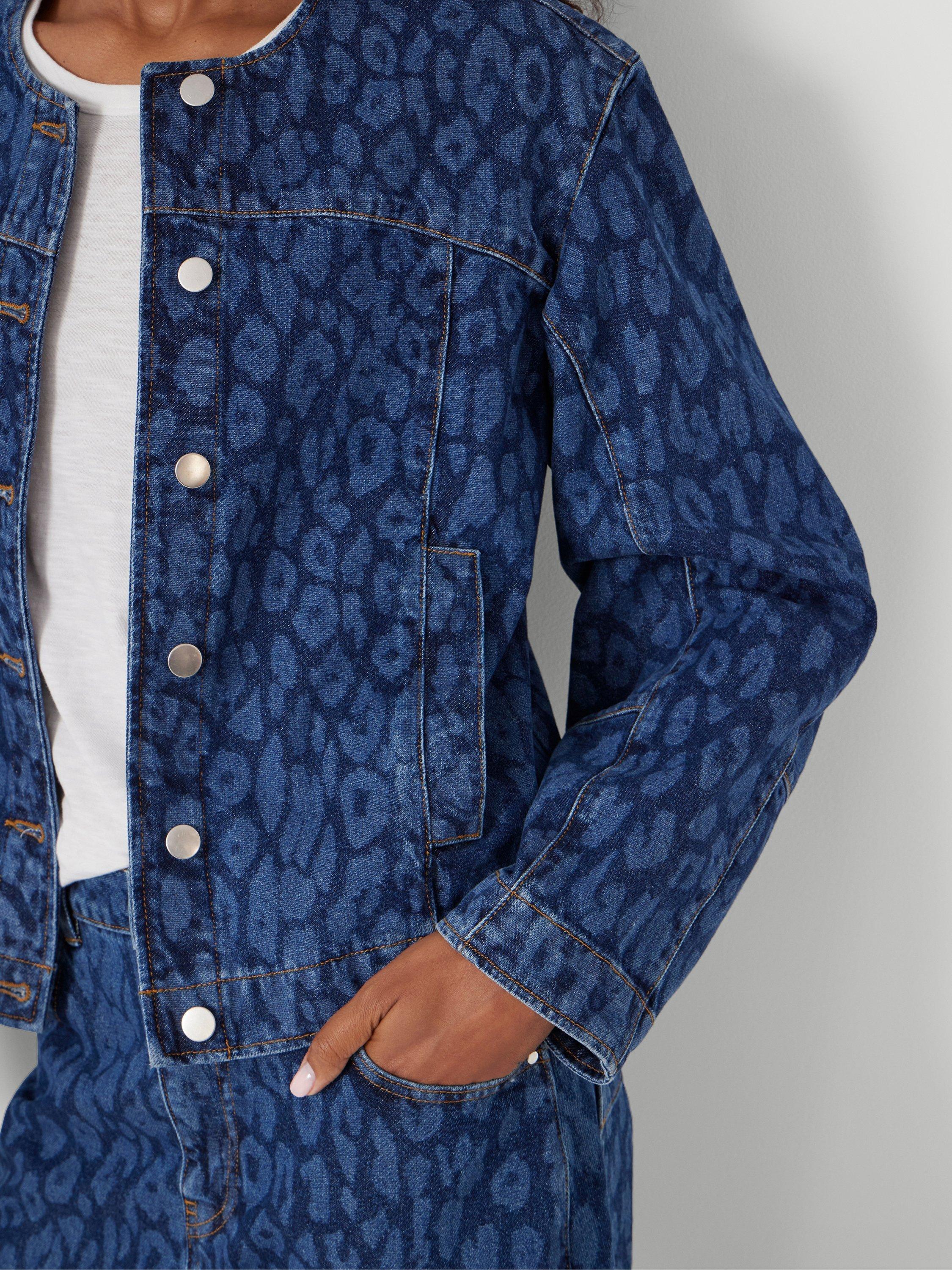 This denim jacket sparks conversation wherever you go. The leopard print adds a fun twist, while soft cotton-denim keeps you comfortable through every plan on your day.
