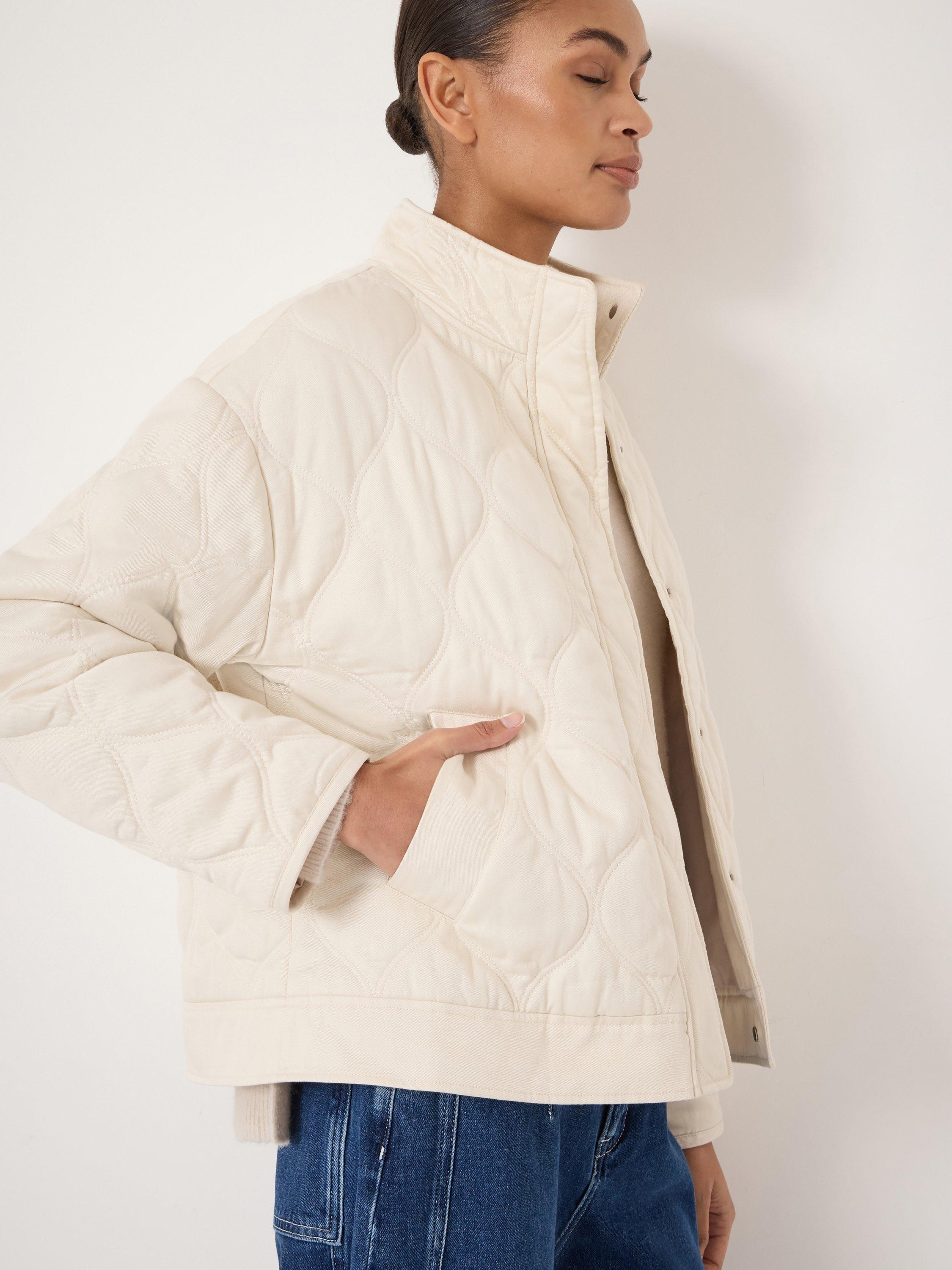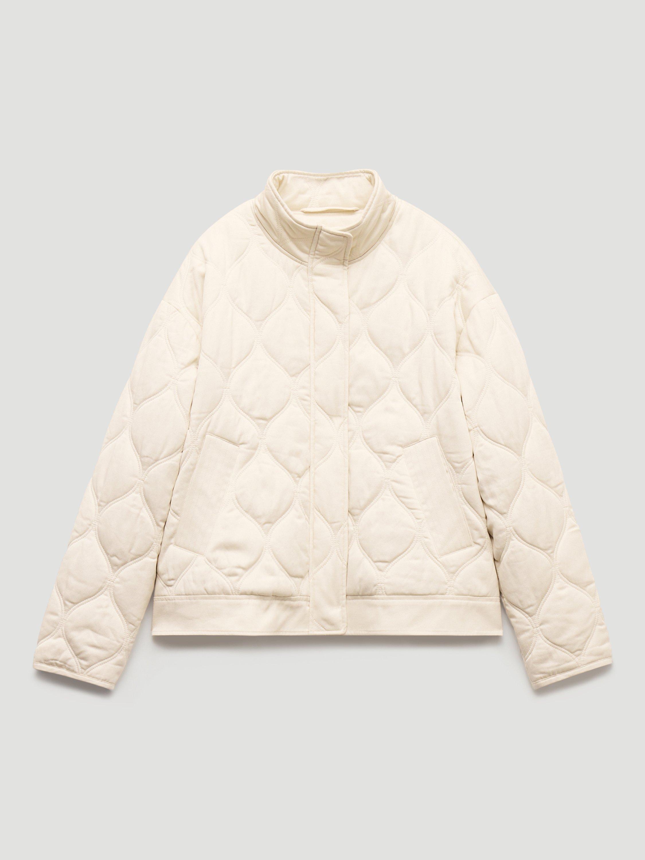 In a soft cotton blend, this quilted jacket offers a regular fit, high neck, and textured finish, making it easy to style and practical for layering.