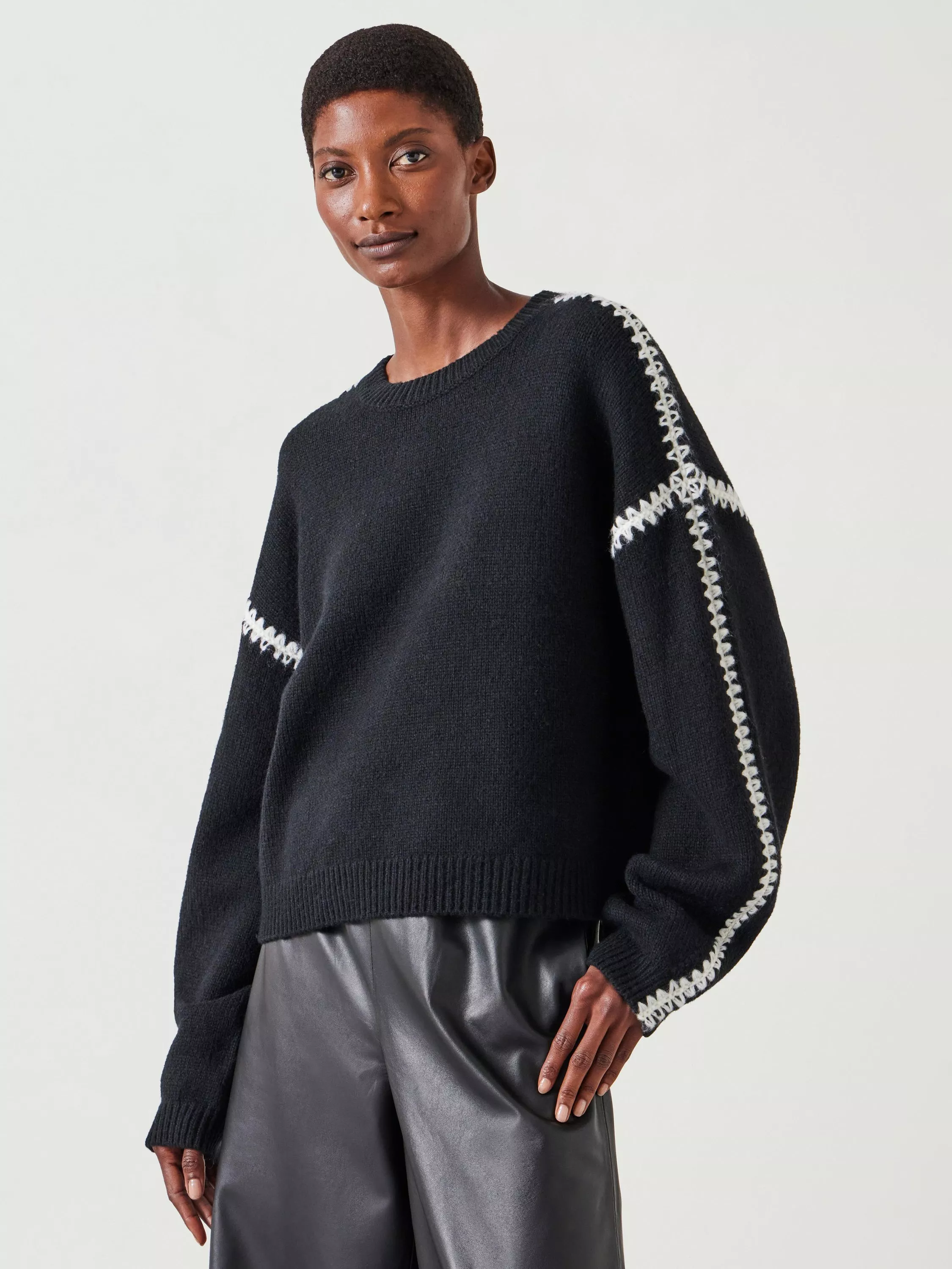 HUSH's contrast stitch detailing is always a crowd-pleaser, so we're predicting their Whitney jumper won't hang around for long. It's made in a luxe wool blend and we've gone for an oversized fit that feels laid-back and relaxed. Tuck it into leather trousers for a cool contrast in textures.
