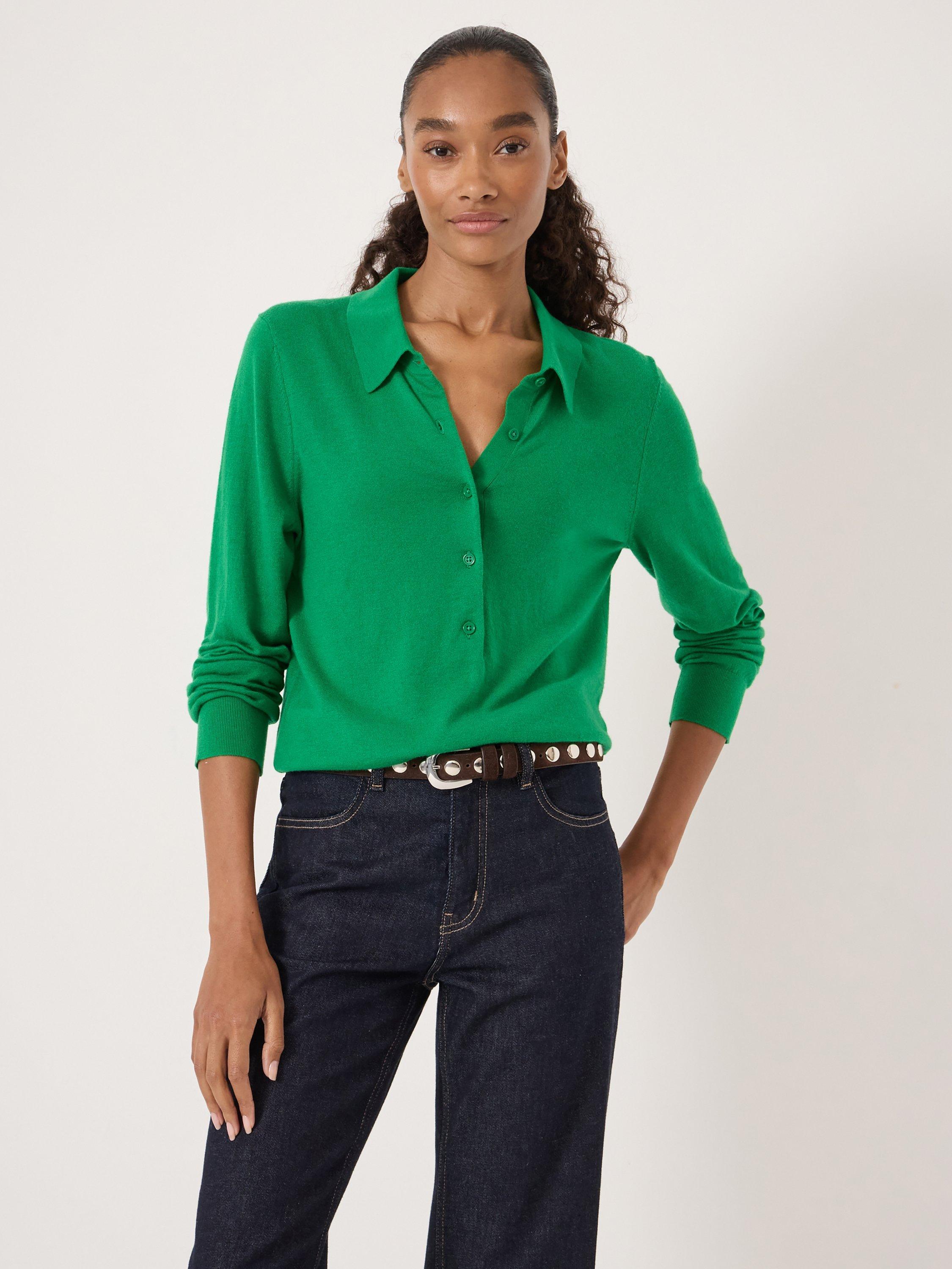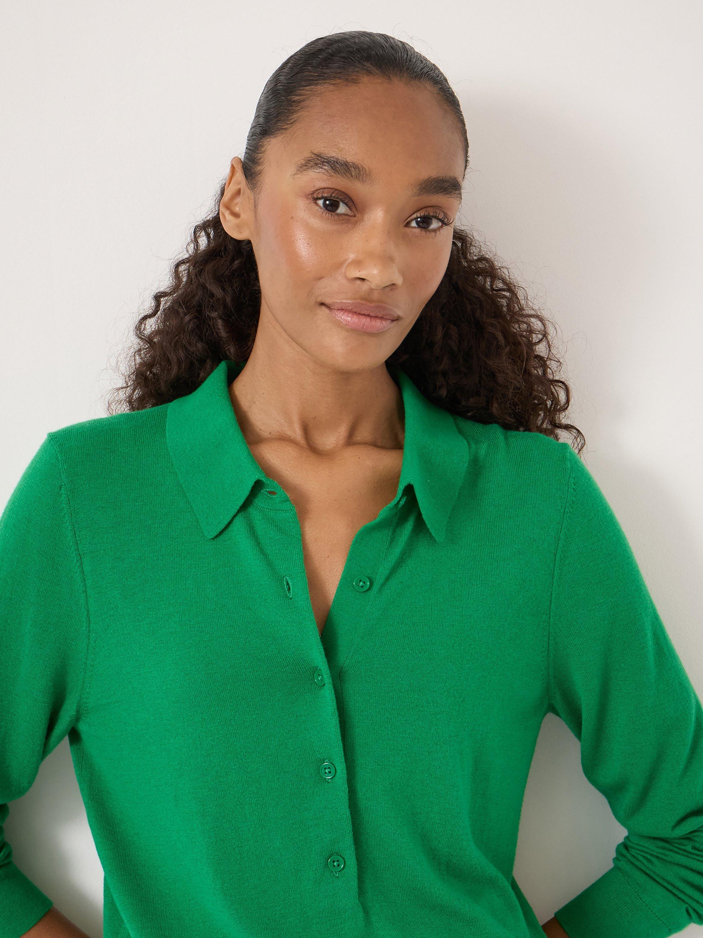 Ready to swap bulky knits for something a touch lighter? The shift in seasons is coming, and while we're not ready to ditch the layers just yet, we're leaning into pieces we can wear now and later, like this long-sleeved polo top. It's made with a merino wool blend, but the button-front and collar give us the option of wearing it open.