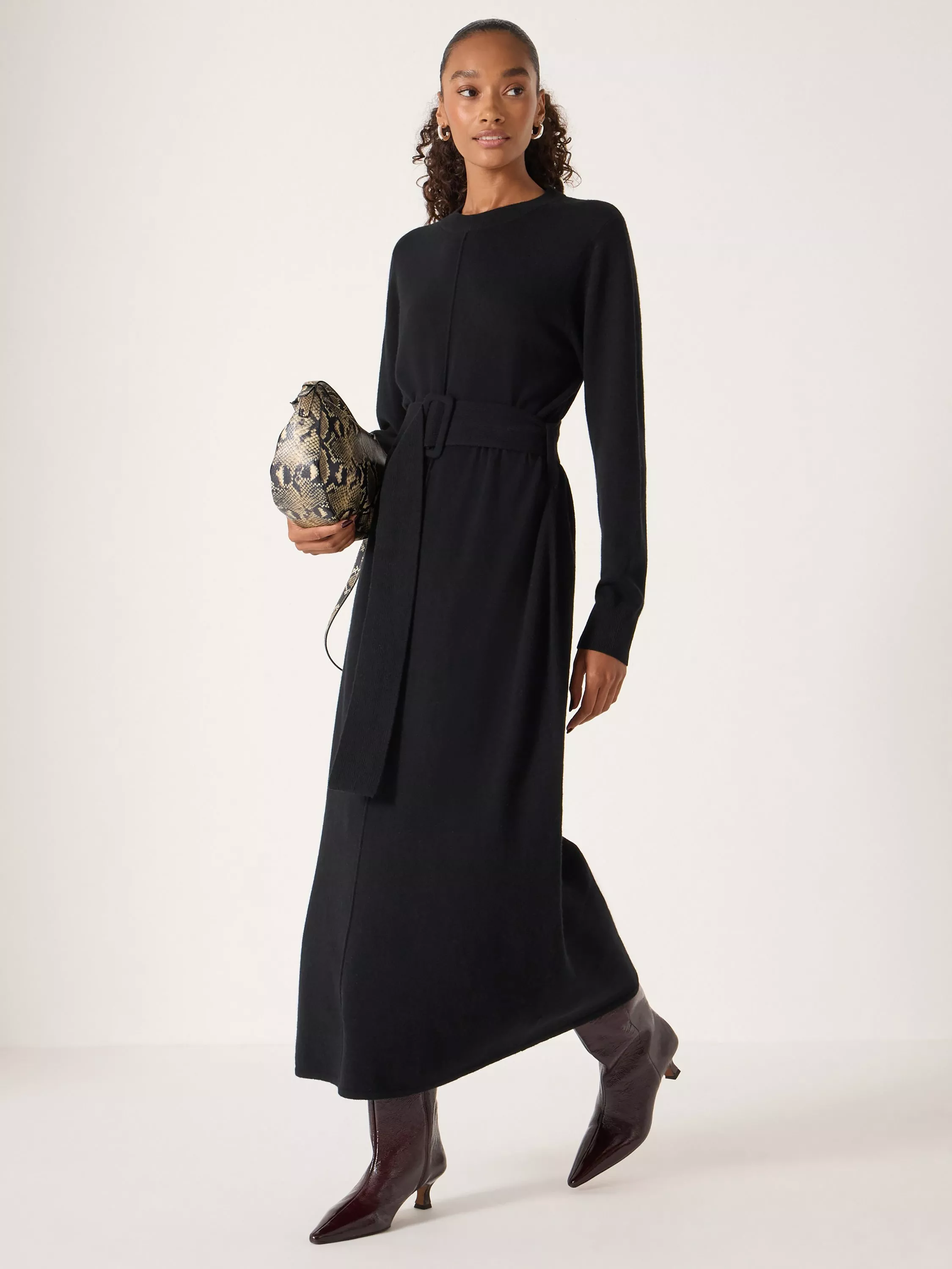 This midi dress from HUSH is spun from merino wool for a luxuriously warm fit. Framed with a simple round neck and long sleeves, it is finished with a buckle around the waist to draw in your silhouette.
