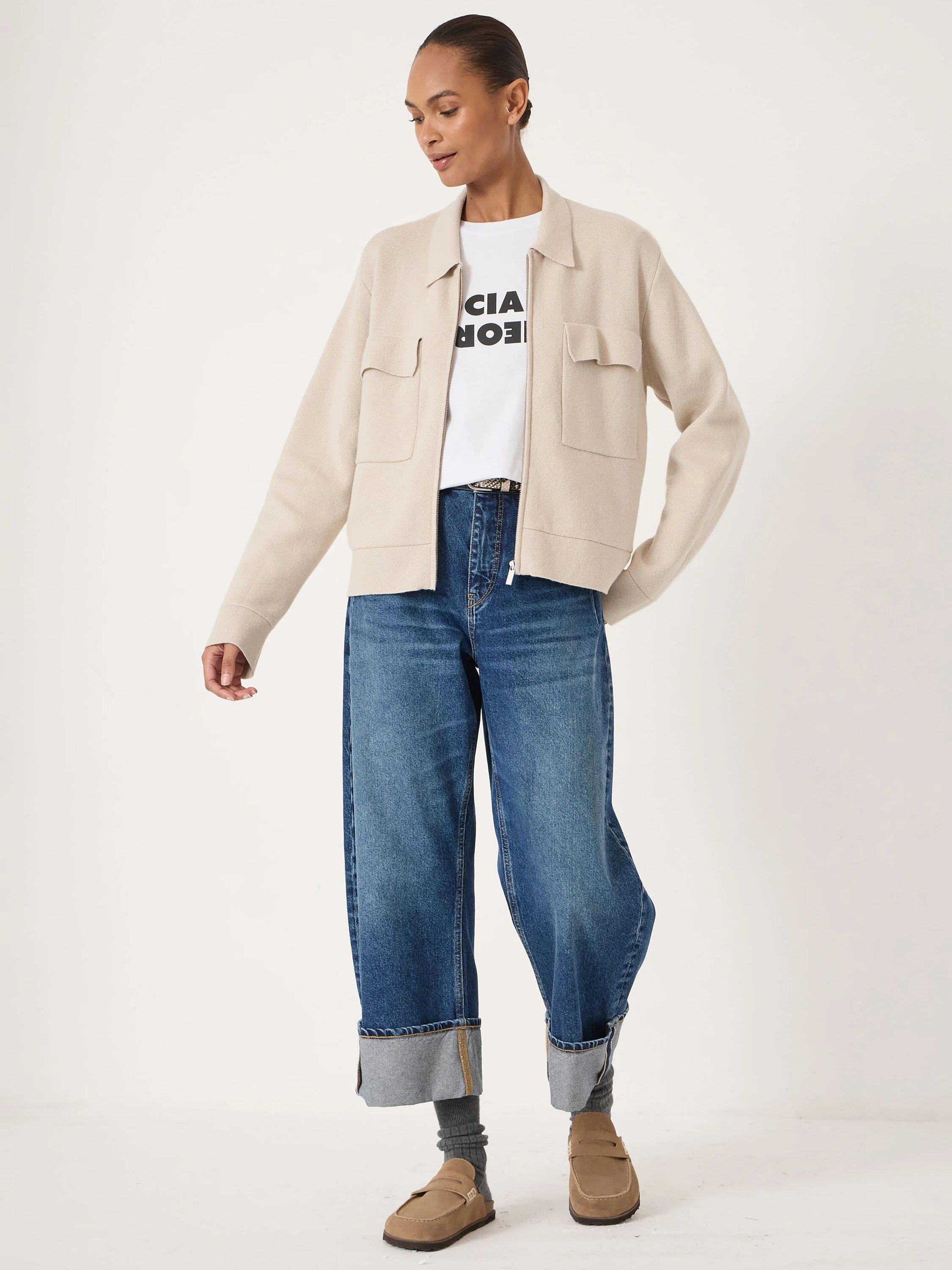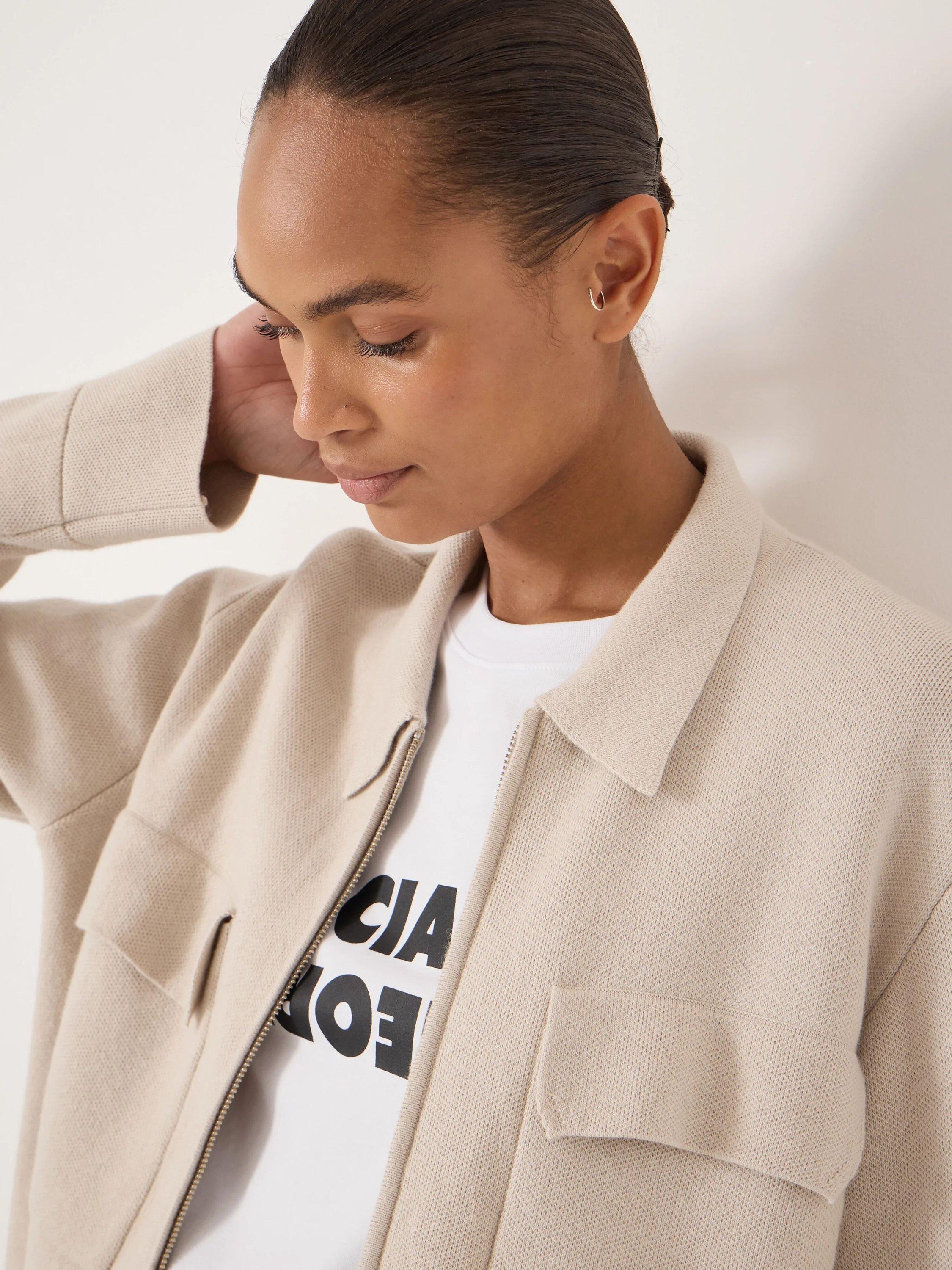 We can't decide which way we like to style this cardigan more – zipped up or left open? Zipped gives it a touch more polish, and the look of an unstructured jacket. Open means we get to show off whatever we're wearing underneath (graphic tees are a great addition, by the way). It's got a lovely relaxed fit so it never feels too 'done up'.