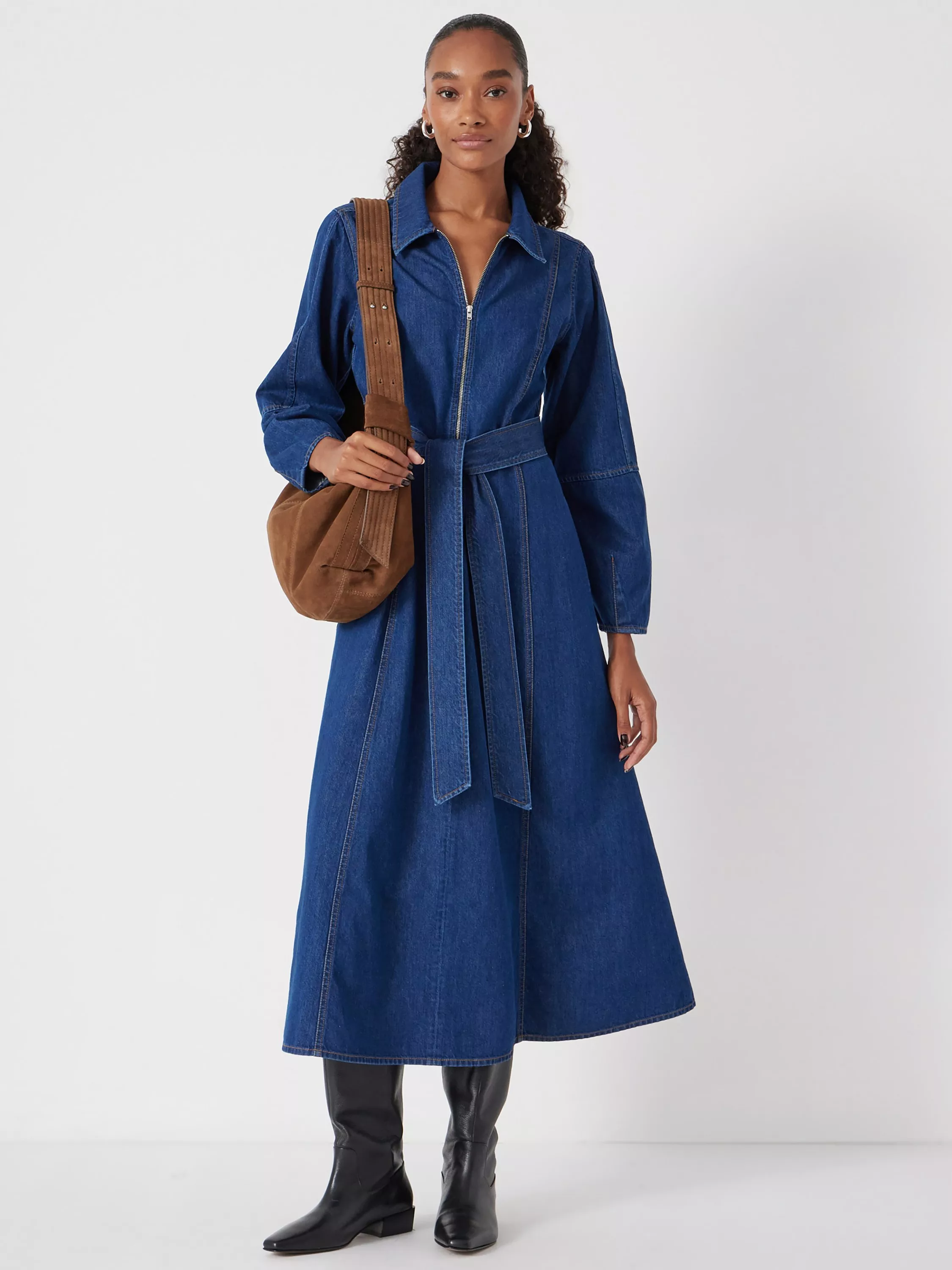 This zip midi shirt dress combines crisp cotton with a classic collar and long sleeves, offering comfort and ease for your busiest days. Its clever A-line cut enhances movement, ensuring you feel confident and at ease wherever you go.
