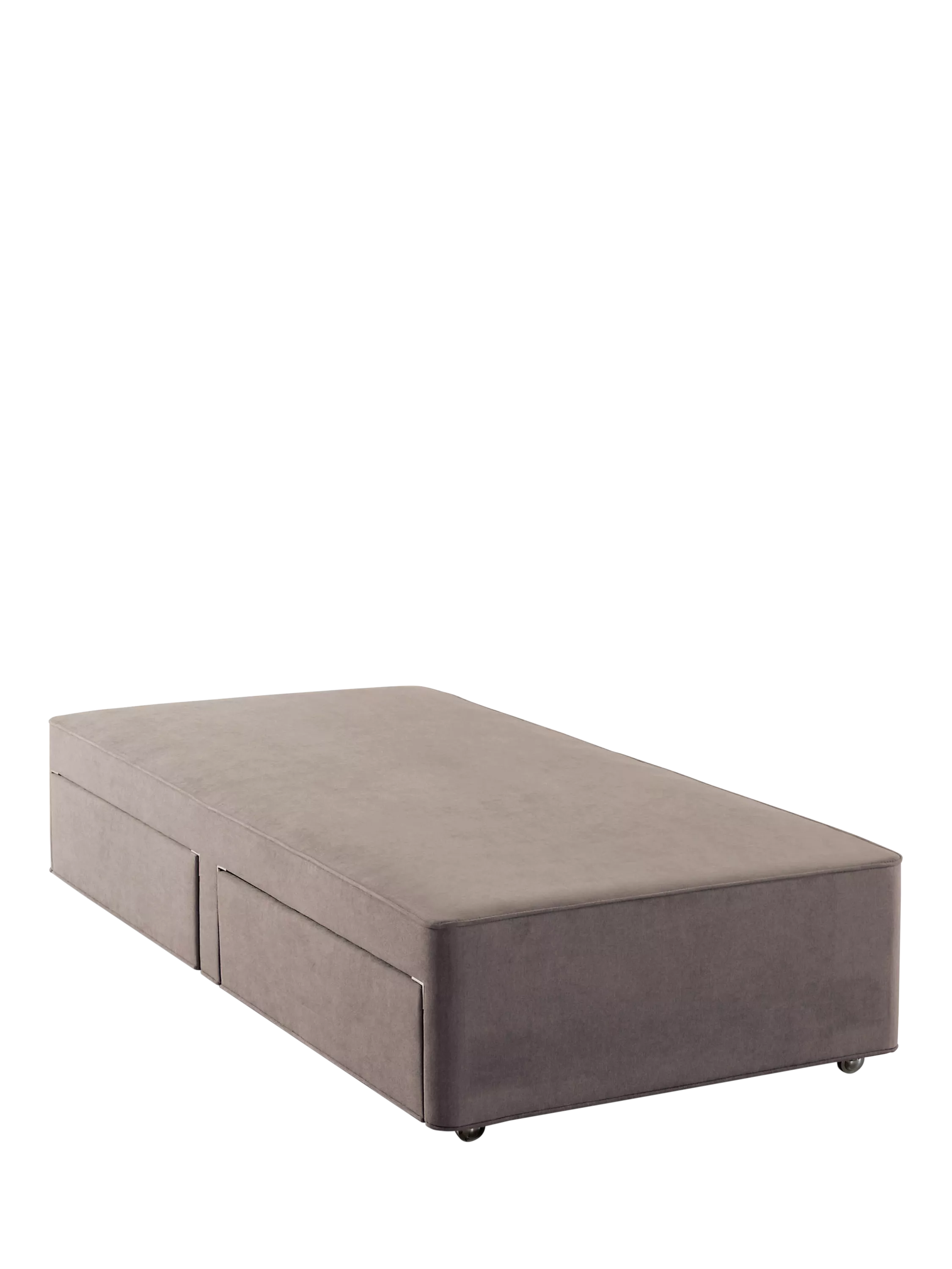 A high quality divan base offers an important foundation, it can affect the feel, performance and longevity of your mattress. This elegant piece of furniture is handcrafted from FSC® timber and then upholstered, its sprung top works in harmony with your mattress to provide a medium feel. Two hidden storage drawers offer a clever solution to save space, creating a restful and clutter-free sleeping space. Finished with stylish yet practical metal castors.