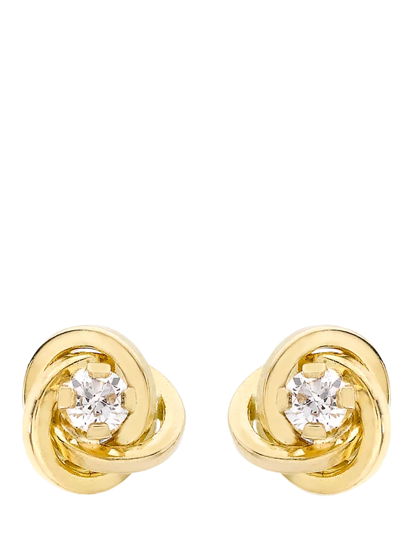 IBB18ct Gold Cubic Zirconia Knot Stud Earrings, Gold