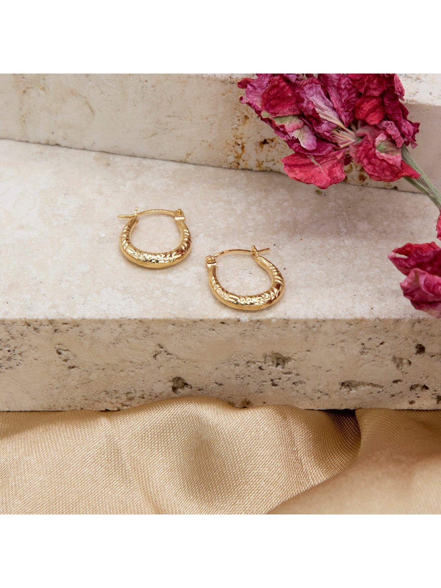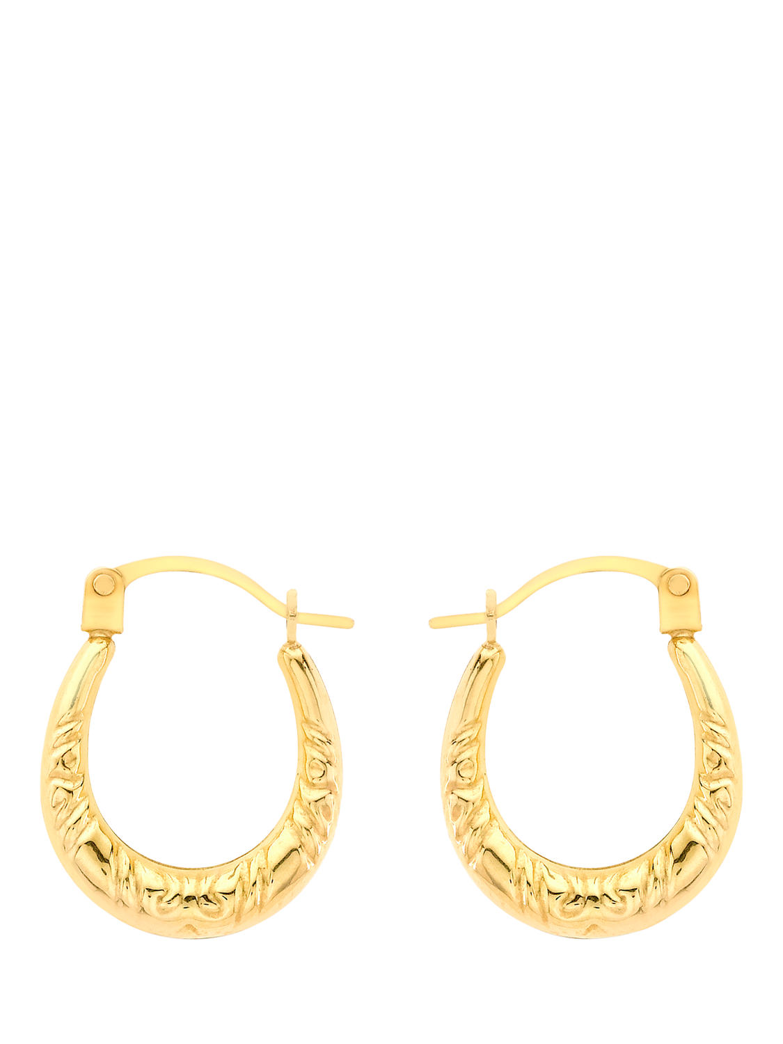 IBB18ct Gold Patterned Oval Hoop Earrings, Gold