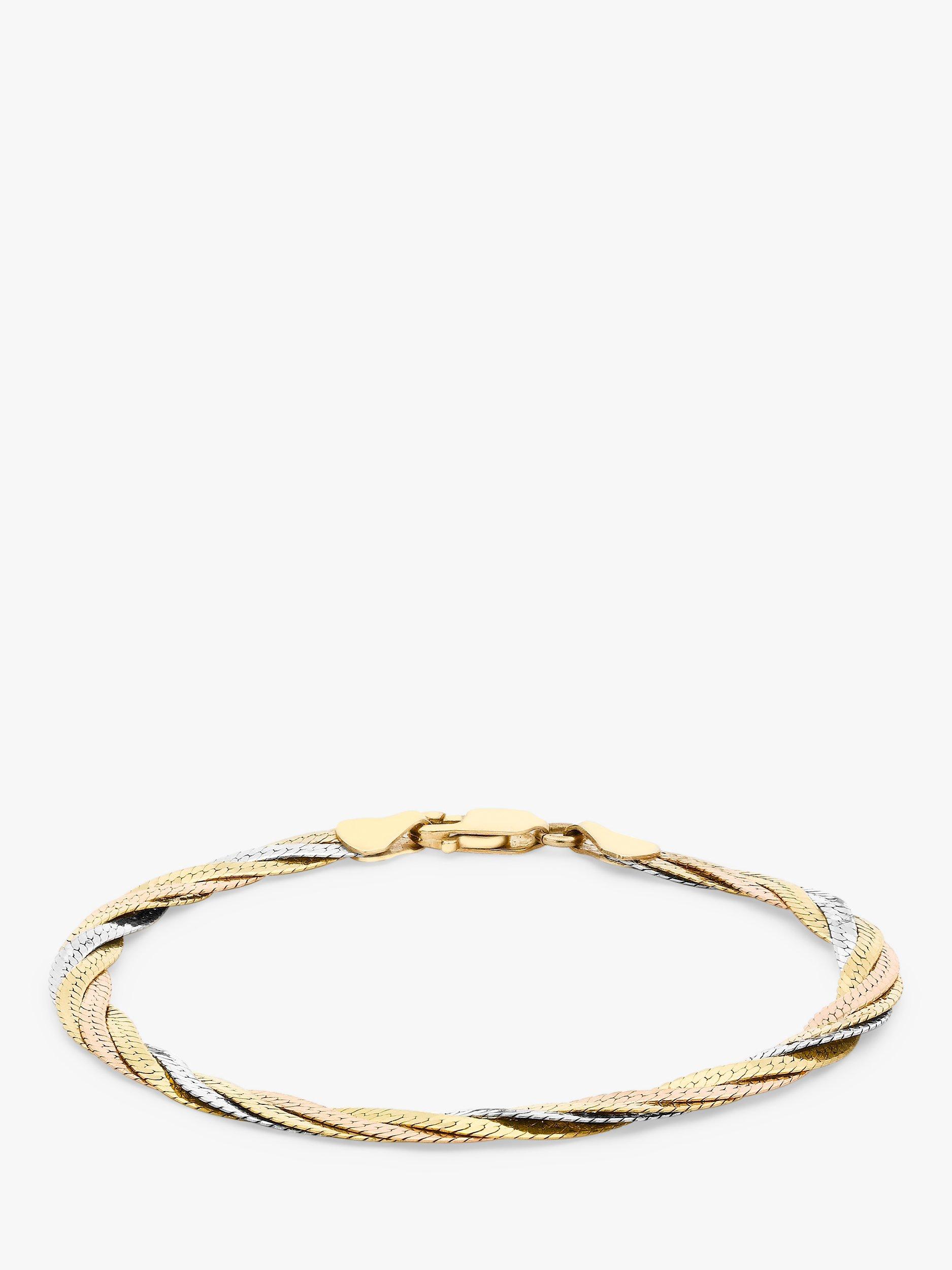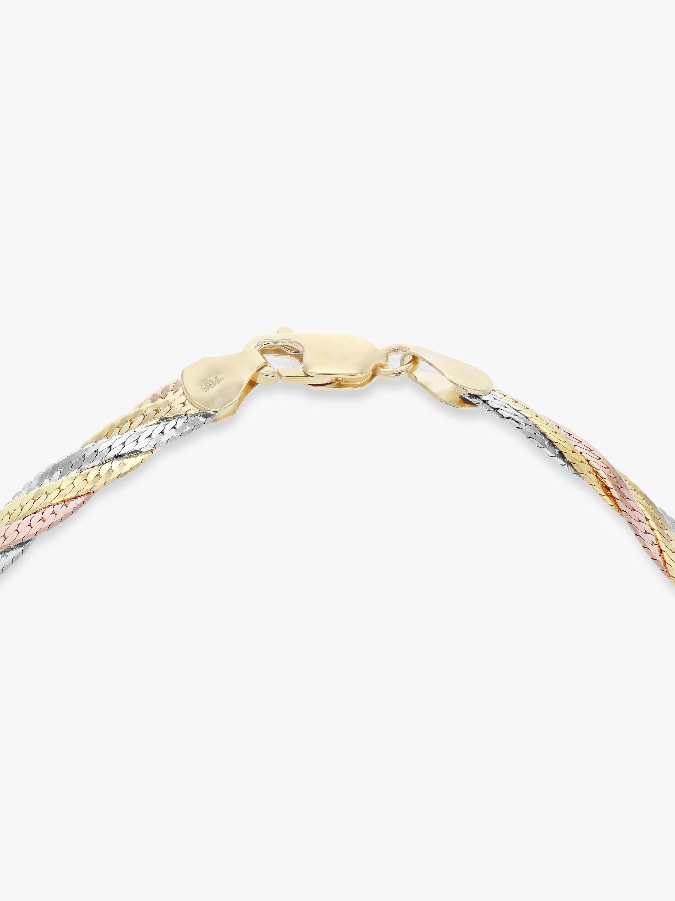 IBB18ct Gold Tri-colour Herringbone Chain Bracelet, Multi