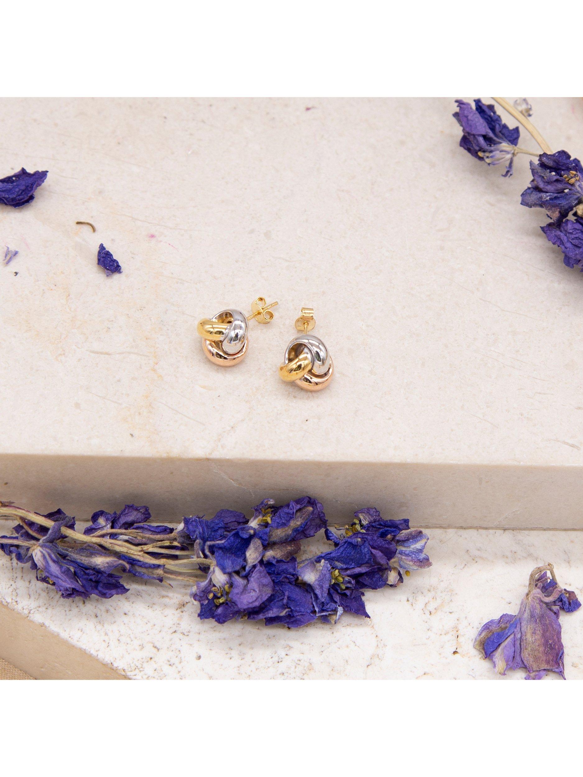 IBB18ct Gold Tri-Colour Triple Knot Stud Earrings, Multi