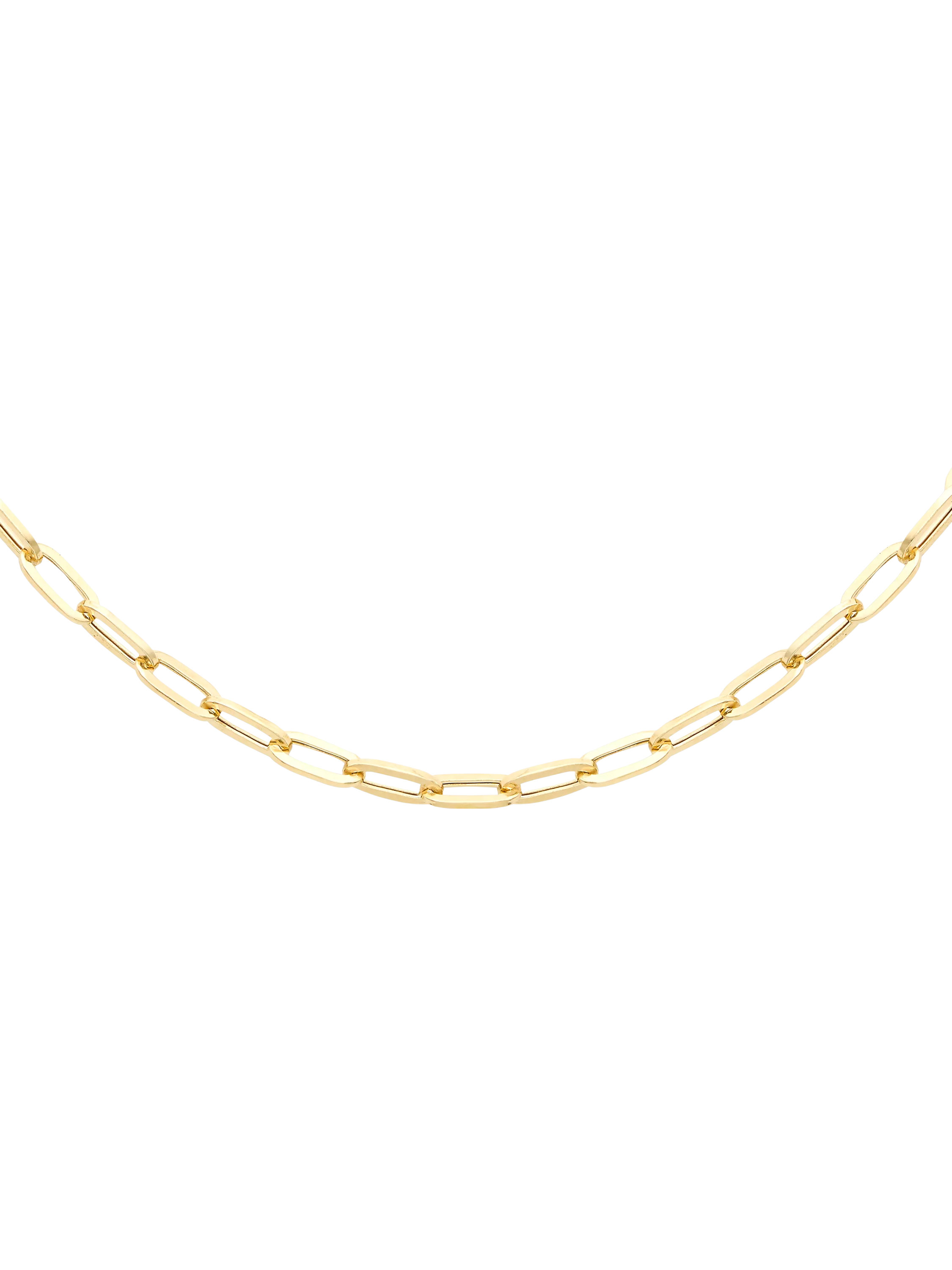 Simple and elegant, this paperclip chain necklace is made from 18ct yellow gold for a quality piece that will last through generations.