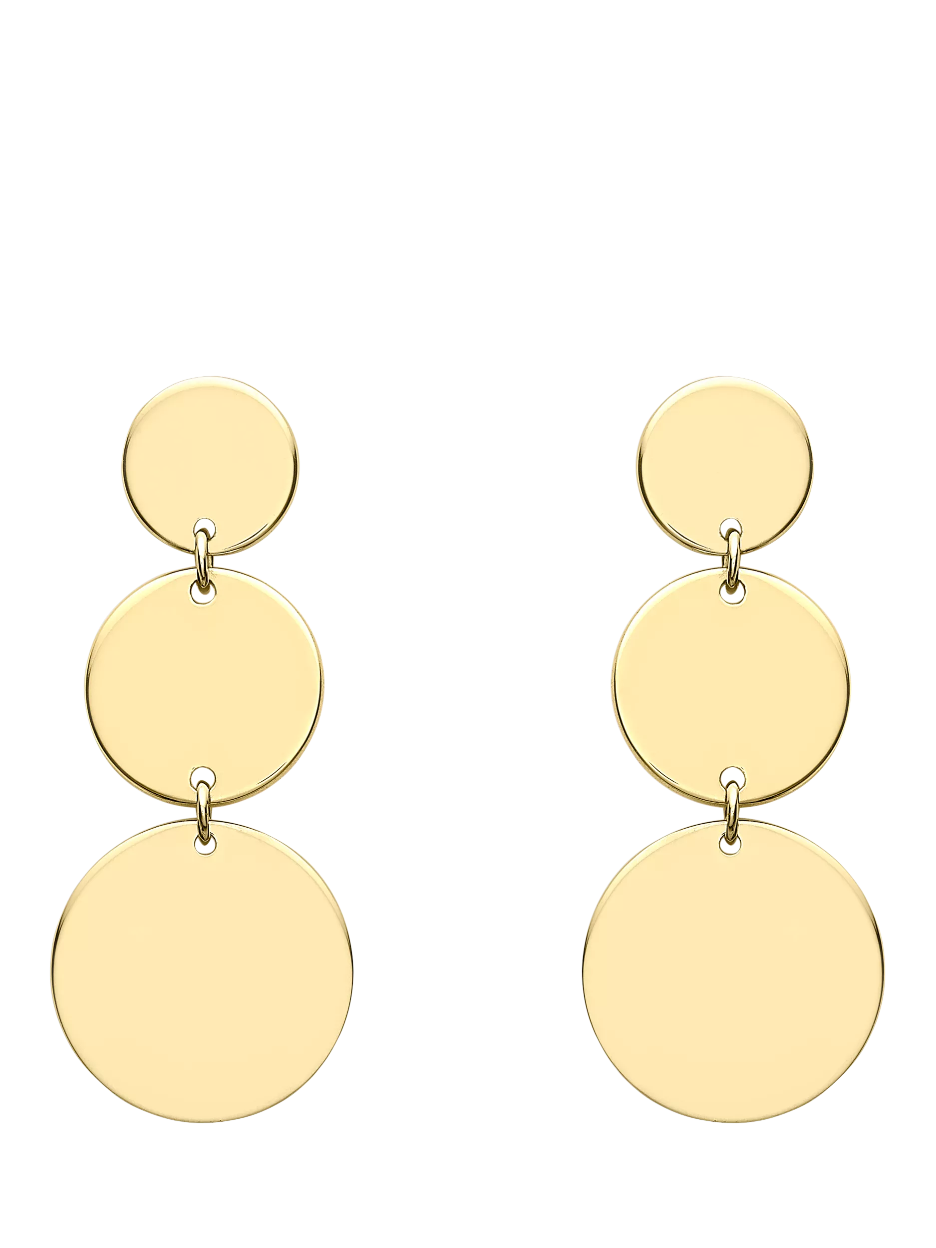 IBB9ct Gold 3 Graduated Disc Drop Earrings, Gold
