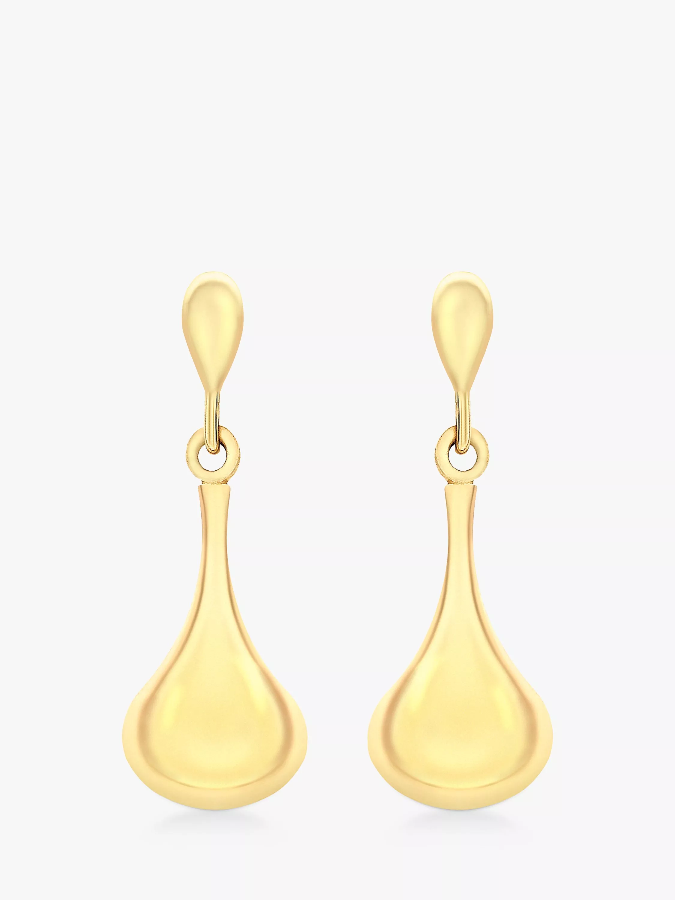 Flowing elegant lines dominate these bell drop earrings. From the post fitting, a curving piece of 9ct yellow gold gently swings down.