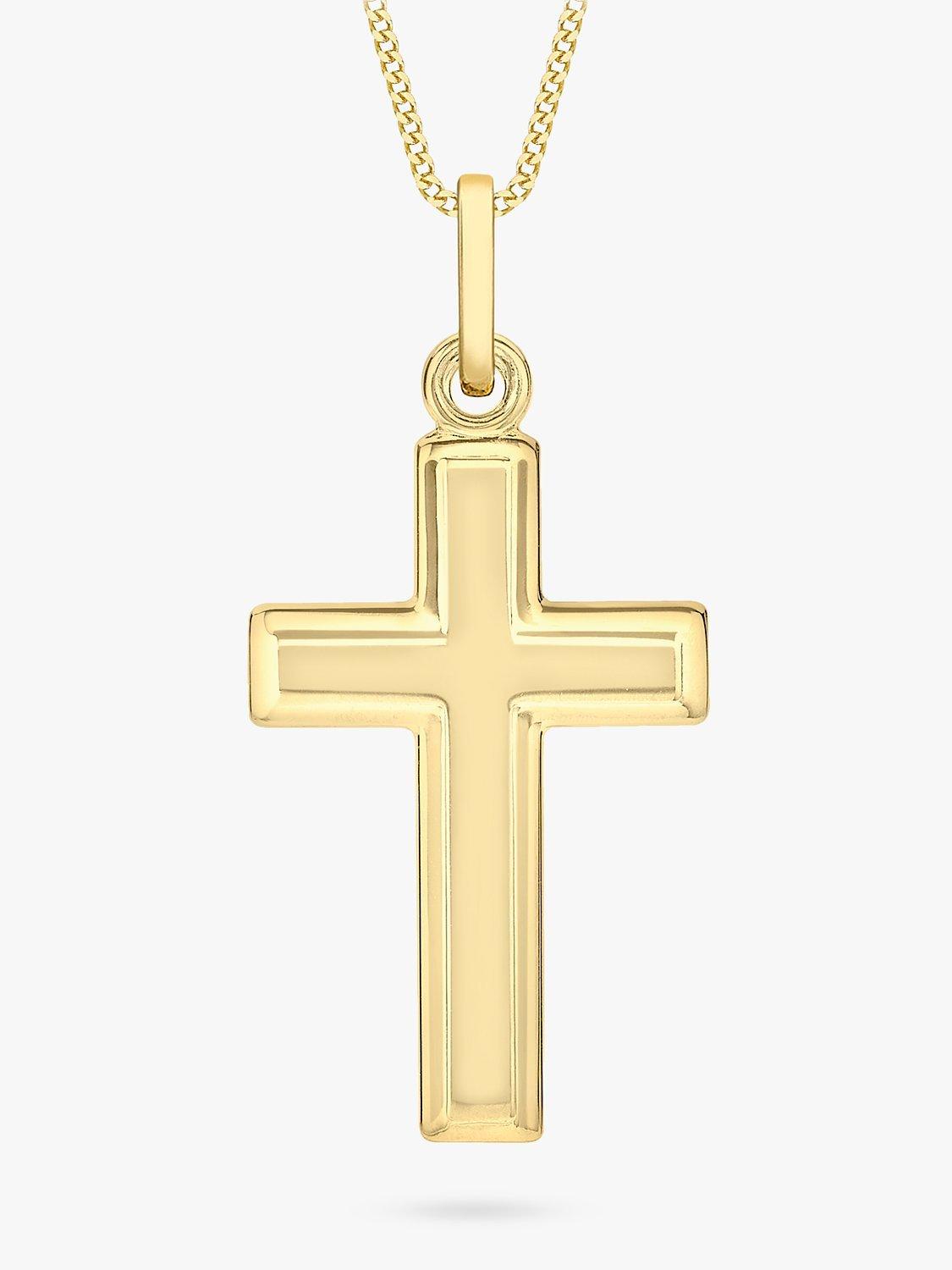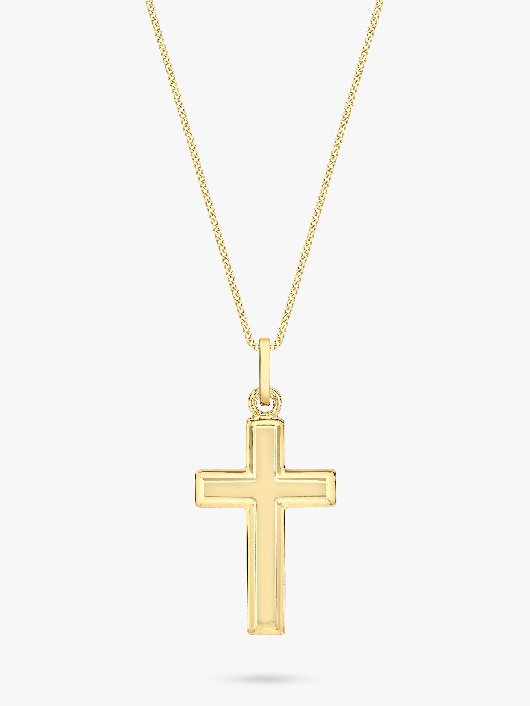 Show your beliefs with style with this pendant necklace from IBB. The simple cross design is crafted from 9ct gold and hangs from a classic curb chain with a traditional spring-ring clasp. This style looks great on its own but can also be layered for a more complex look.