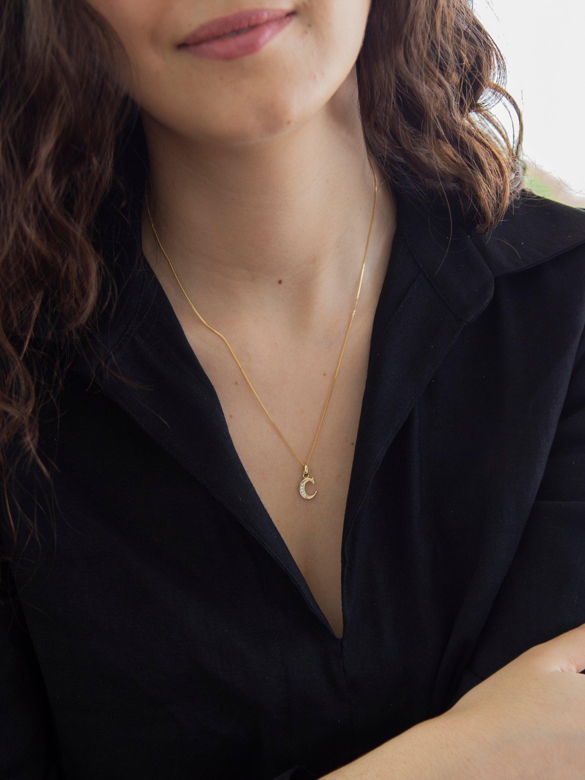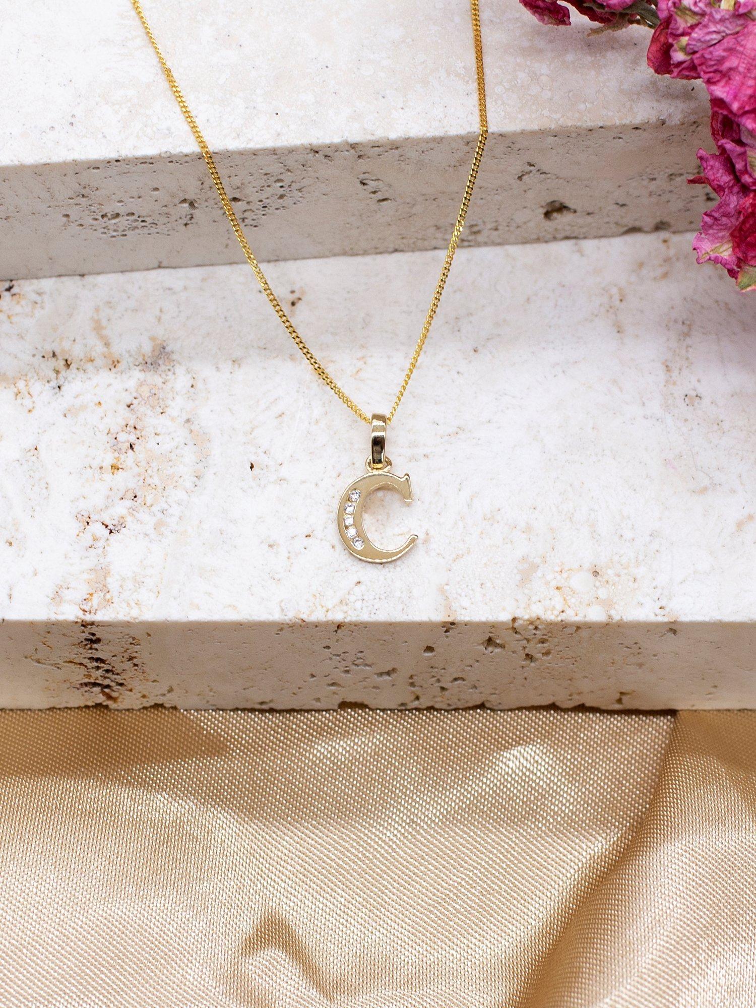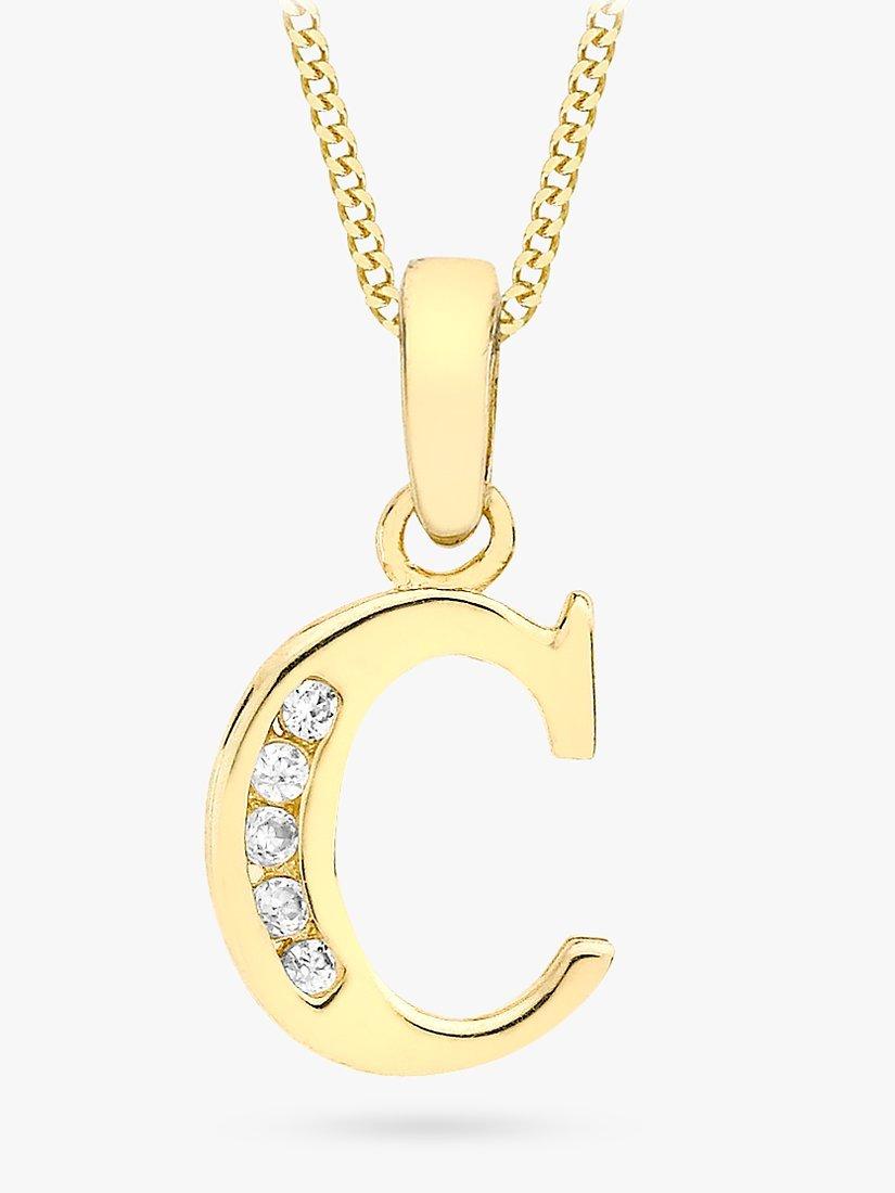 Crafted from 9ct gold and embellished with sparkling cubic zirconia crystals this luxurious initial pendant necklace signed IBB is a completed with a 9ct gold 25 diamond-cut curb chain.