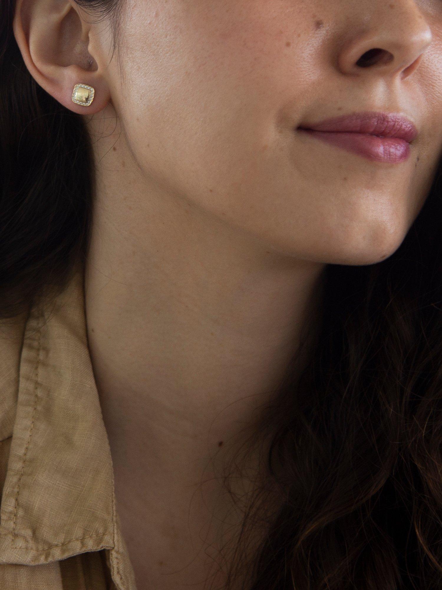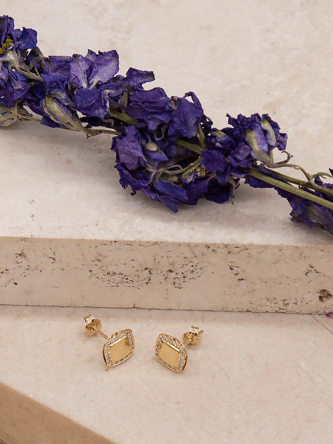 Bring sparkles to classic shapes with these square stud earrings by IBB.