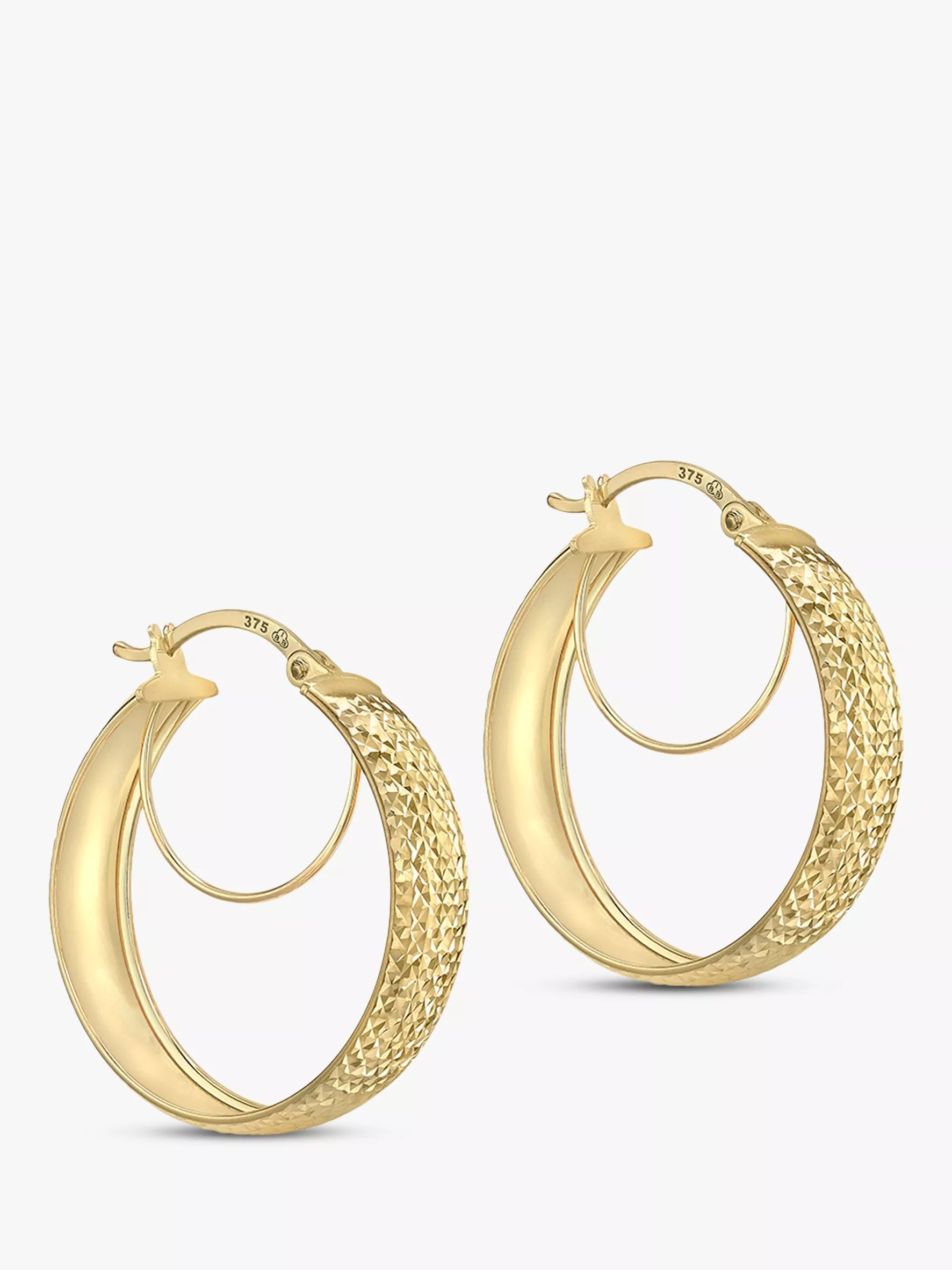 IBB9ct Gold Diamond Cut Double Hoop Creole Earrings