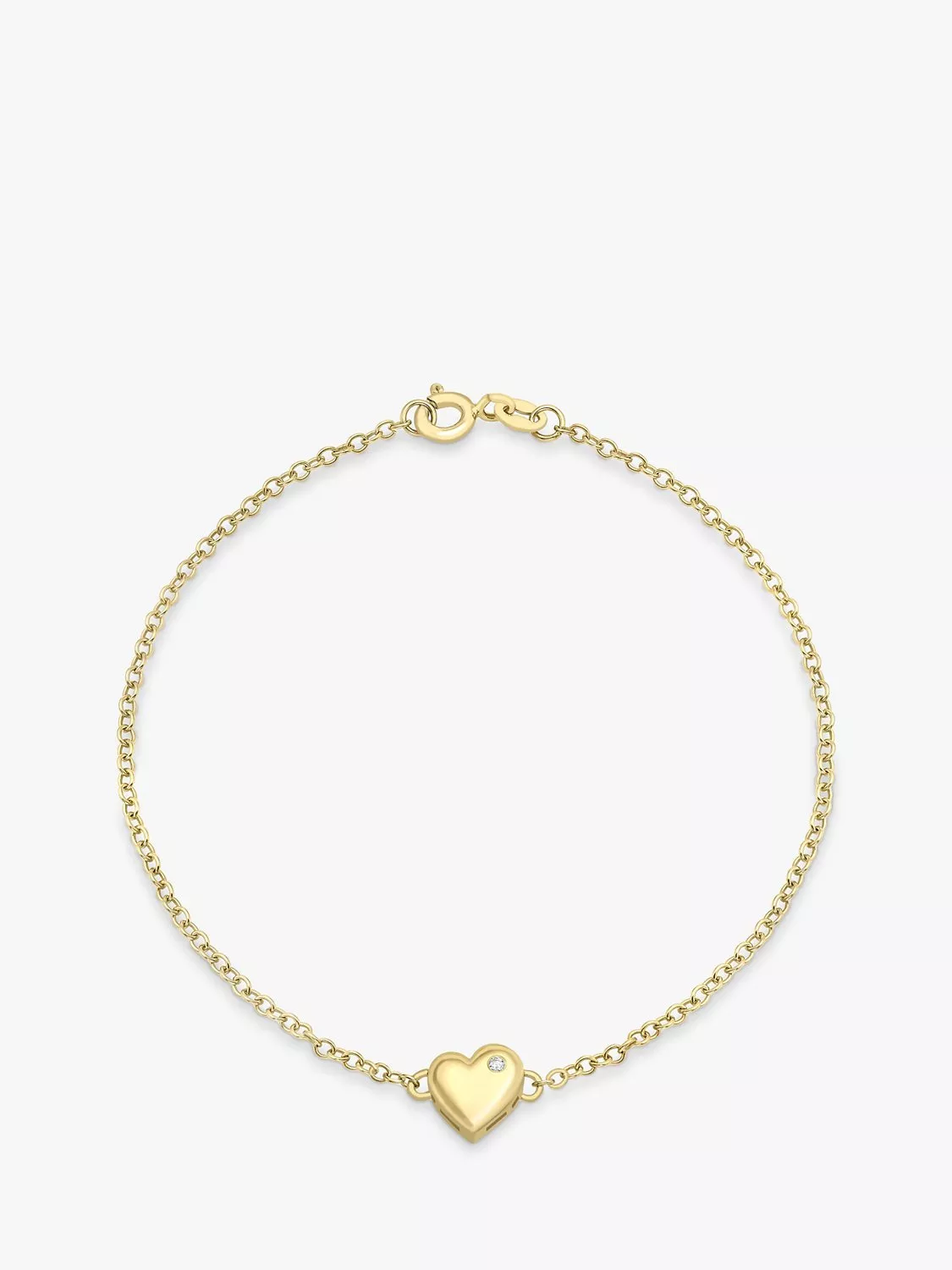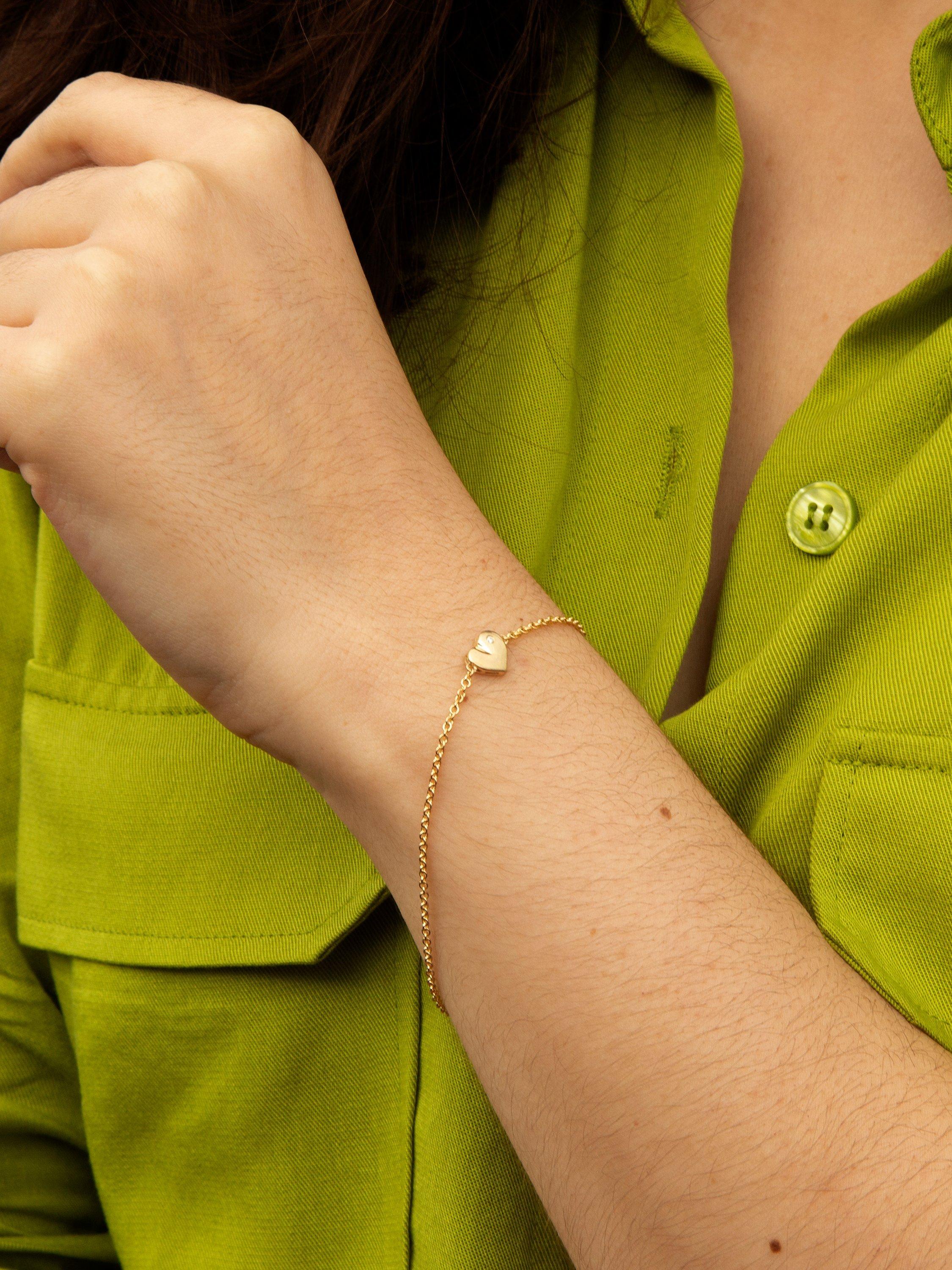 Pretty and feminine, this IBB bracelet offers a dimensional heart charm with a brilliant-cut solitaire diamond. The charm is presented on a fine rolo chain that will flatter your wrist.