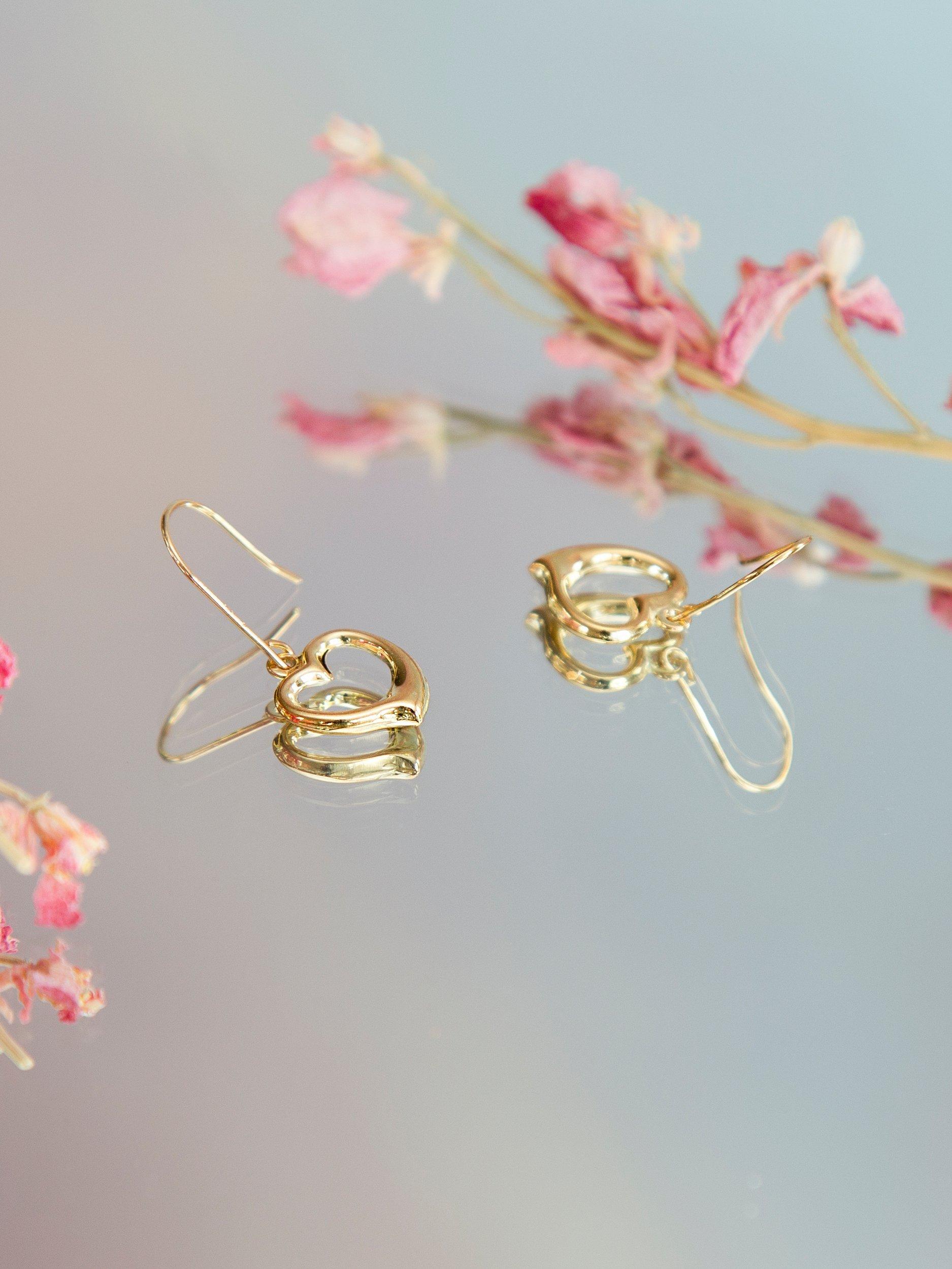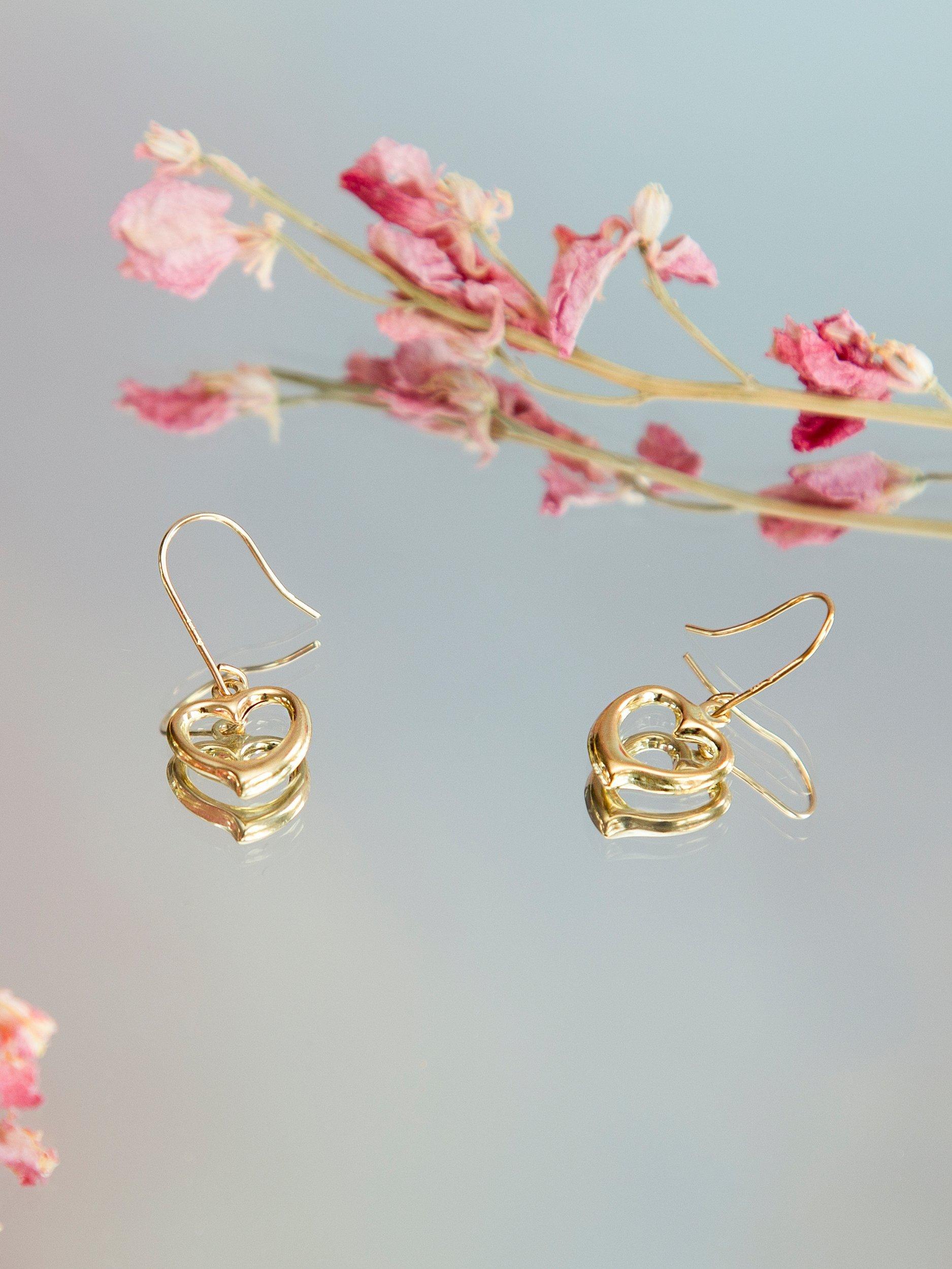 IBB9ct Gold Heart Drop Earrings, Gold