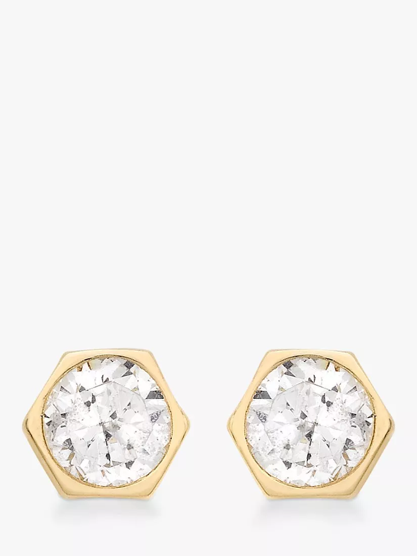These chic earrings have a contemporary hexagonal frame holding a sparkling cubic zirconia stone.