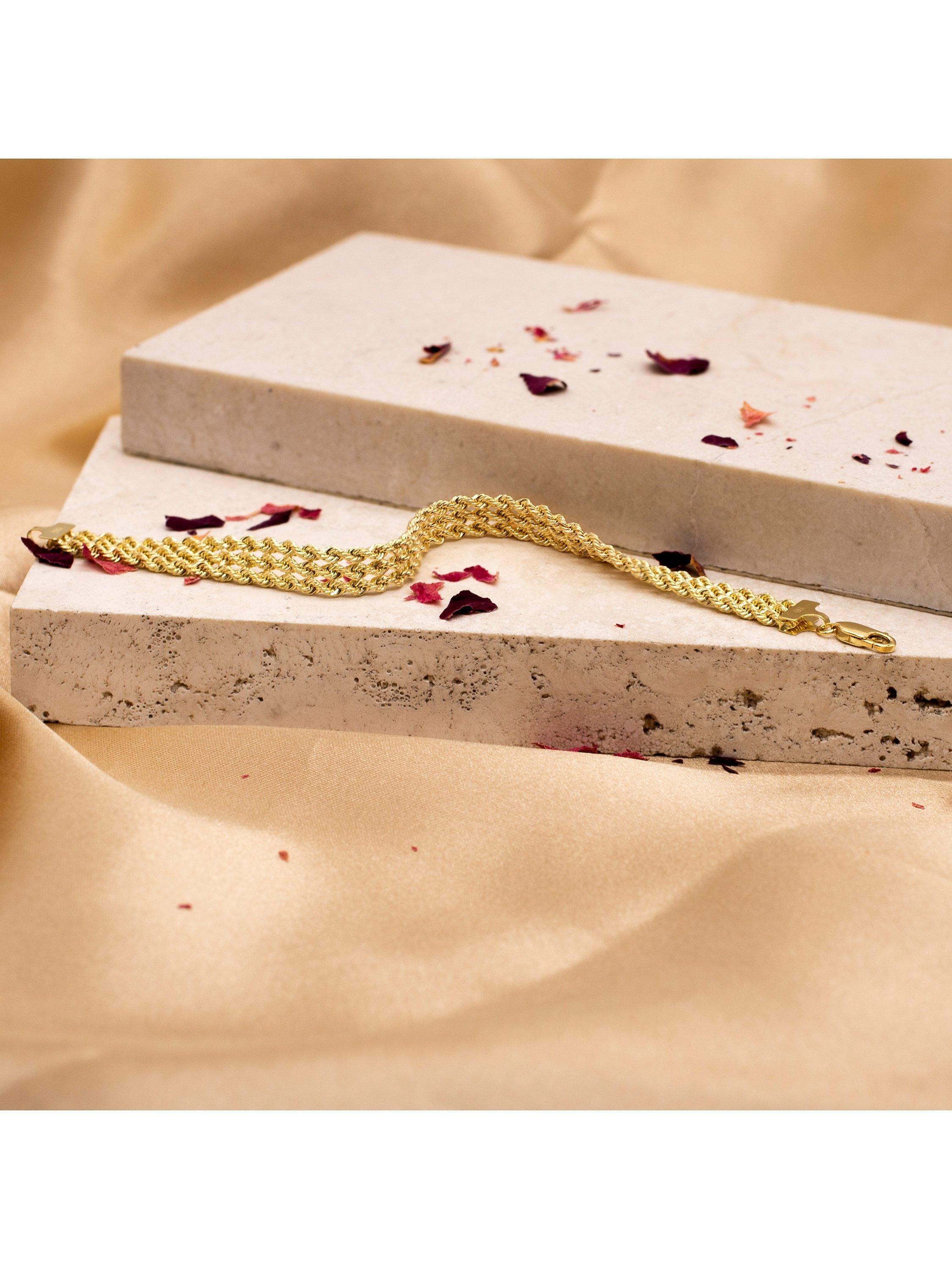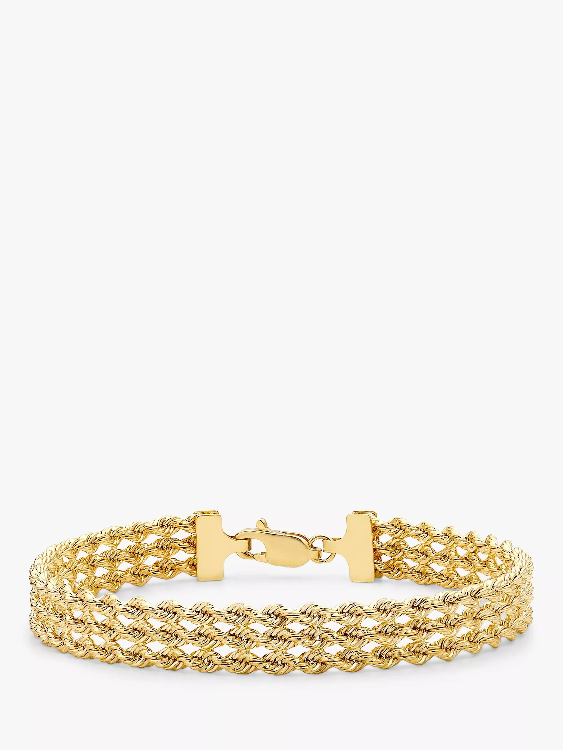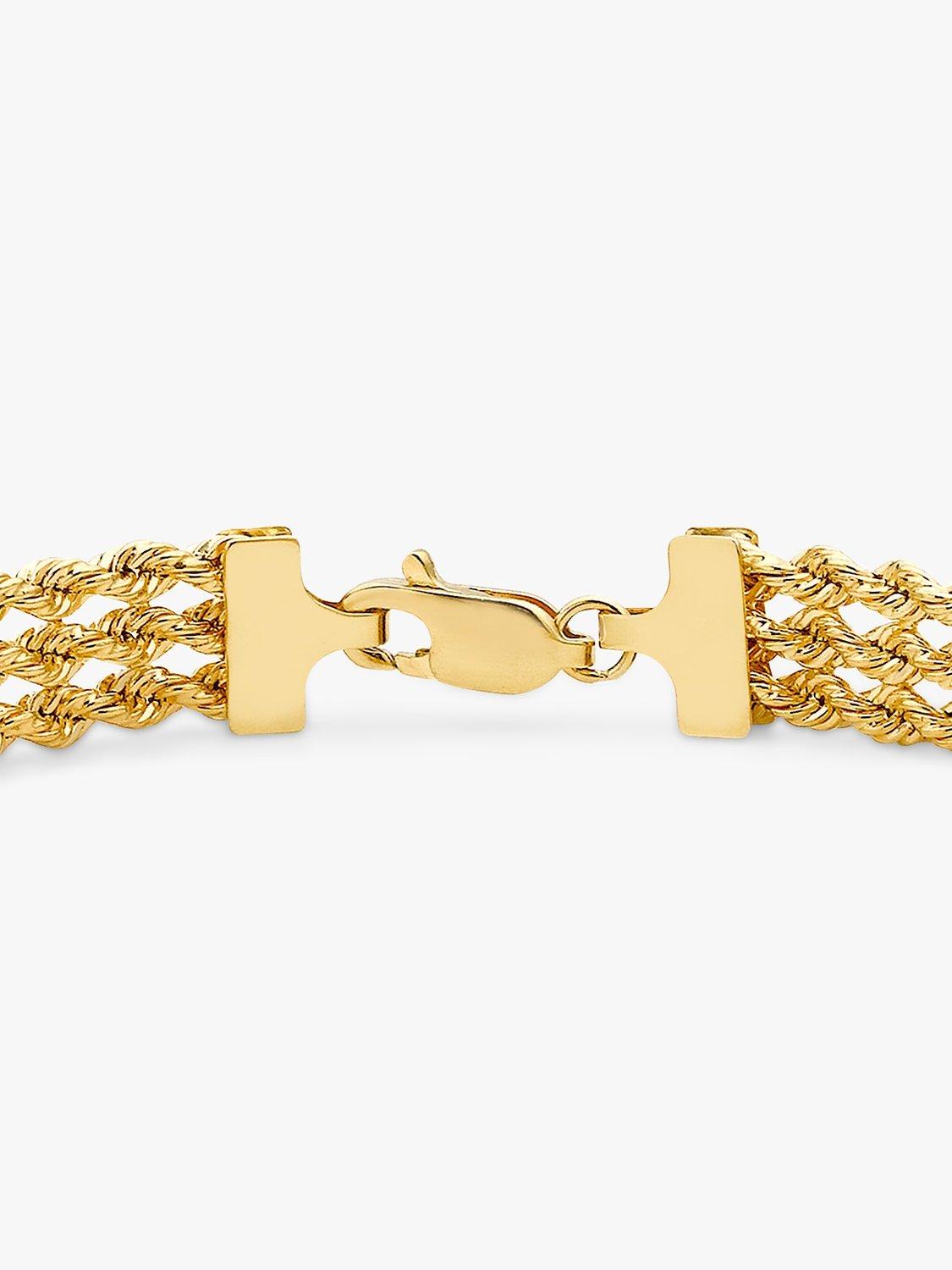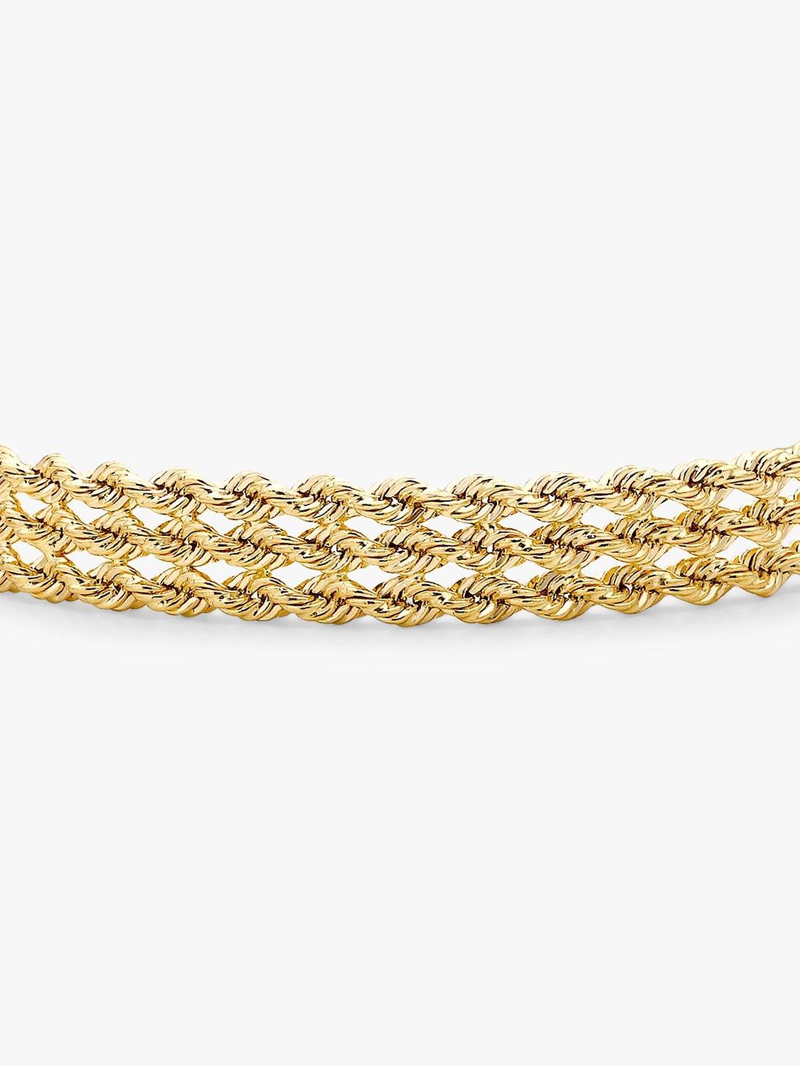 Three rows of tightly and intricately linked hoops provide a dazzling and impressive 9ct gold structure.